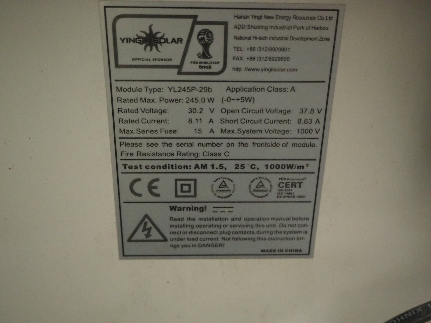28 Hainan Tingli solar panels, model: YL245P-29b, maximum power: 245 Watt, dimensions: 1650 mm x 990 mm x 1250 mm. Kavel locatie: Kaldenkerkerweg 5, 5932 CS Tegelen, Nederland