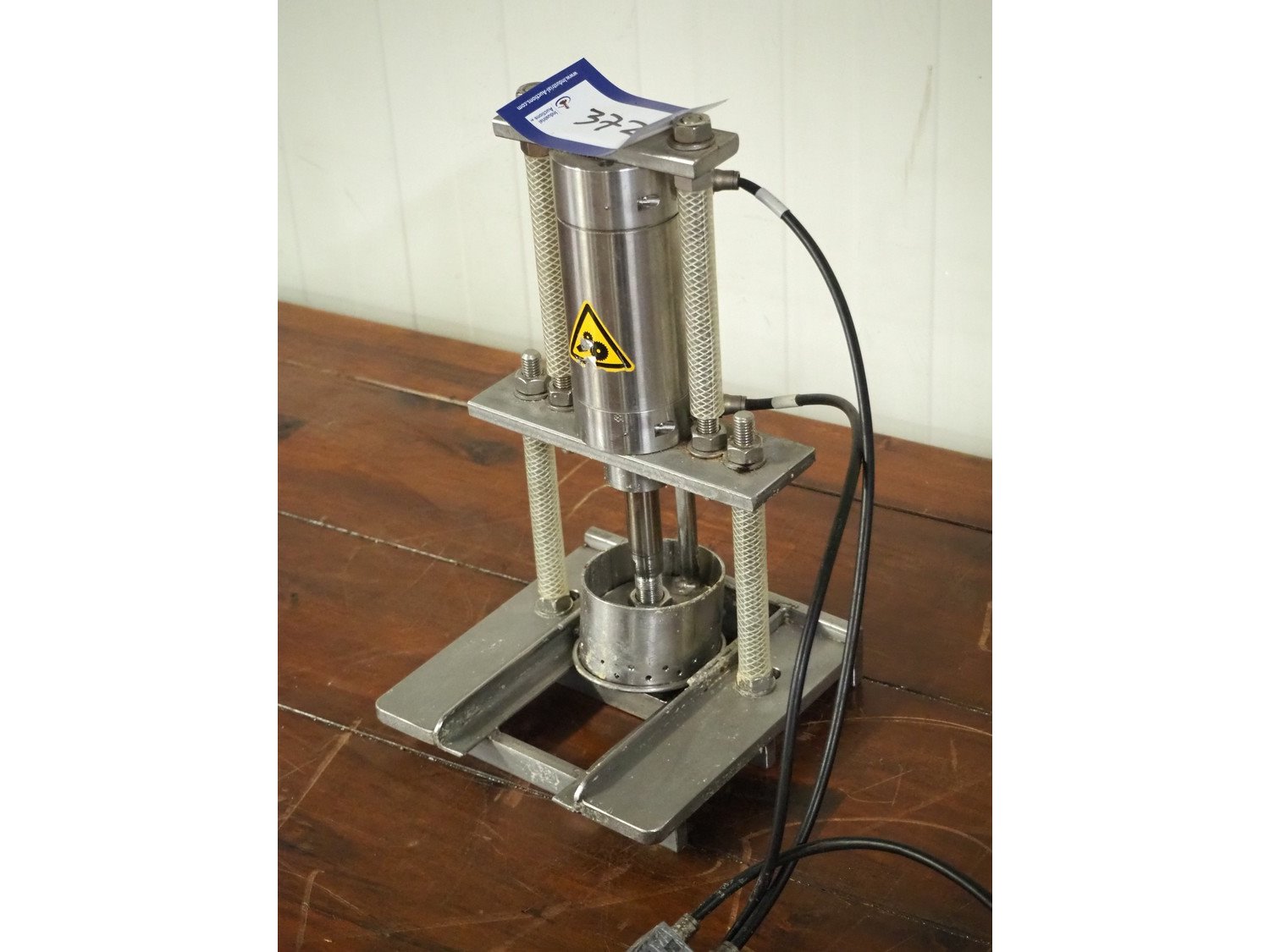 S/s press, dimensions press: 90 mm x 70 mm, total dimensions: 200 mm x 200 mm x 400 mm. Kavel locatie: Kaldenkerkerweg 5, 5932 CS Tegelen, Nederland