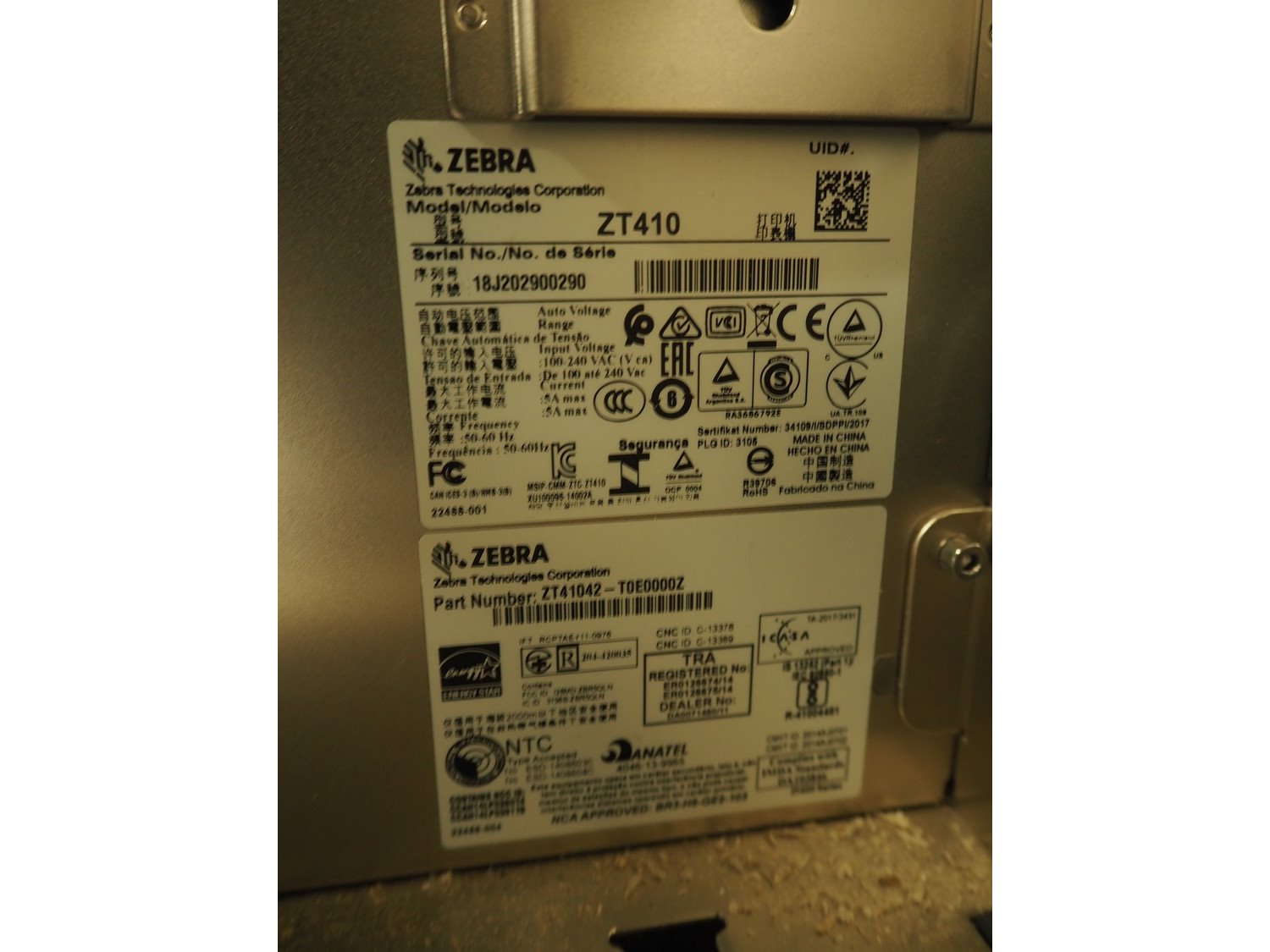 Zebra label printer, model: ZT410, serial number: 18J202900290, dimensions: 500 mm x 270 mm x 330 mm. Kavel locatie: Kaldenkerkerweg 5, 5932 CS Tegelen, Nederland