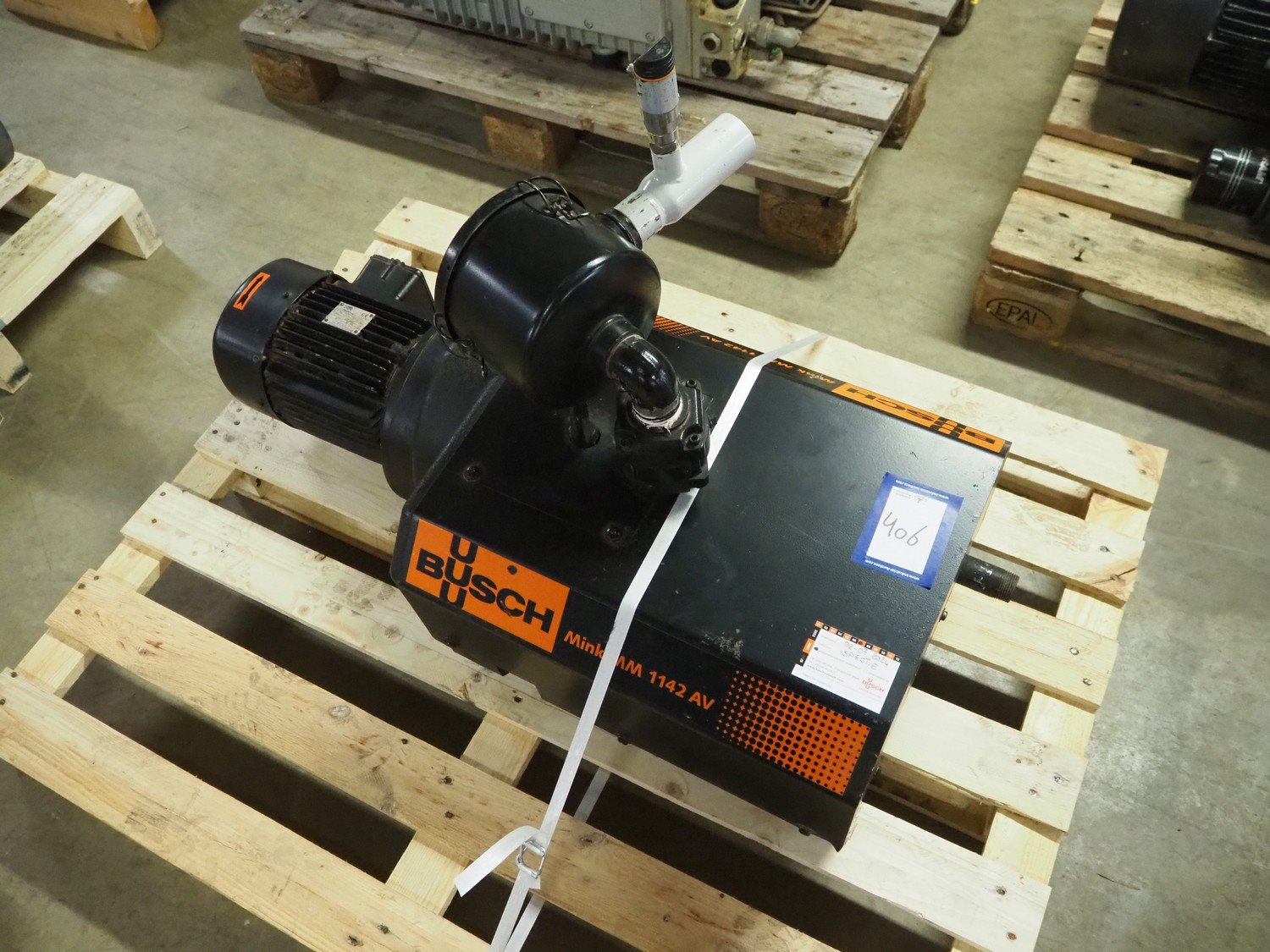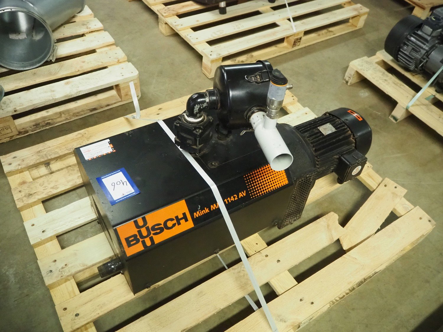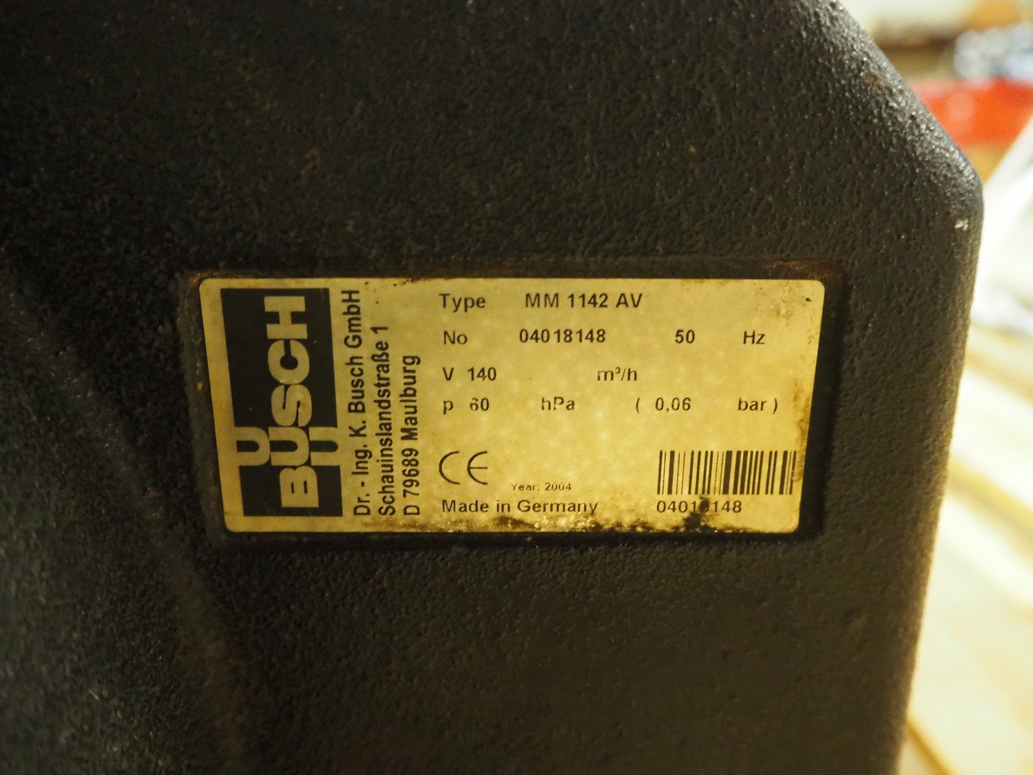 Busch vacuum pump, type: MM 1142 AV, number: 04018148, capacity: 140 m³ per hour, 50 Hz, dimensions: 950 mm x 400 mm x 650 mm. Kavel locatie: Kaldenkerkerweg 5, 5932 CS Tegelen, Nederland