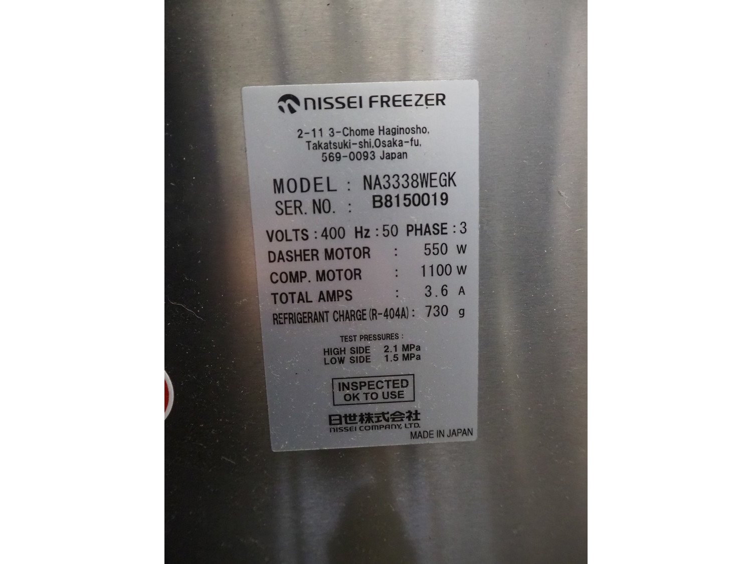 Nissei Freezer mobile ice cream machine, model: NA3338WEGK, serial number: B8150019, 400 V, 3 Ph, 50 Hz, 3.6 A, refrigerant: R-404A/730 g, total dimensions: 900 mm x 600 mm x 1570 mm. Kavel locatie: Kaldenkerkerweg 5, 5932 CS Tegelen, Nederland