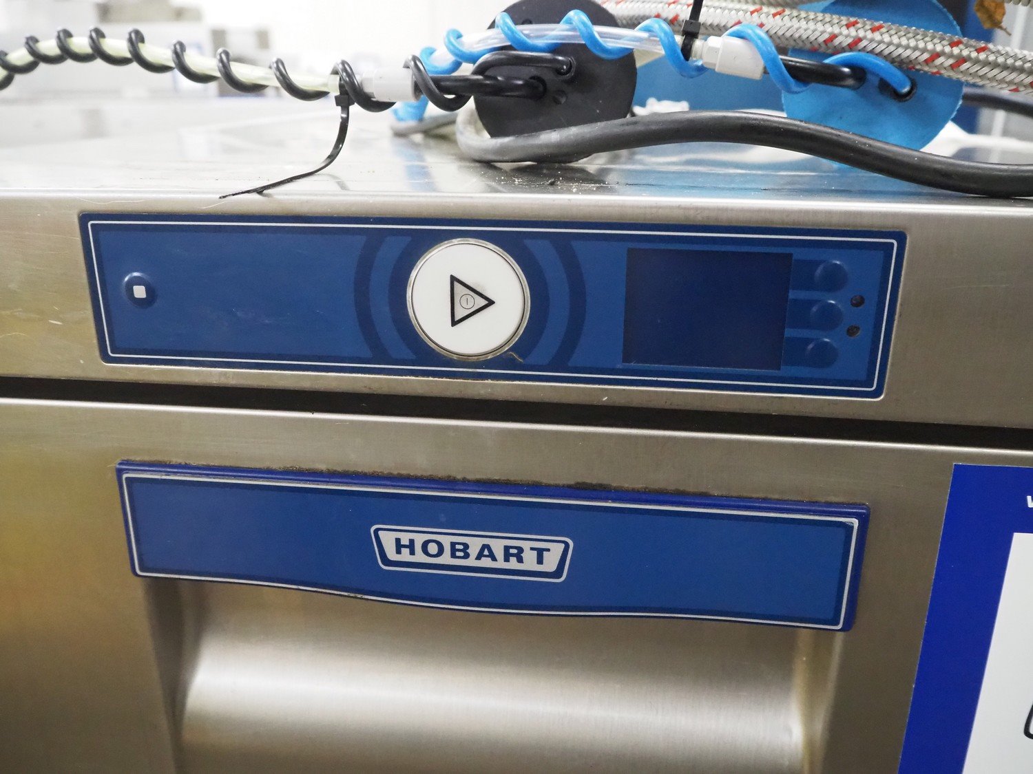 Hobart dishwasher, dimensions inside: 570 mm x 500 mm x 560 mm, total dimensions: 620 mm x 620 mm x 560 mm. Missing cover. Kavel locatie: Kaldenkerkerweg 5, 5932 CS Tegelen, Nederland