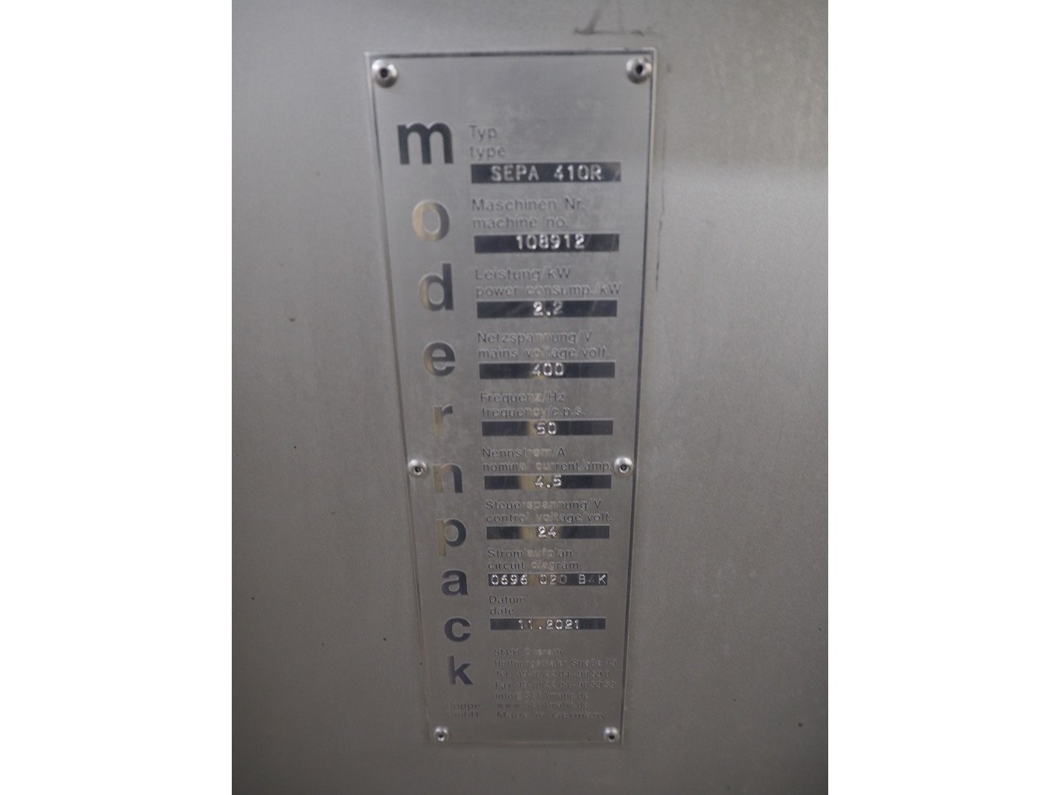 SEPAmatic seperator, type: SEPA 410R, machine number: 108912, year of construction: 11/2021, 400 V, 50 Hz, 4.5 A, roll width: 205 mm, ø perforations: 2 mm, total dimensions: 1300 mm x 1150 mm x 1600 mm. Kavel locatie: Kaldenkerkerweg 5, 5932 CS Tegelen, Nederland