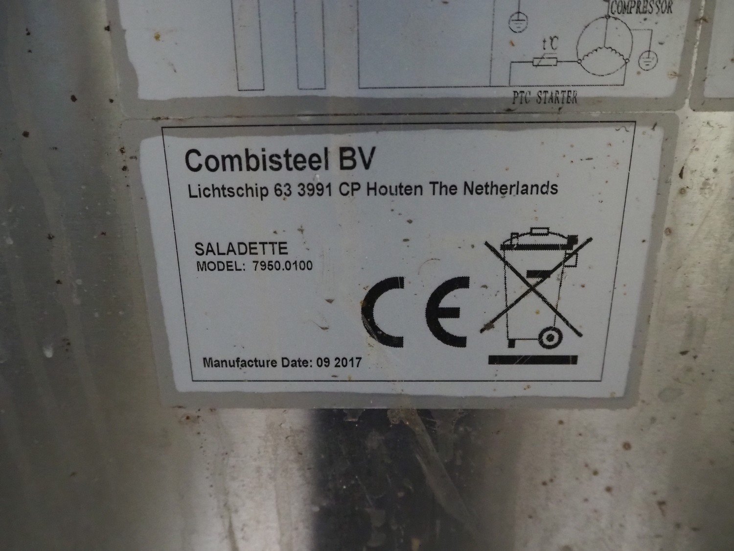 Combisteel BV saladette, model: 7950.0100, serial number: 170800083, year of construction: 09-2017, refrigerant: R600a, 230 V, 50 Hz, weight: 120 kg, dimensions inside: (3x) 345 mm x 580 mm, total dimensions: 1380 mm x 700 mm x 1000 mm. Kavel locatie: Kaldenkerkerweg 5, 5932 CS Tegelen, Nederland