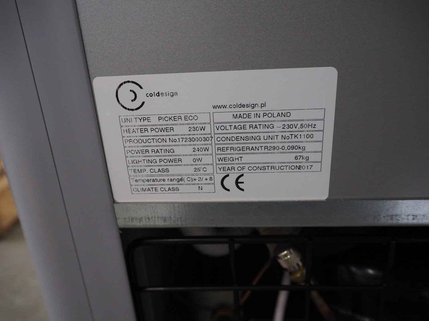 Cold design mobile refrigerated showcase, type: PICKER ECO, production number: 1723000307, year of construction: 2017, 230 V, 50 Hz, 230 W, weight: 67 Kg, dimensions inside: 410 mm x 410 mm x 300 mm, total dimensions: 600 mm x 500 mm x 850 mm. Kavel locatie: Kaldenkerkerweg 5, 5932 CS Tegelen, Nederland