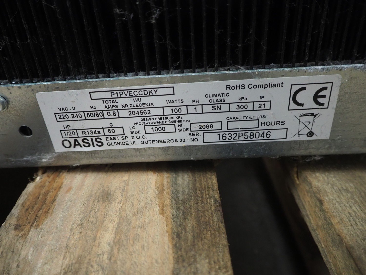 Oasis drink water dispenser, serial number: 1632P58046, 220-240 Vac, 50/60 Hz, 0.8 A, 100 W, dimensions: 370 mm x 320 mm x 1120 mm. Kavel locatie: Kaldenkerkerweg 5, 5932 CS Tegelen, Nederland