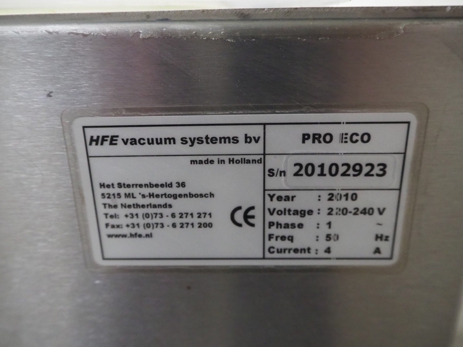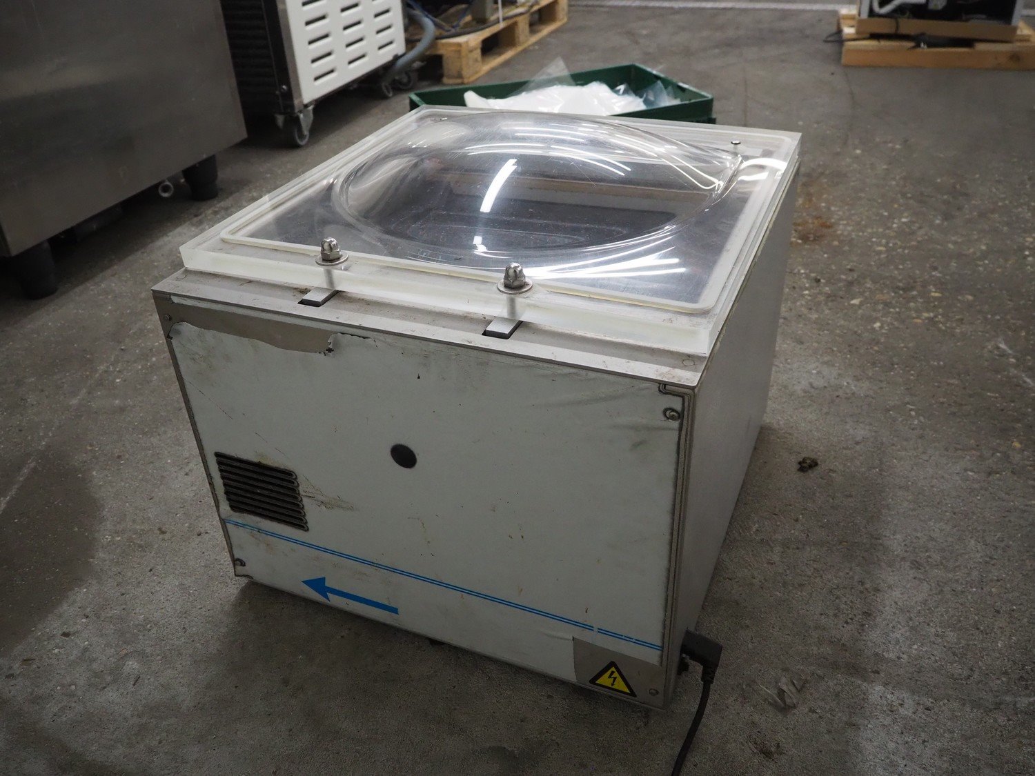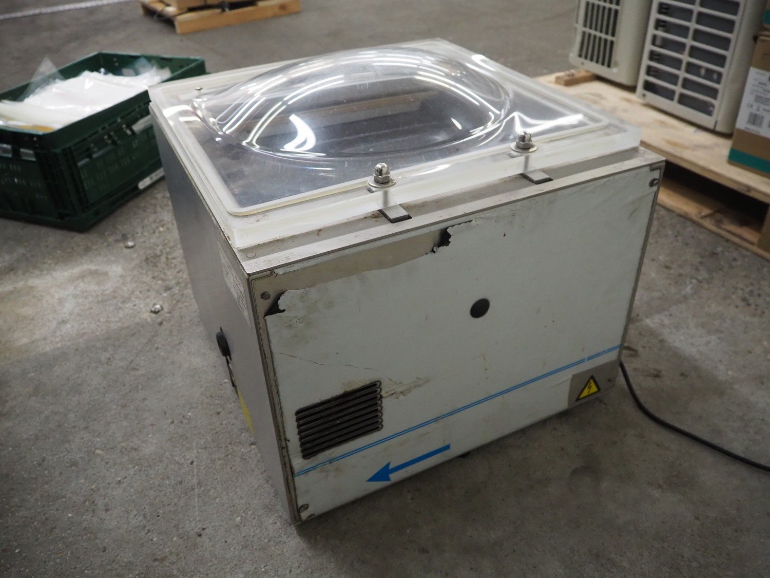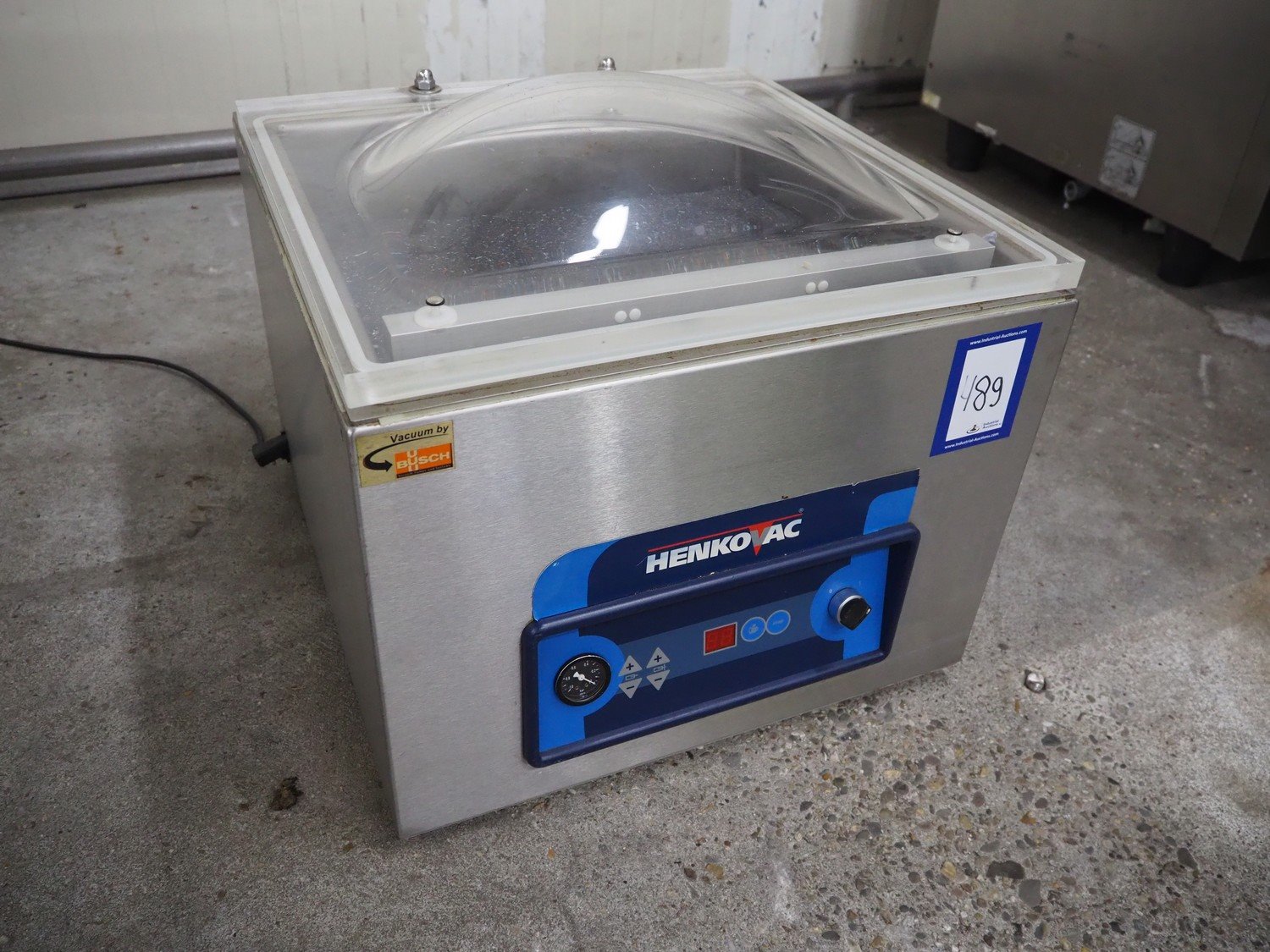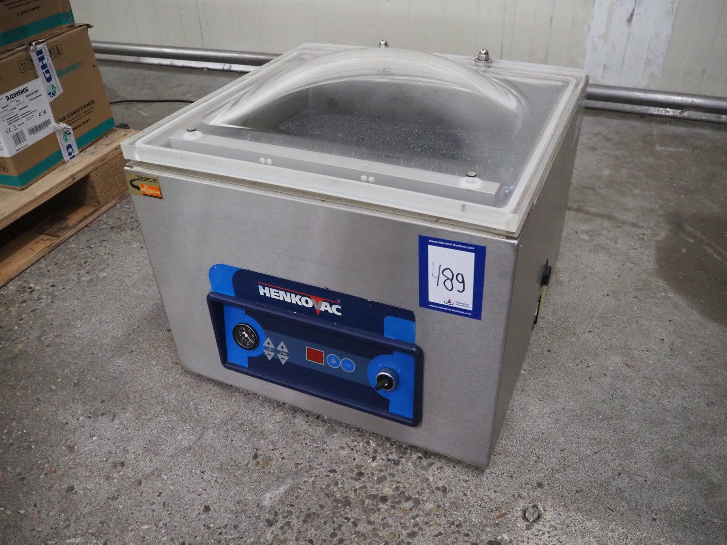 Henkovac vacuum machine, serial number: 20102923, year of construction: 2010, 220-240 Vac, 1 Ph, 50 Hz, 4 A, seal length: 440 mm, dimensions chamber: 450 mm x 420 mm, total dimensions: 550 mm x 520 mm x 450 mm. Including crate with bags. Kavel locatie: Kaldenkerkerweg 5, 5932 CS Tegelen, Nederland
