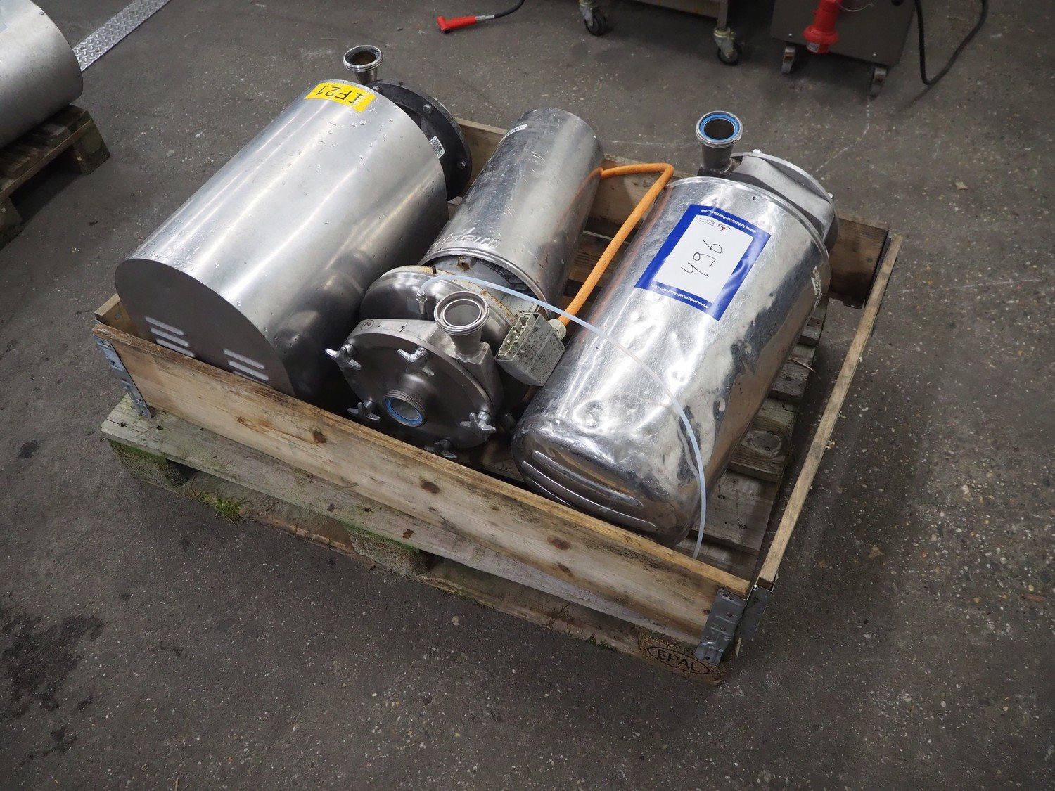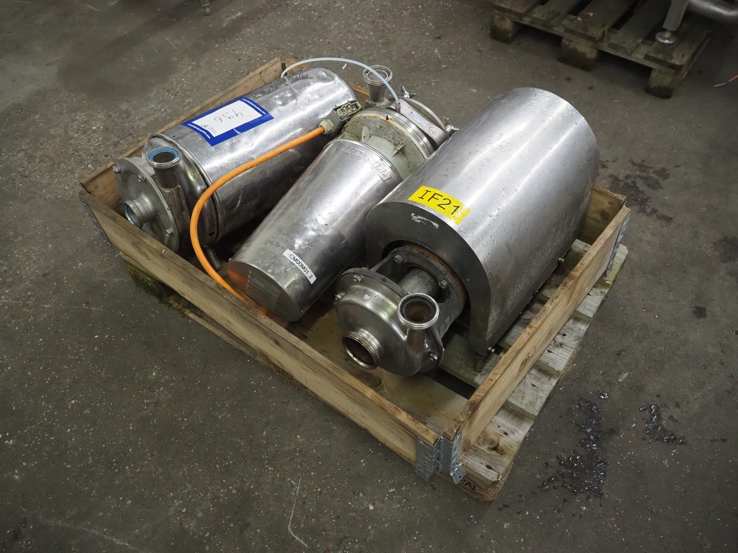 Pallet with fristam centrifugal pump, type: FP 742C, number: 0444480082 and 2 centrifugal pump, dimensions: 1200 mm x 800 mm x 500 mm. Kavel locatie: Kaldenkerkerweg 5, 5932 CS Tegelen, Nederland