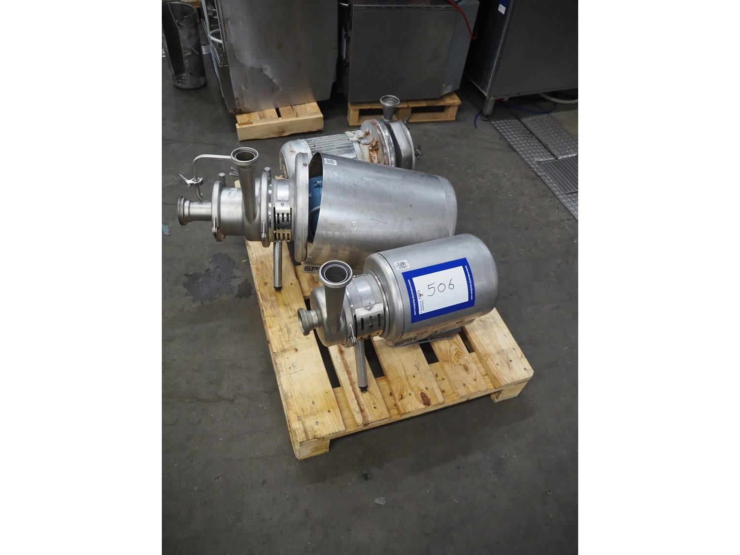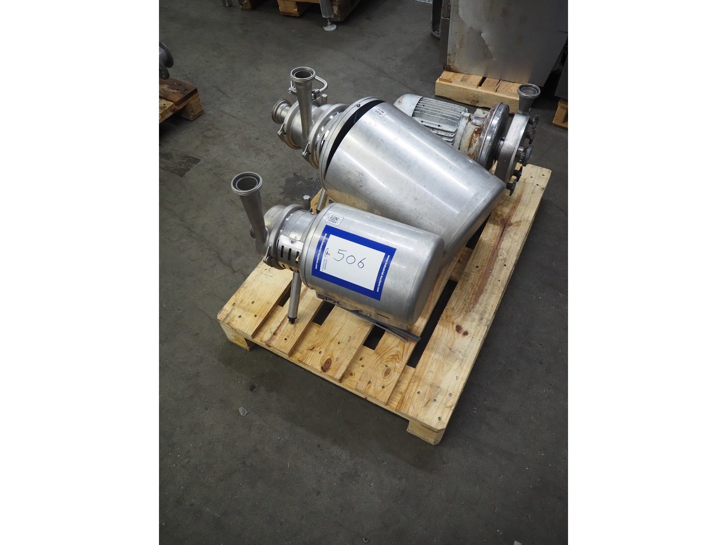 2 APV/SPX centrifugal pumps, type: W 22/20 and WS 30/30, serial number: 3045958 and 3045959, year of construction: 2013 and 1 centrifugal pump, total dimensions: 1200 mm x 800 mm x 500 mm. Kavel locatie: Kaldenkerkerweg 5, 5932 CS Tegelen, Nederland