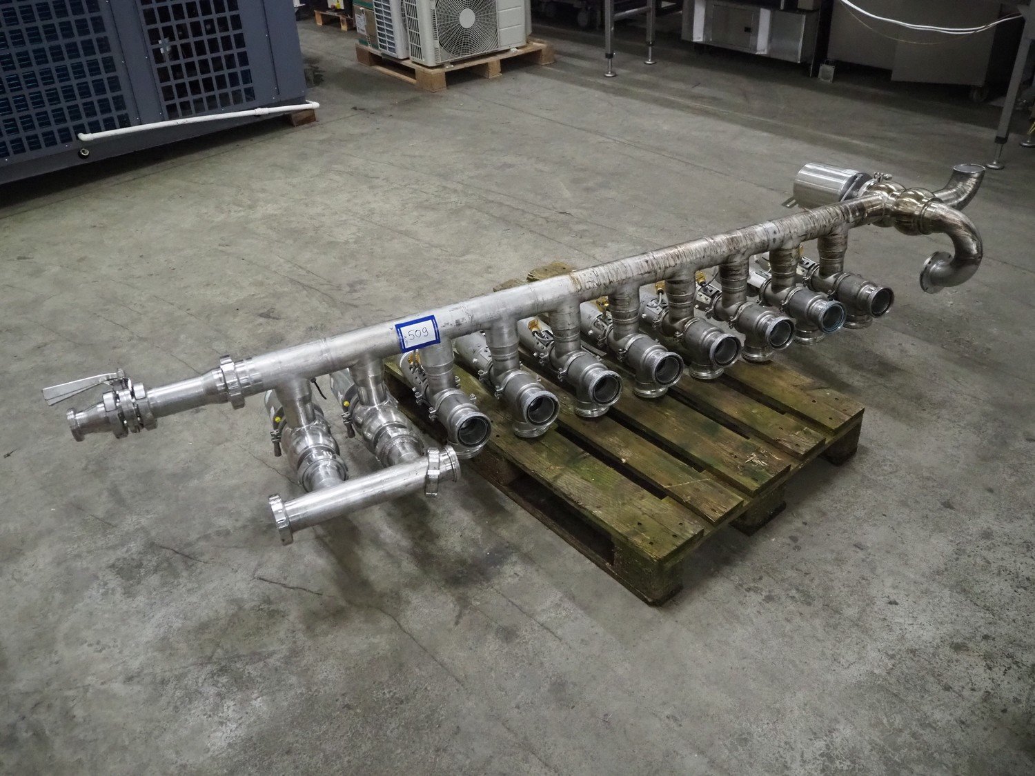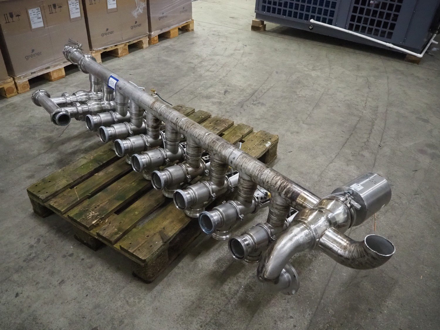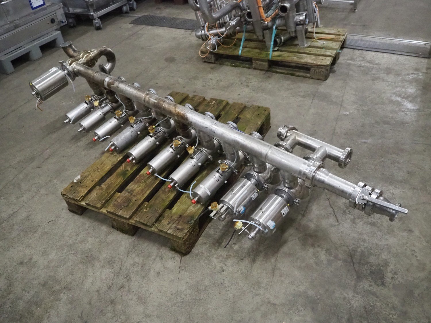 S/s manifold with 10 Alfa Laval valves, dimensions: 2500 mm x 700 mm x 350 mm. Kavel locatie: Kaldenkerkerweg 5, 5932 CS Tegelen, Nederland