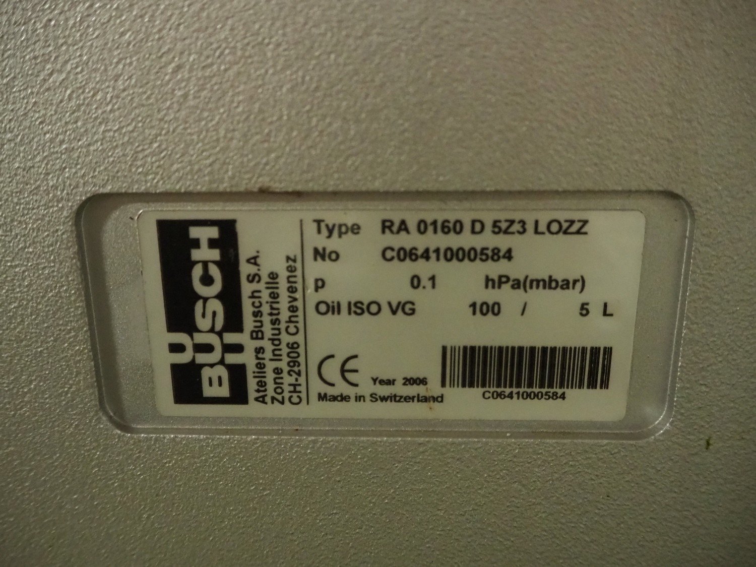 Busch vacuum pump, type: RA 0160 D 5Z3 LOZZ, number: C0641000584, year of construction: 2006, capacity: 160 m³ per hour, dimensions: 900 mm x 600 mm x 650 mm. Kavel locatie: Kaldenkerkerweg 5, 5932 CS Tegelen, Nederland