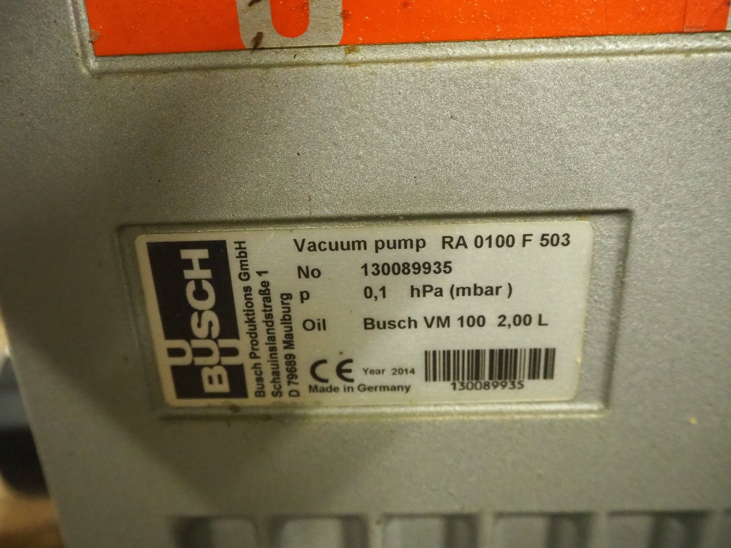 Busch vacuum pump, type: RA 0100 F 503, number: 130089935, year of construction: 2014, capacity: 100 m³ per hour, dimensions: 680 mm x 650 mm x 330 mm. Kavel locatie: Kaldenkerkerweg 5, 5932 CS Tegelen, Nederland