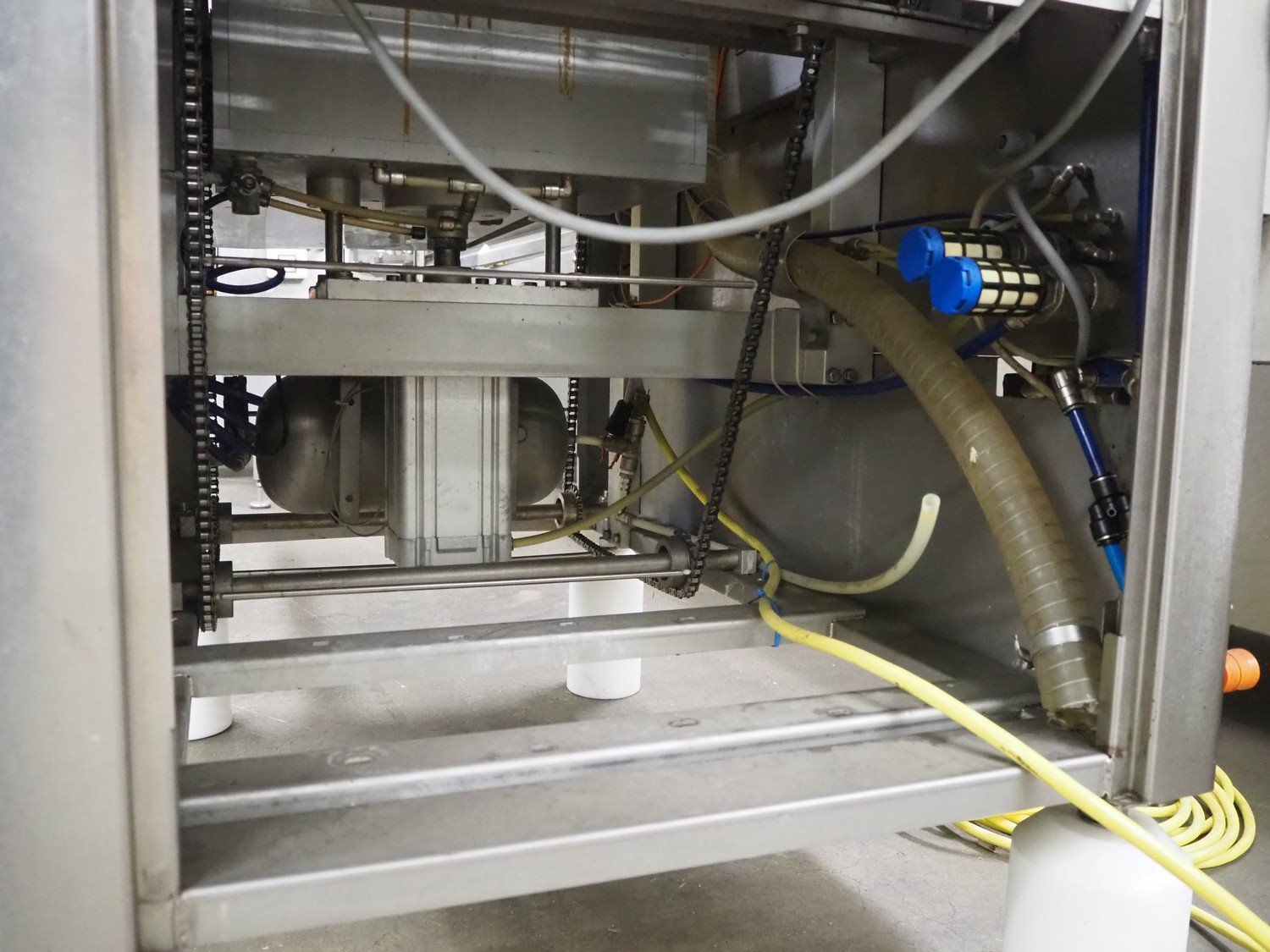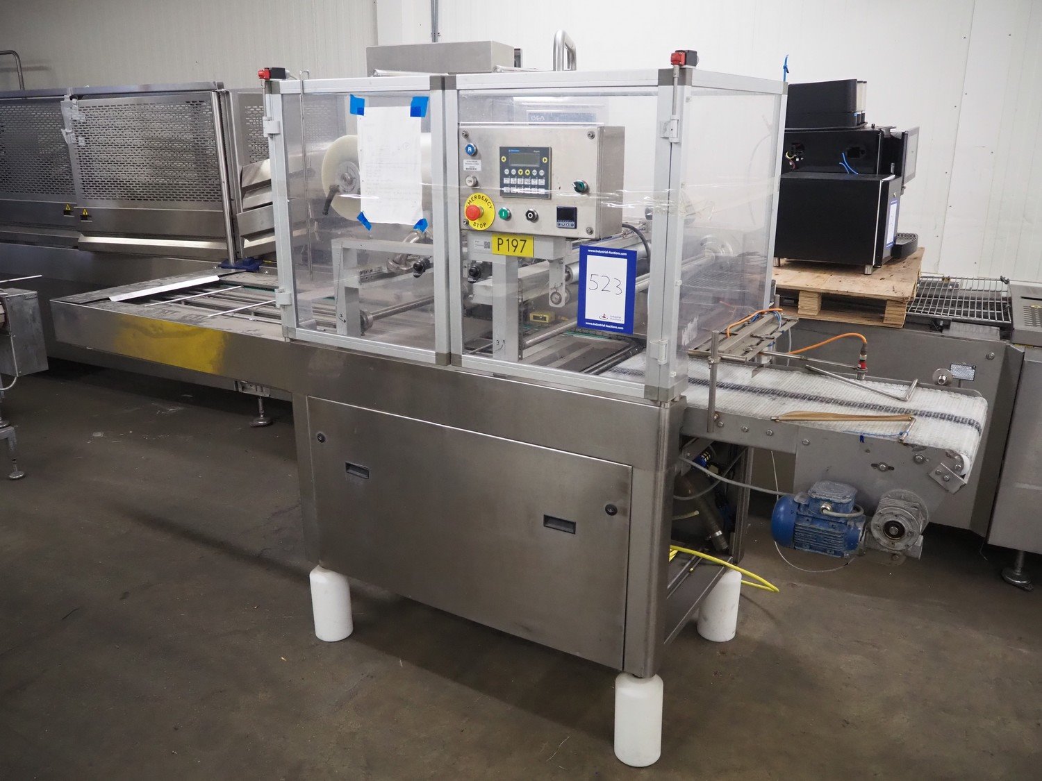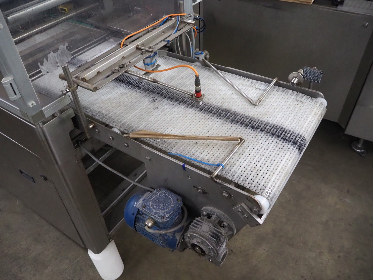 Tecnovac traysealer, model: ATHENA, serial number: 2P-07-02-03, year of construction: 2007, 400 V, 3 Ph, 50 Hz, 10 A, weight: 500 kg, plastic mesh belt, belt width: 427 mm, dye: (3x) 160 mm x 120 mm, total dimensions: 3100 mm x 1100 mm x 1800 mm. Kavel locatie: Kaldenkerkerweg 5, 5932 CS Tegelen, Nederland