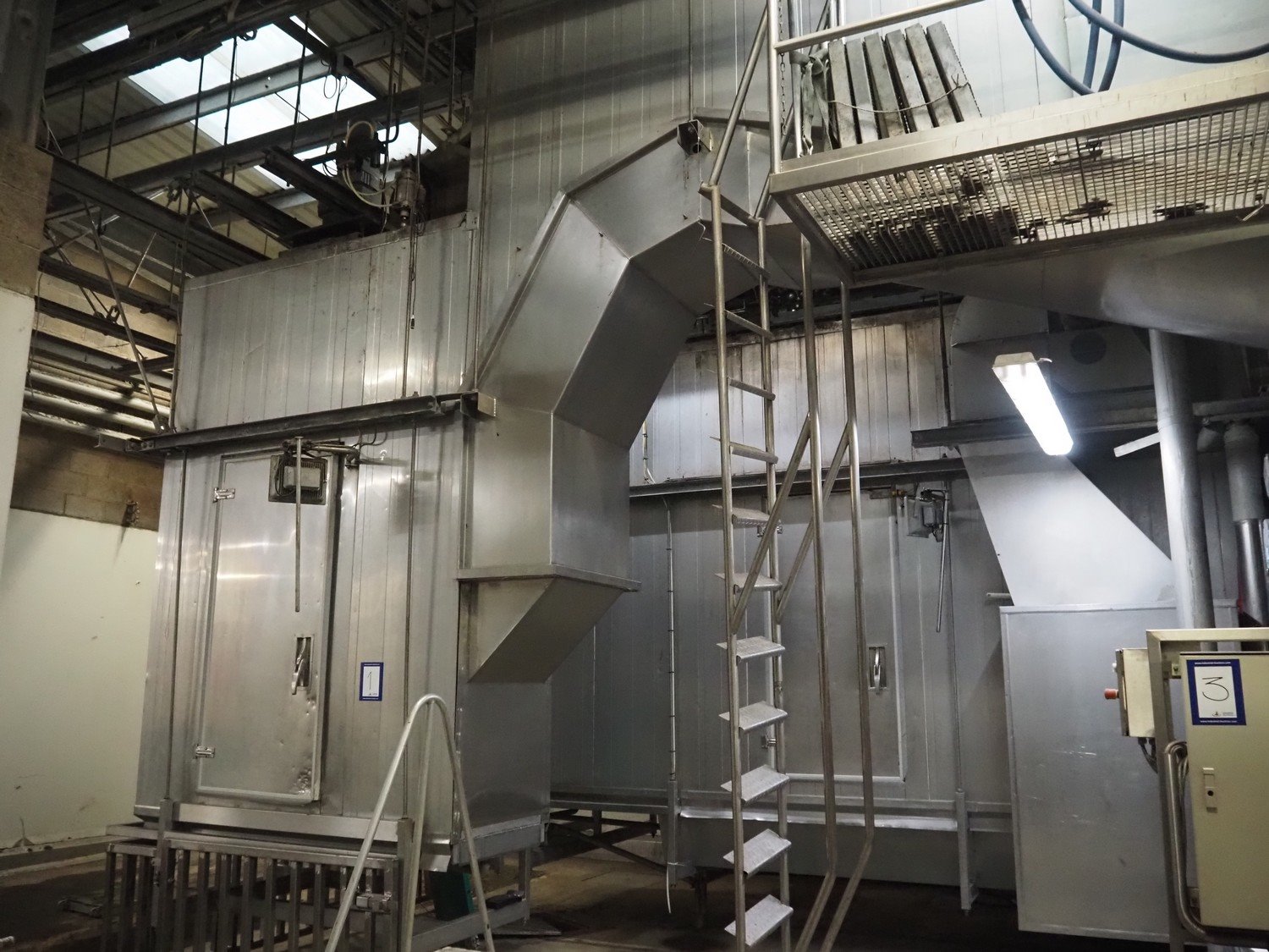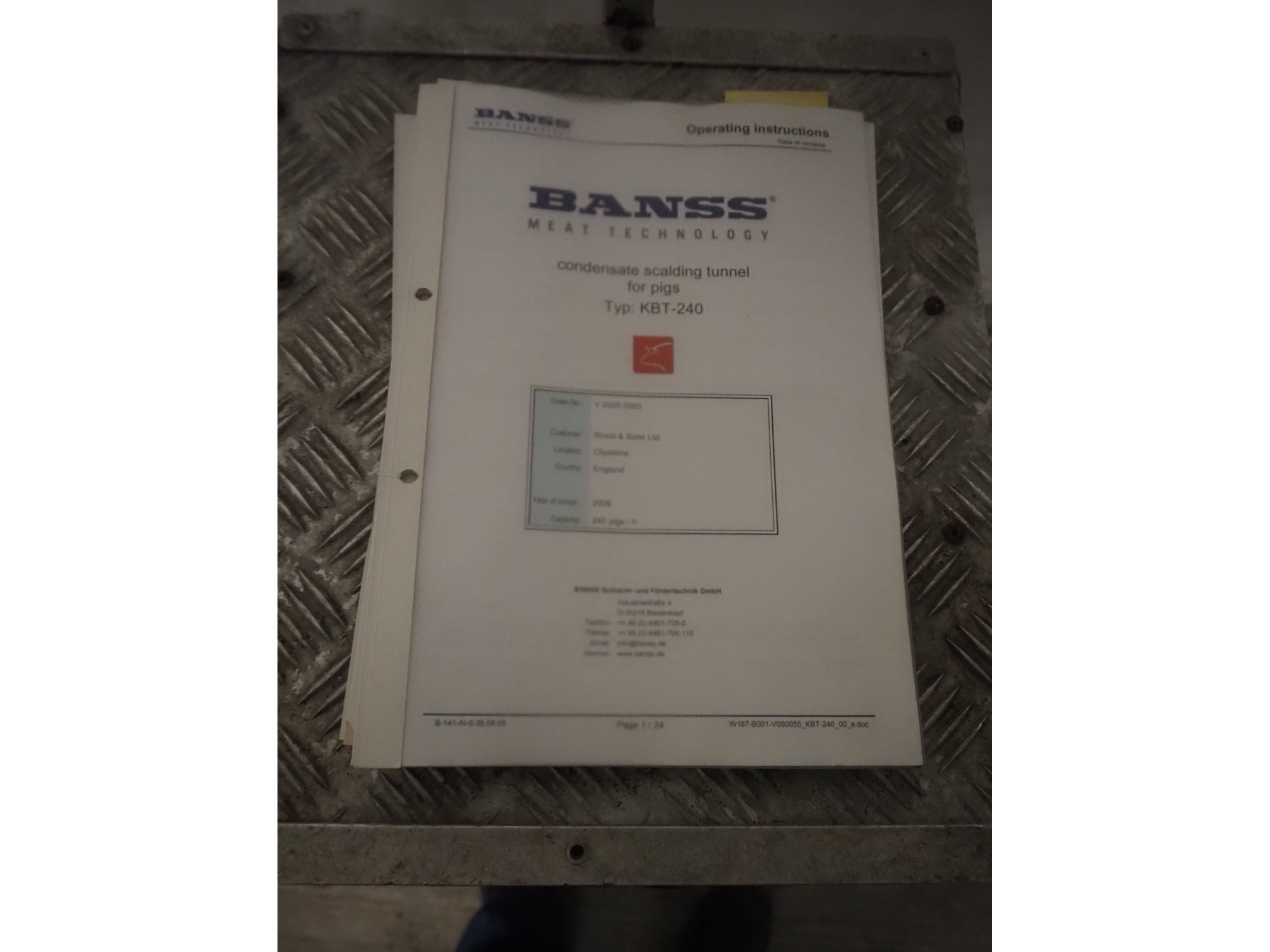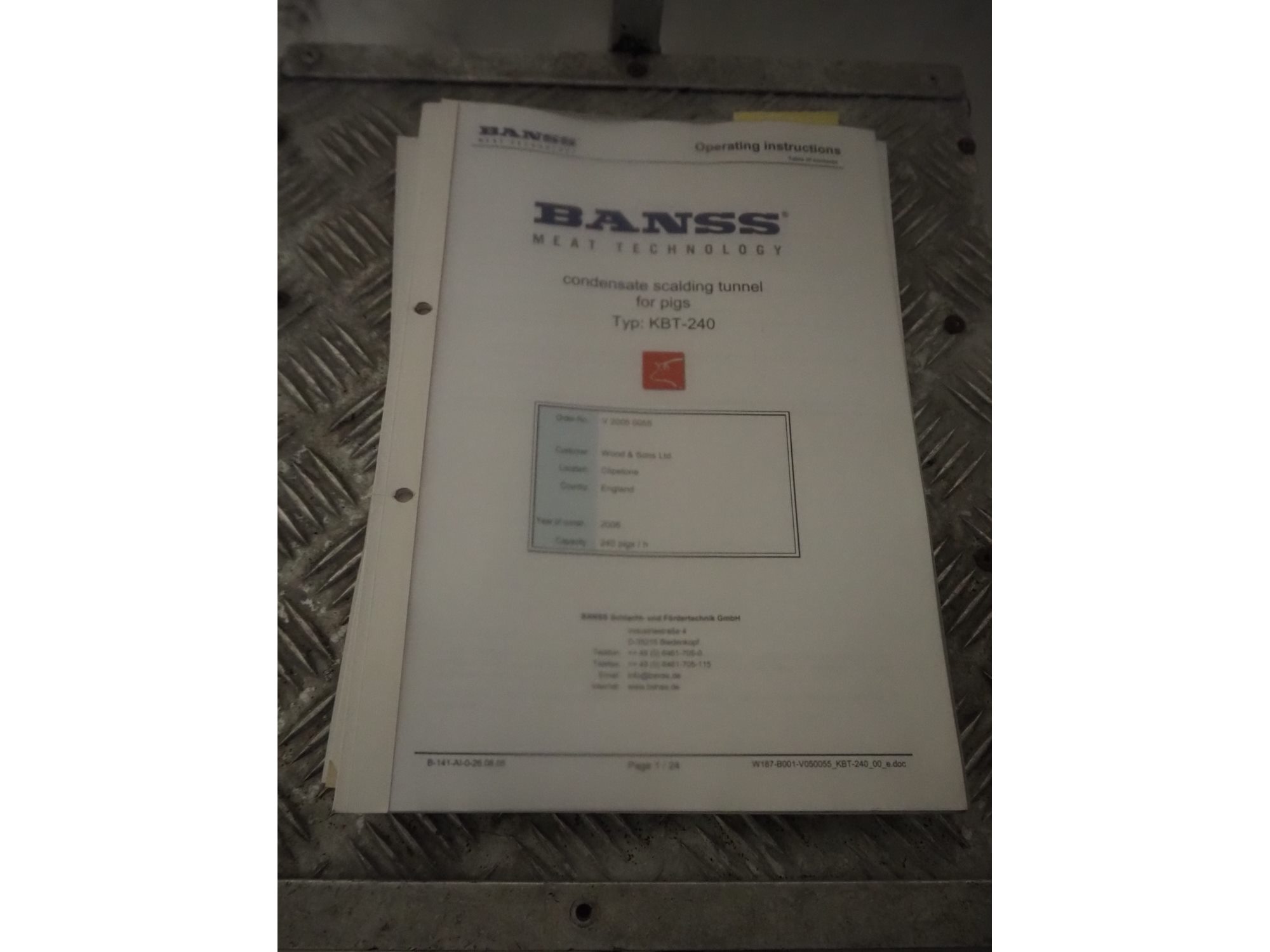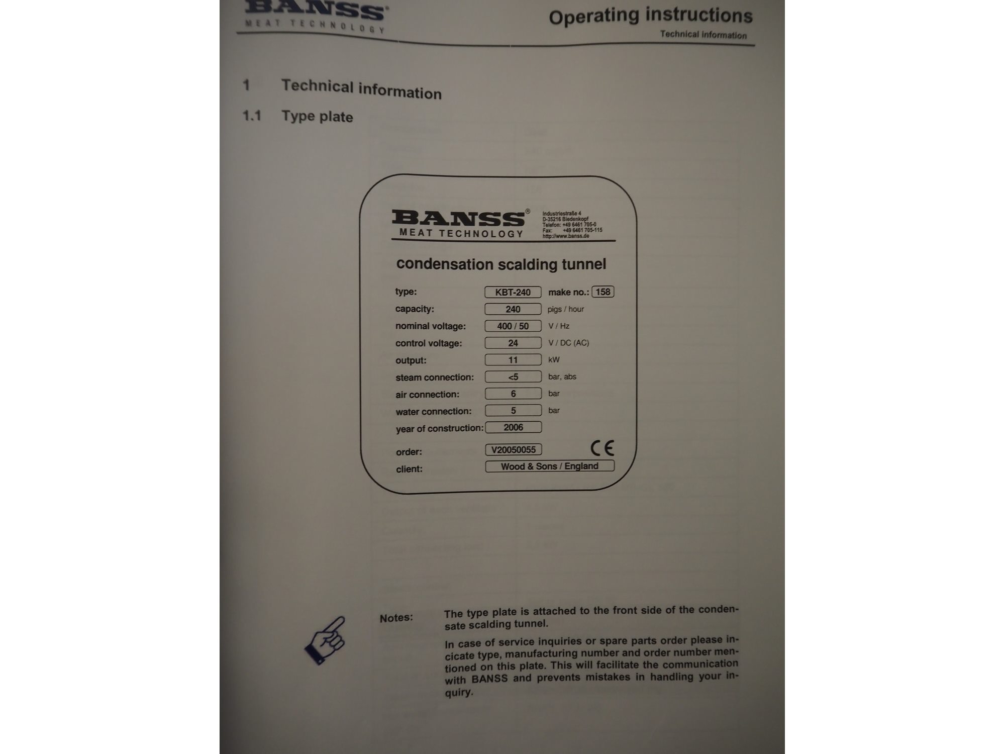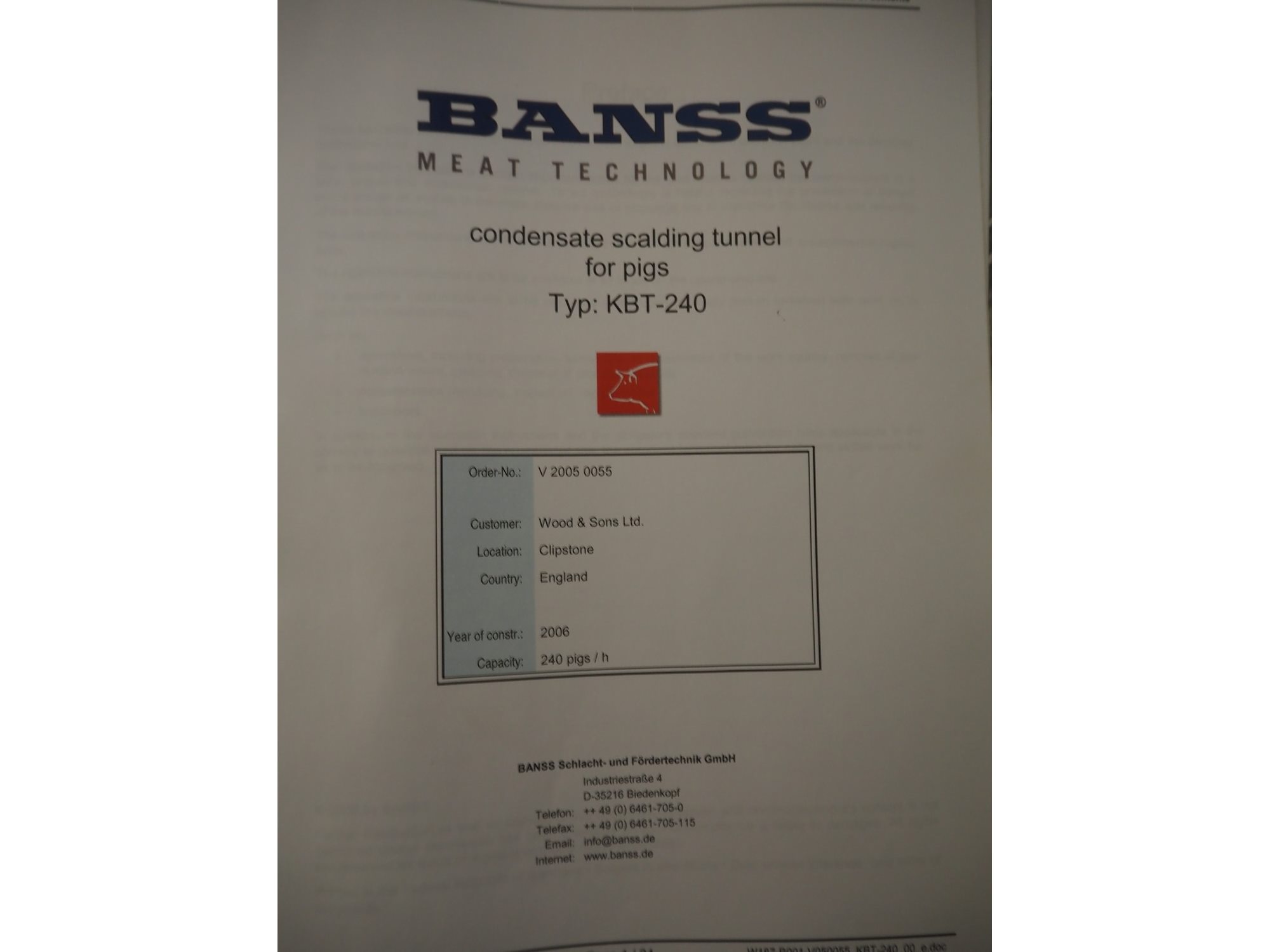 Banss Schlacht- und Fördertechnik GmbH condensate scalding tunnel, type: KBT-240, serial number: 158, year of construction: 2006, 400 V, 50 Hz, 11 kW, clearance: 850 mm x 3100 mm, total dimensions: 11500 mm x 5500 mm x 6200 mm. Kavel locatie: Baulker Lane, NG21 9BG Clipstone, Mansfield, Verenigd Koninkrijk