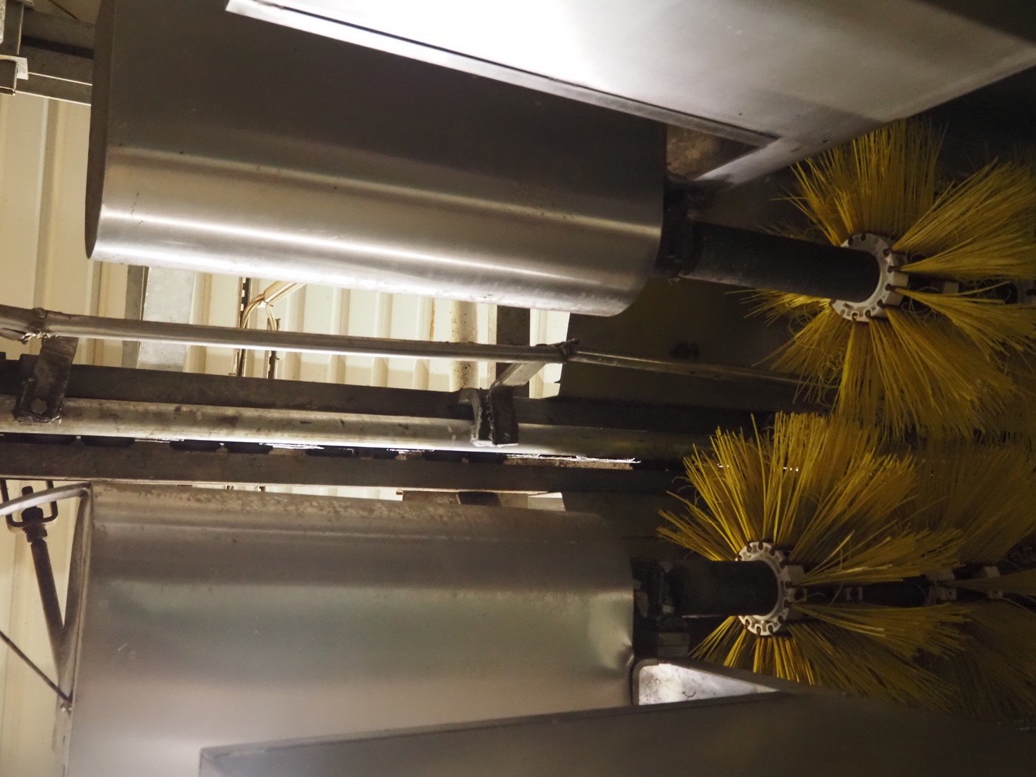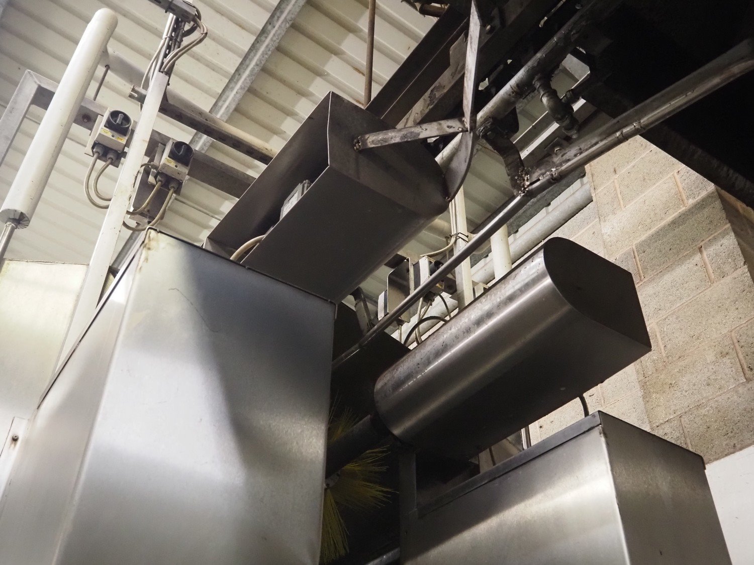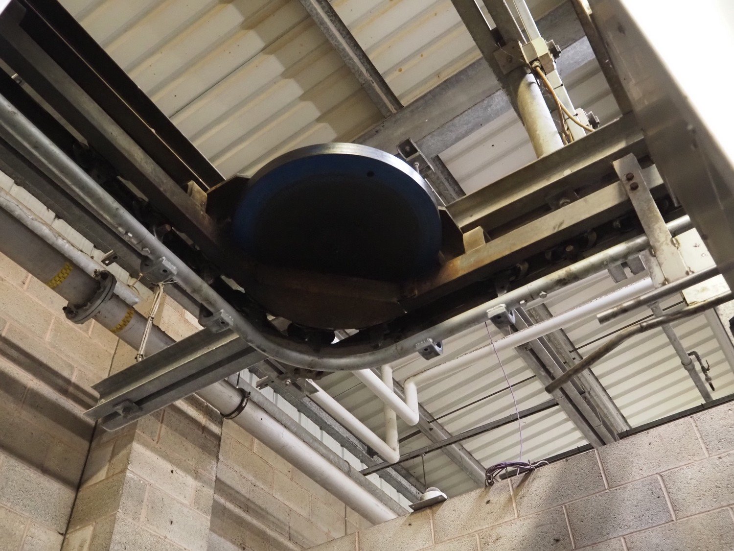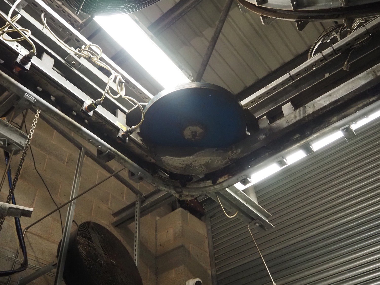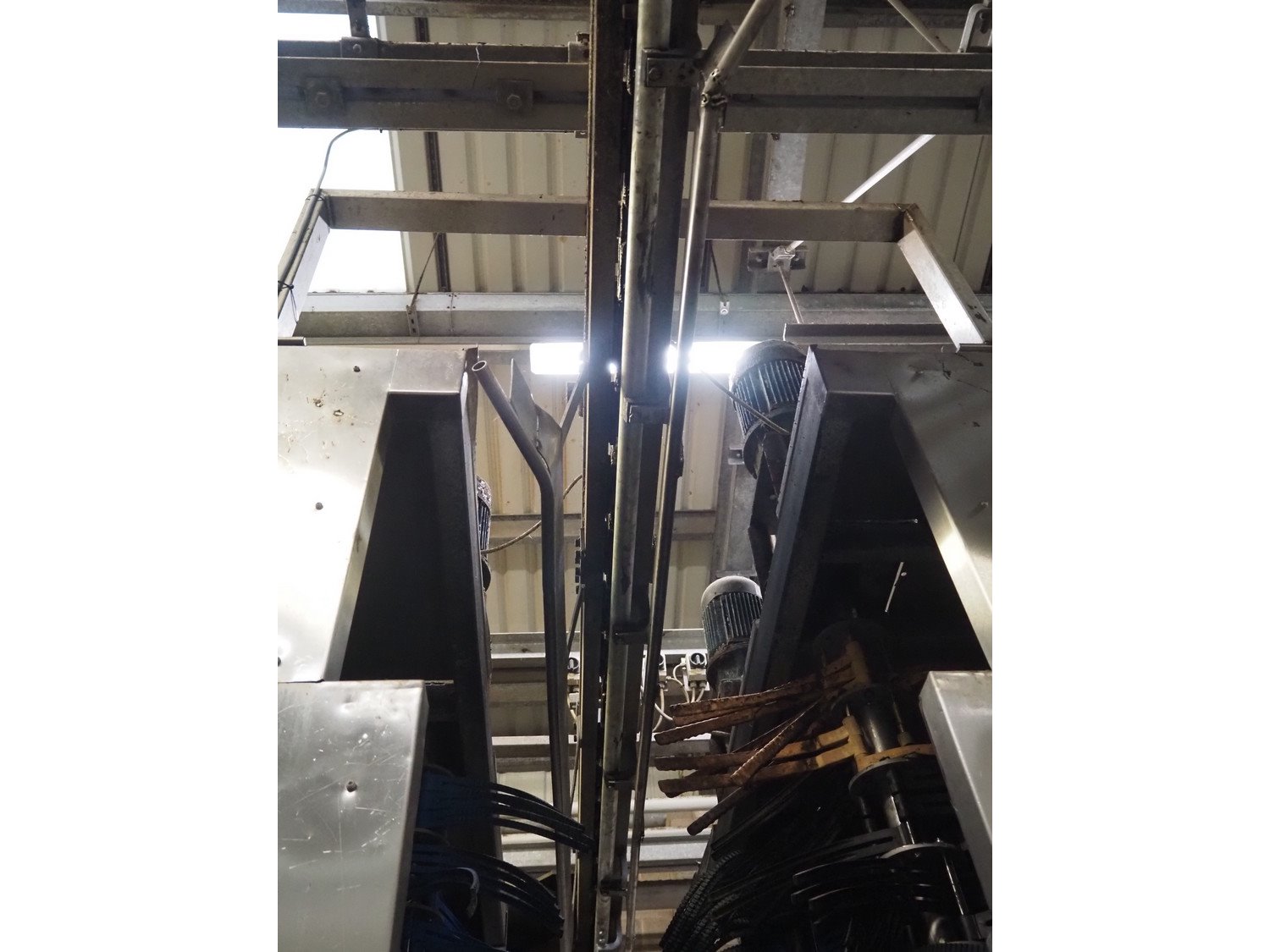 Banss Schlacht- und Fördertechnik GmbH tube rail conveyor, year of construction: 2006, capacity: 240 pigs / 120 sows per hour, tube diameter: 49 mm, approximate length tube rail: 52 meters, approximate length chain conveyor: 100 meters. Kavel locatie: Baulker Lane, NG21 9BG Clipstone, Mansfield, Verenigd Koninkrijk