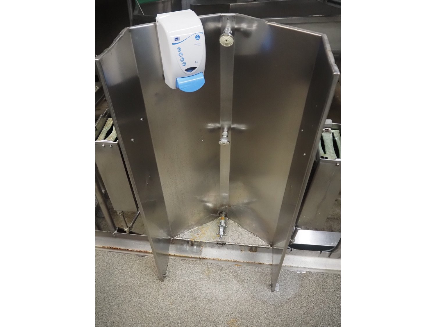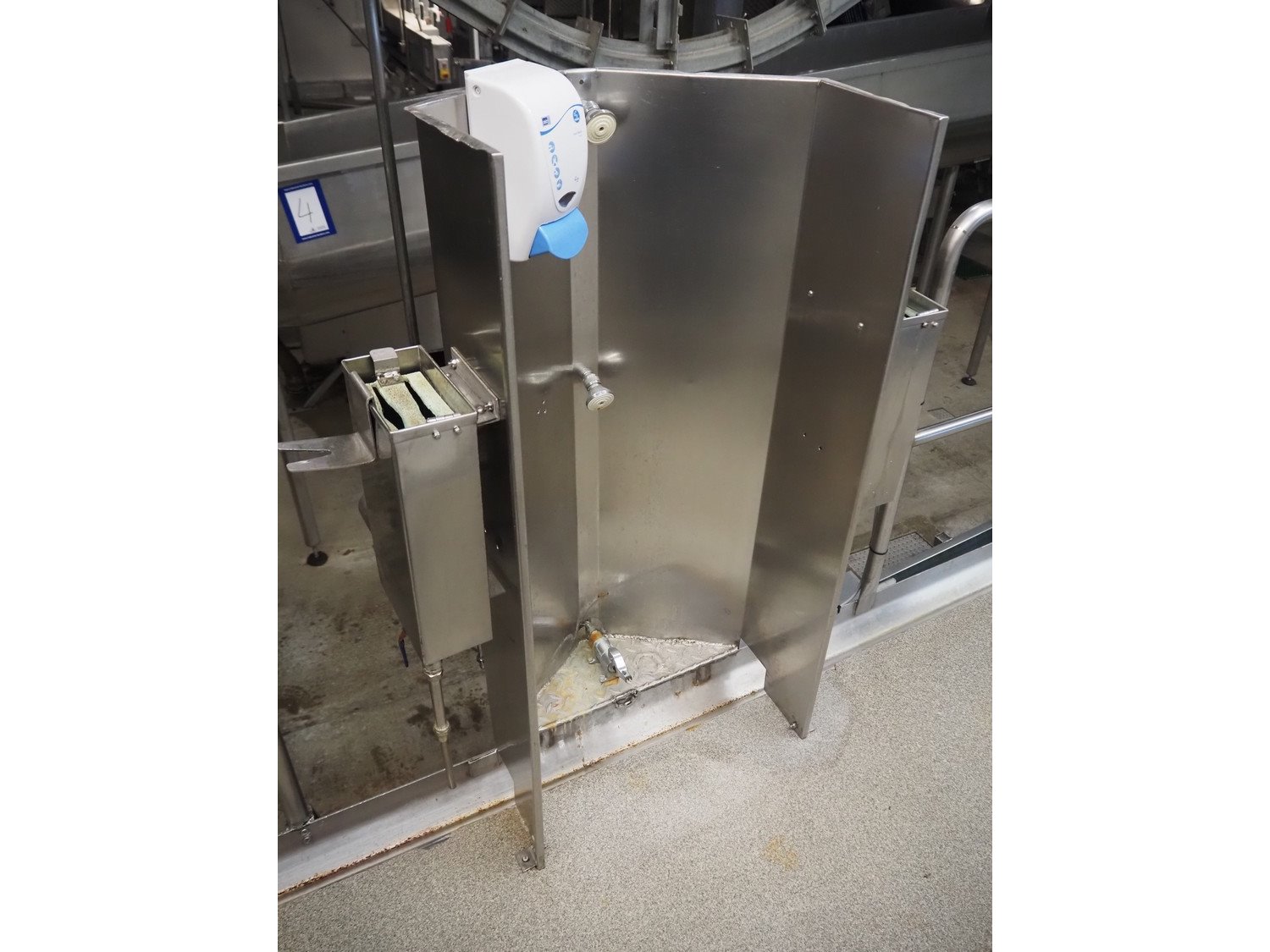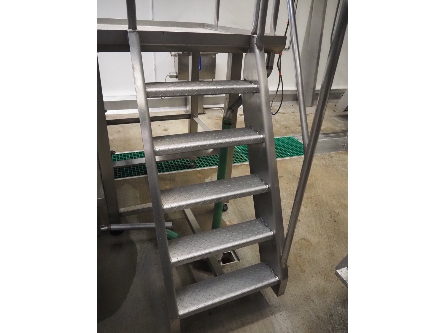 S/s platform with apron washer and 2 knife sterilizers, working height: 1430 mm, total dimensions: 4500 mm x 2050 mm x 2500 mm. Kavel locatie: Baulker Lane, NG21 9BG Clipstone, Mansfield, Verenigd Koninkrijk