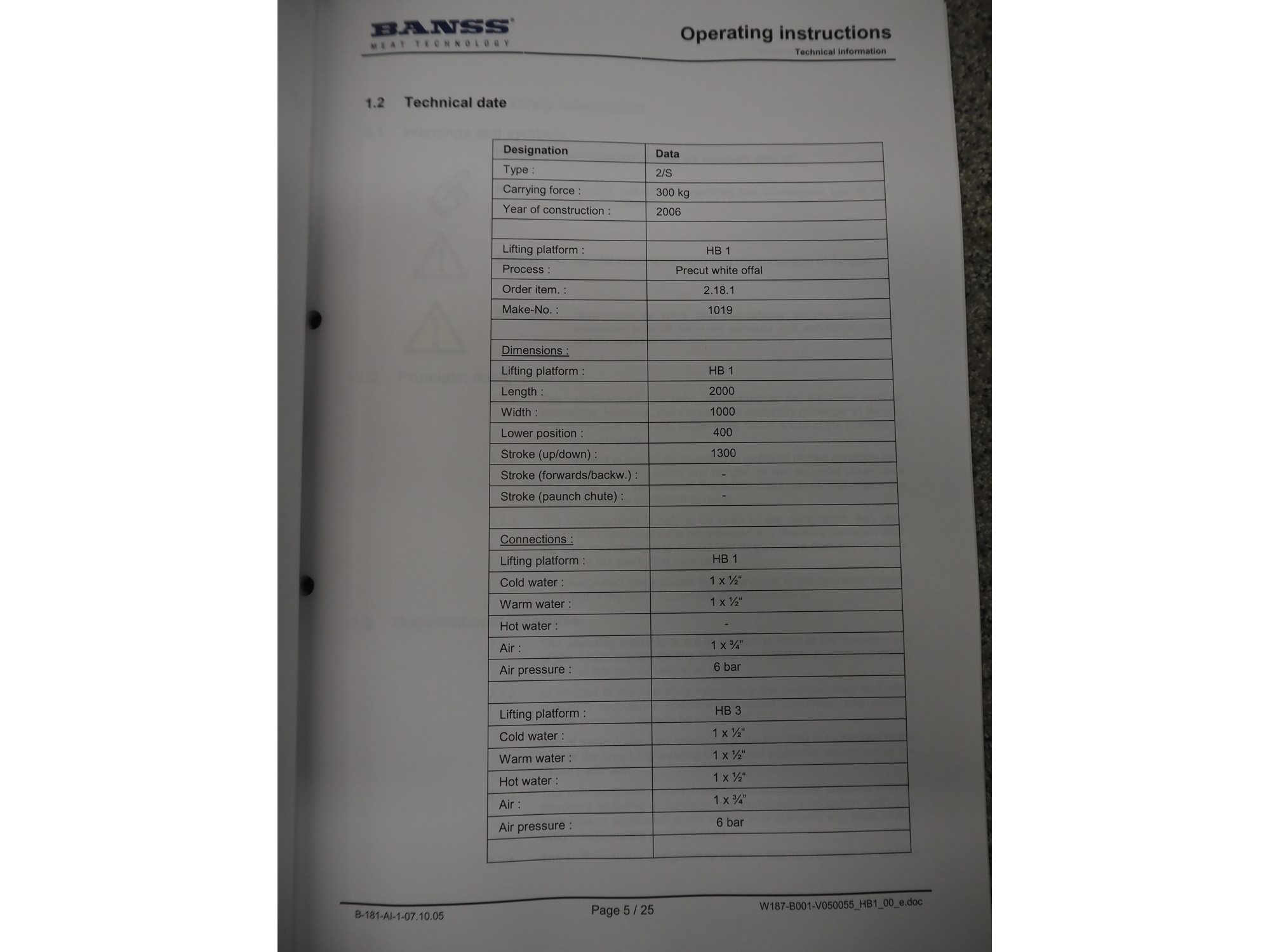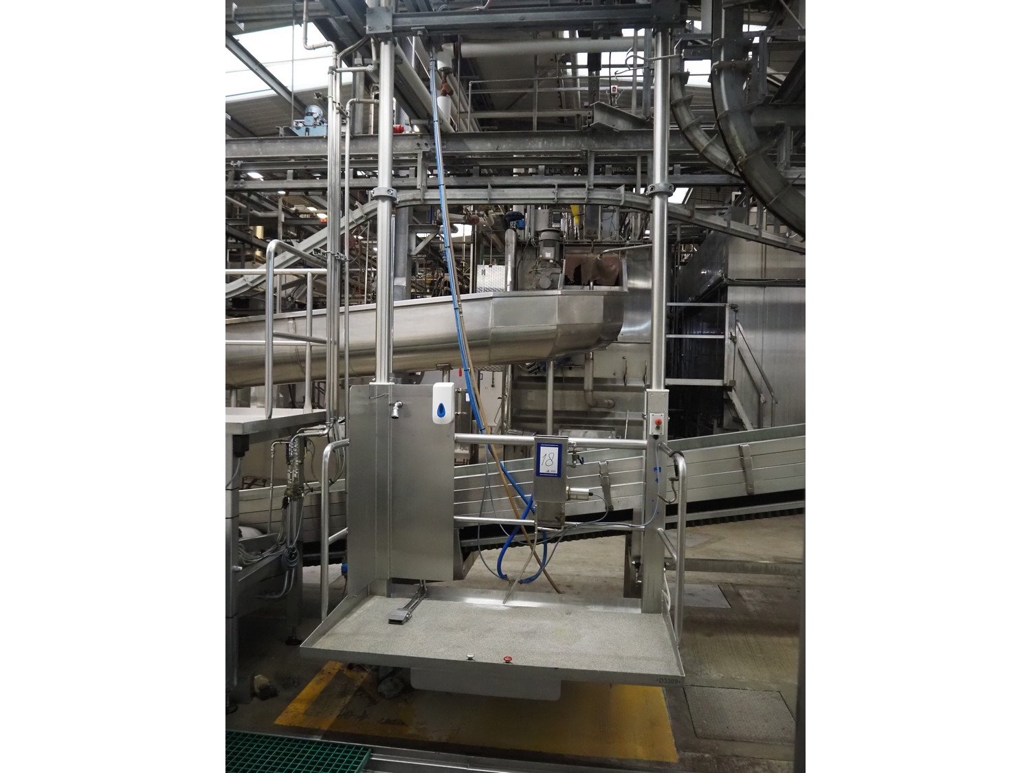 Banss Schlacht- und Fördertechnik GmbH in height adjustable working platform with apron washer and knife sterilizer, type: 2/S, serial number: 1019, year of construction: 2006, capacity: 300 kg, maximum height: 1500 mm, total dimensions: 1800 mm x 1250 mm x 4150 mm. Kavel locatie: Baulker Lane, NG21 9BG Clipstone, Mansfield, Verenigd Koninkrijk