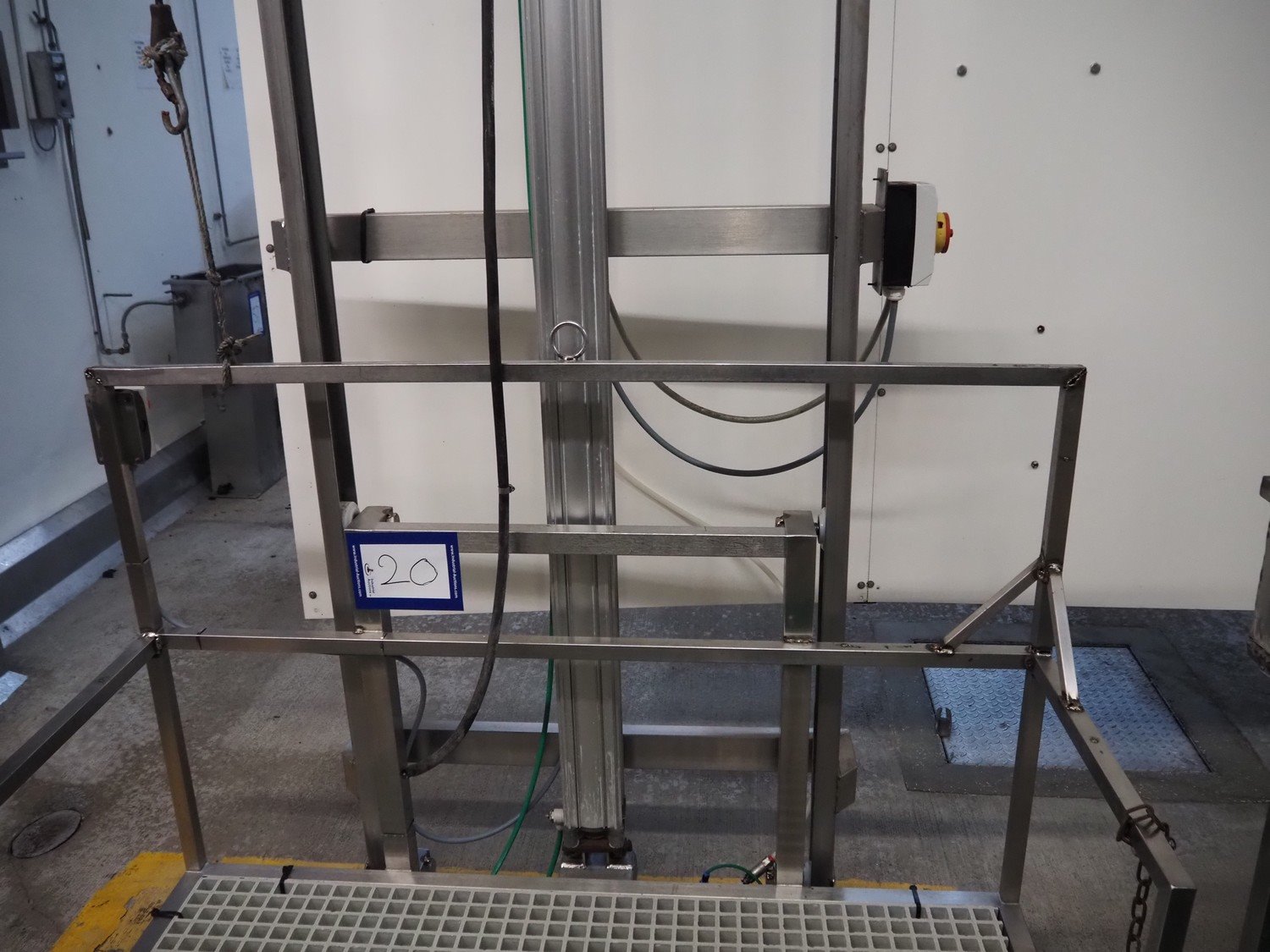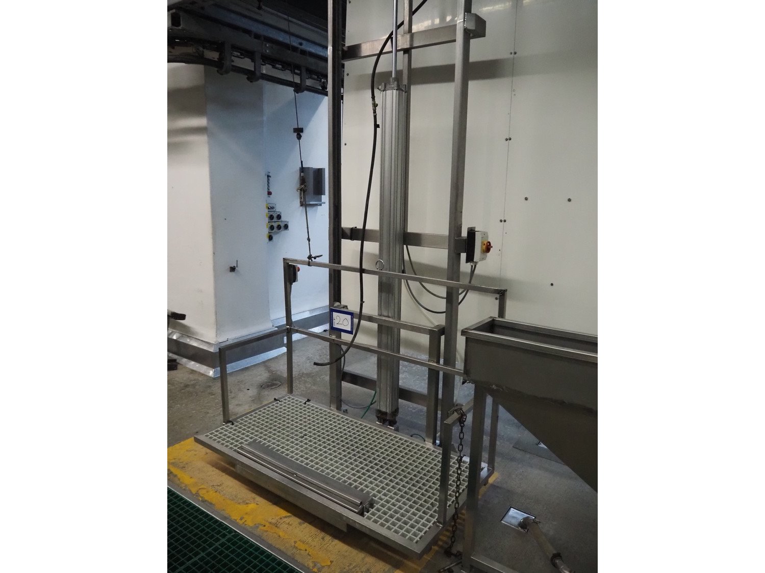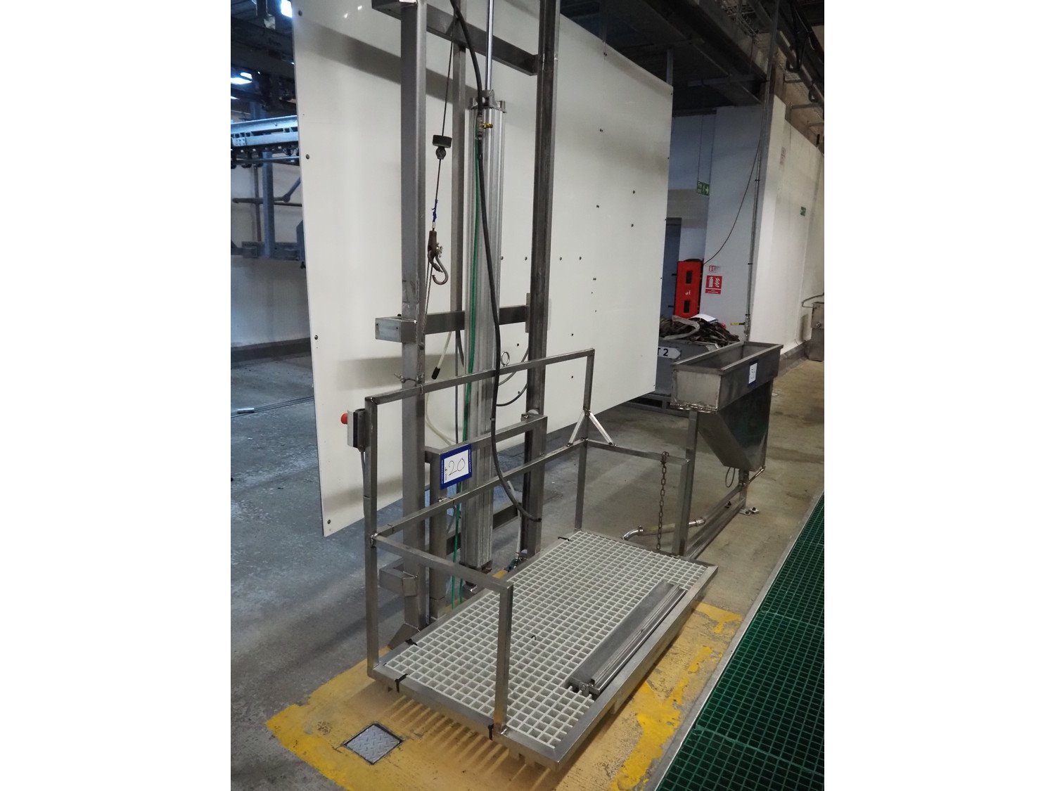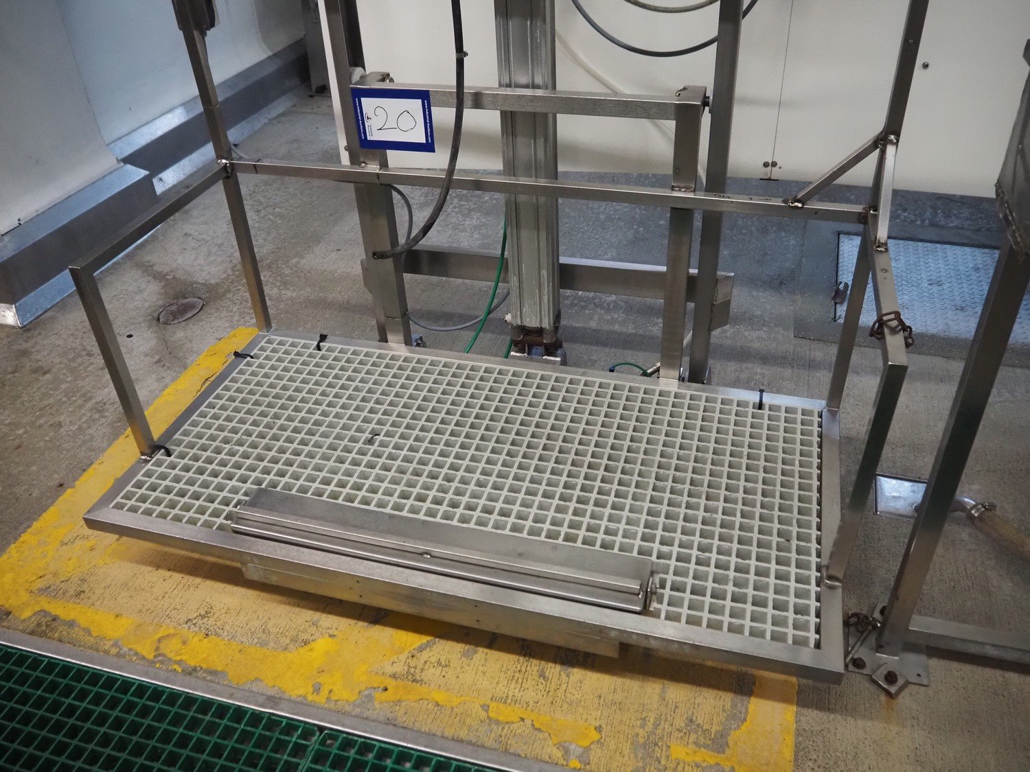 Banss Schlacht- und Fördertechnik GmbH in height adjustable working platform, maximum lifting height: 1880 mm, total dimensions: 1580 mm x 1050 mm x 4400 mm. Kavel locatie: Baulker Lane, NG21 9BG Clipstone, Mansfield, Verenigd Koninkrijk