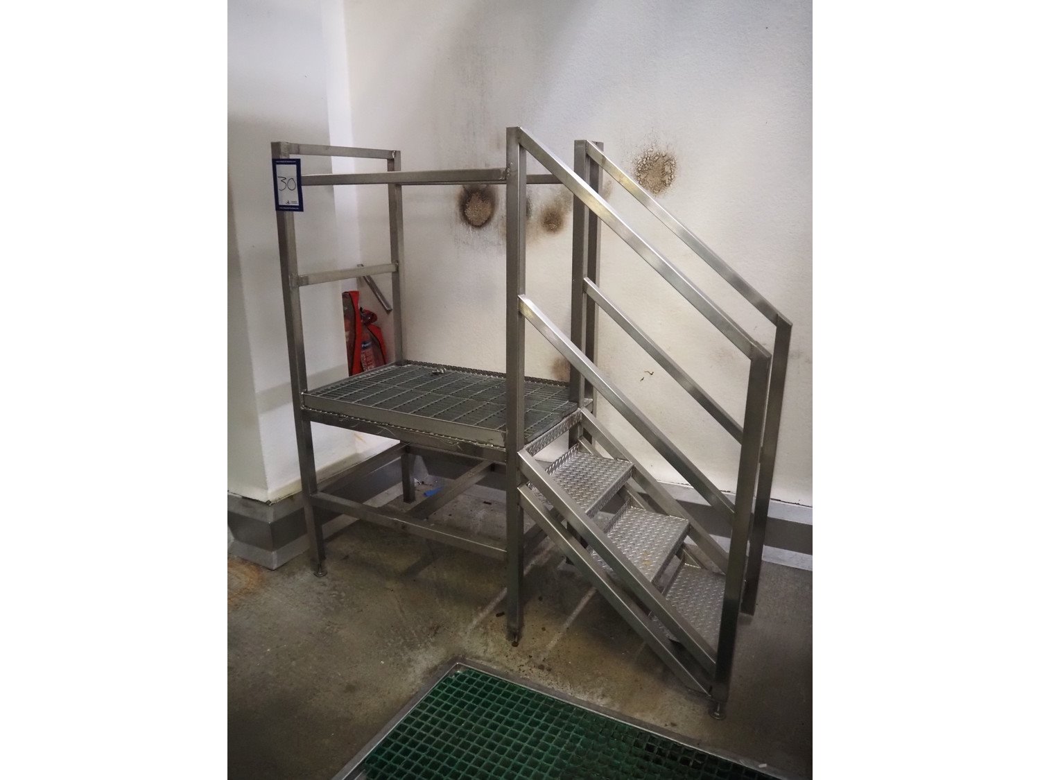 S/s platform, working height: 840 mm, total dimensions: 1930 mm x 750 mm x 1900 mm. Kavel locatie: Baulker Lane, NG21 9BG Clipstone, Mansfield, Verenigd Koninkrijk