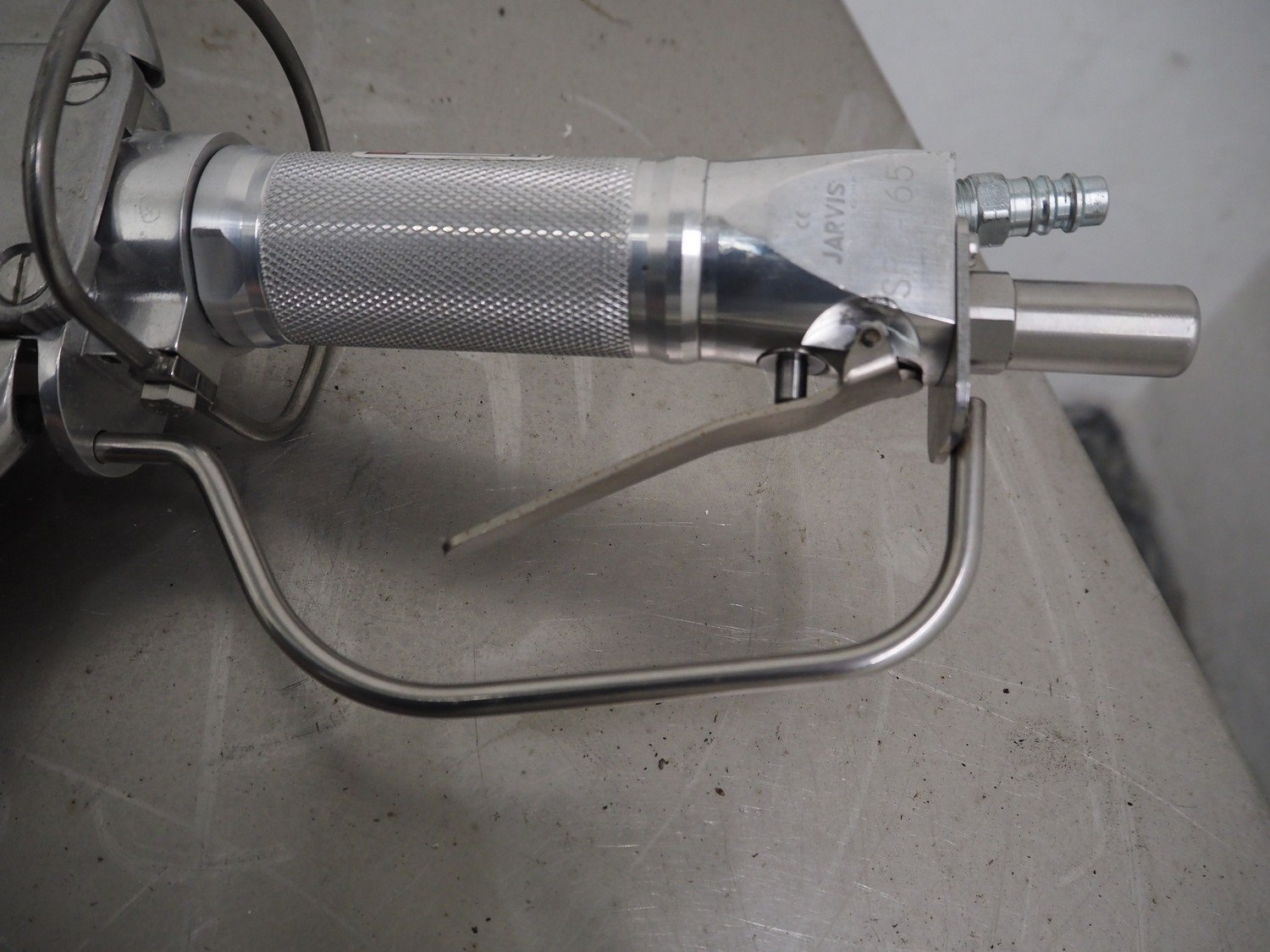 Jarvis circular saw, model: SPC-165, serial number: 116576, saw diameter: 165 mm, total dimensions: 400 mm x 200 mm x 110 mm. Kavel locatie: Baulker Lane, NG21 9BG Clipstone, Mansfield, Verenigd Koninkrijk