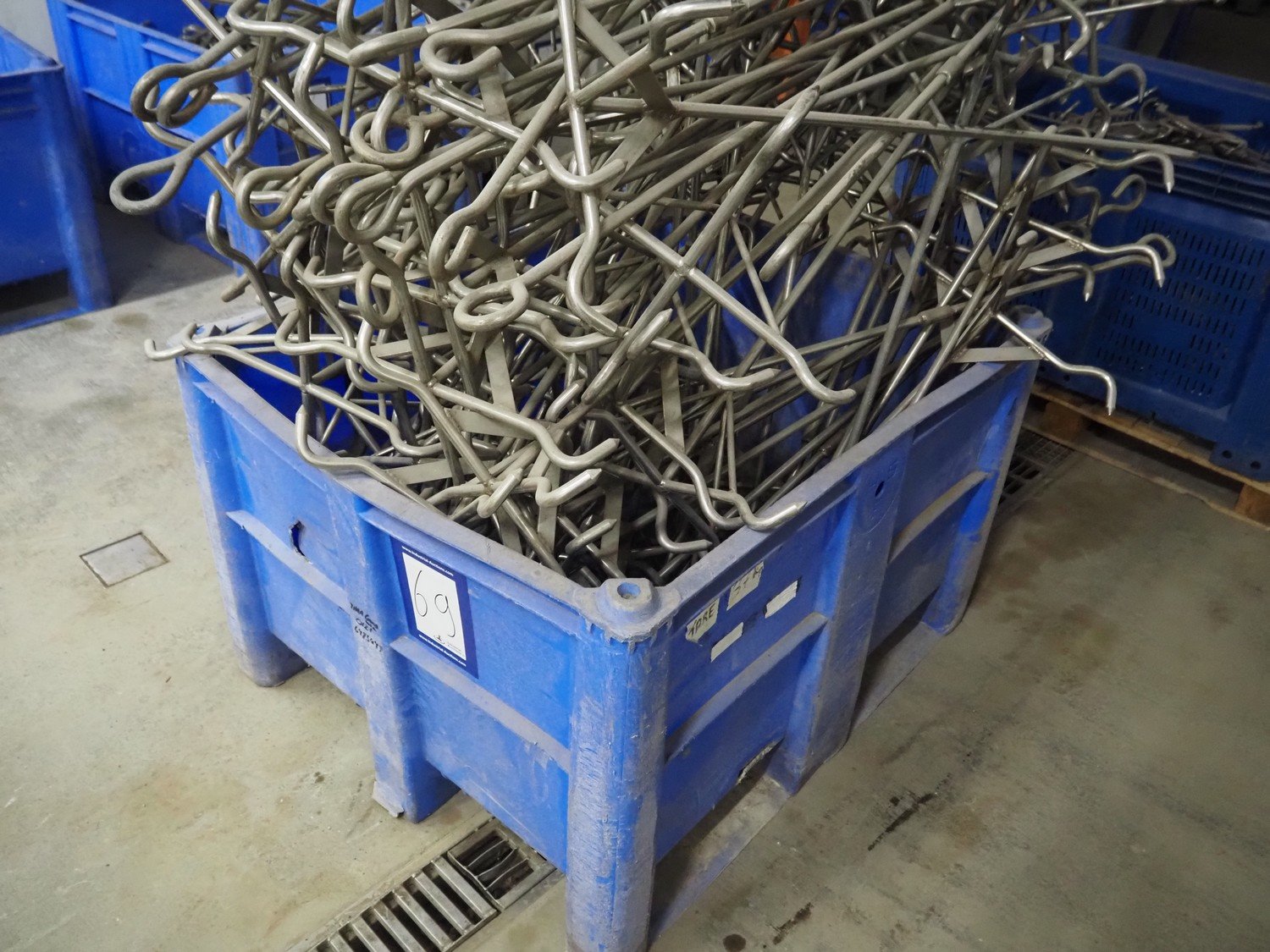 Pallet box with s/s organ hooks, dimensions: 520 mm x 520 mm x 1160 mm. Kavel locatie: Baulker Lane, NG21 9BG Clipstone, Mansfield, Verenigd Koninkrijk