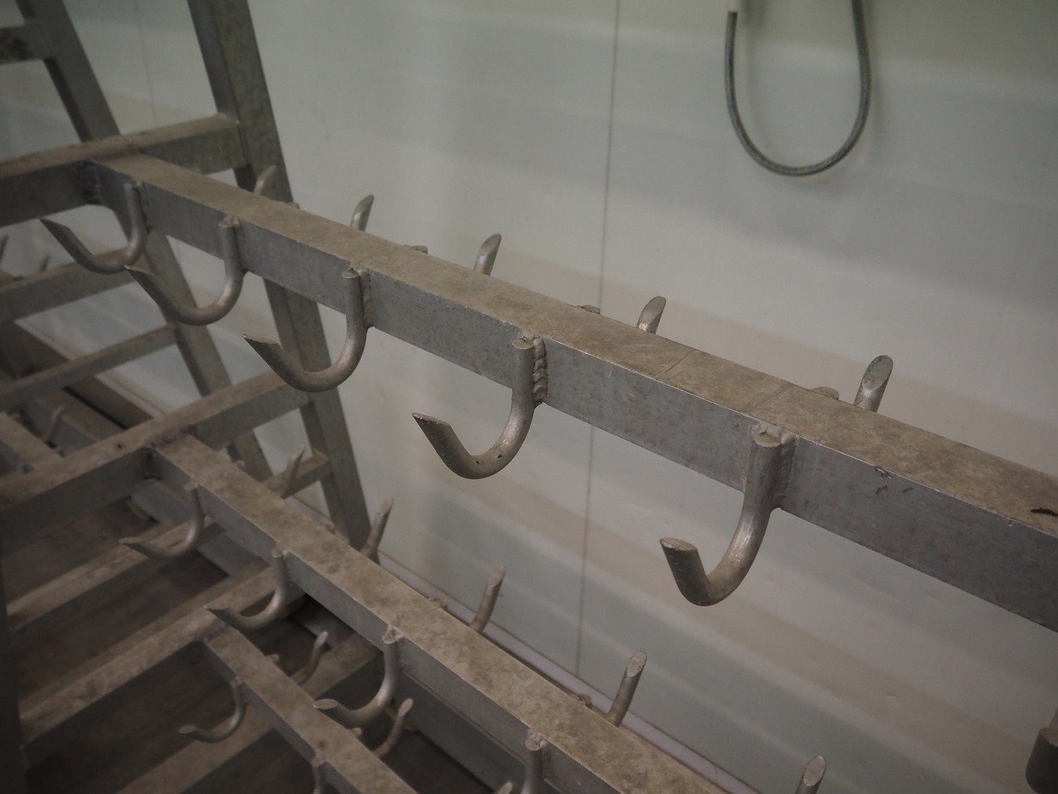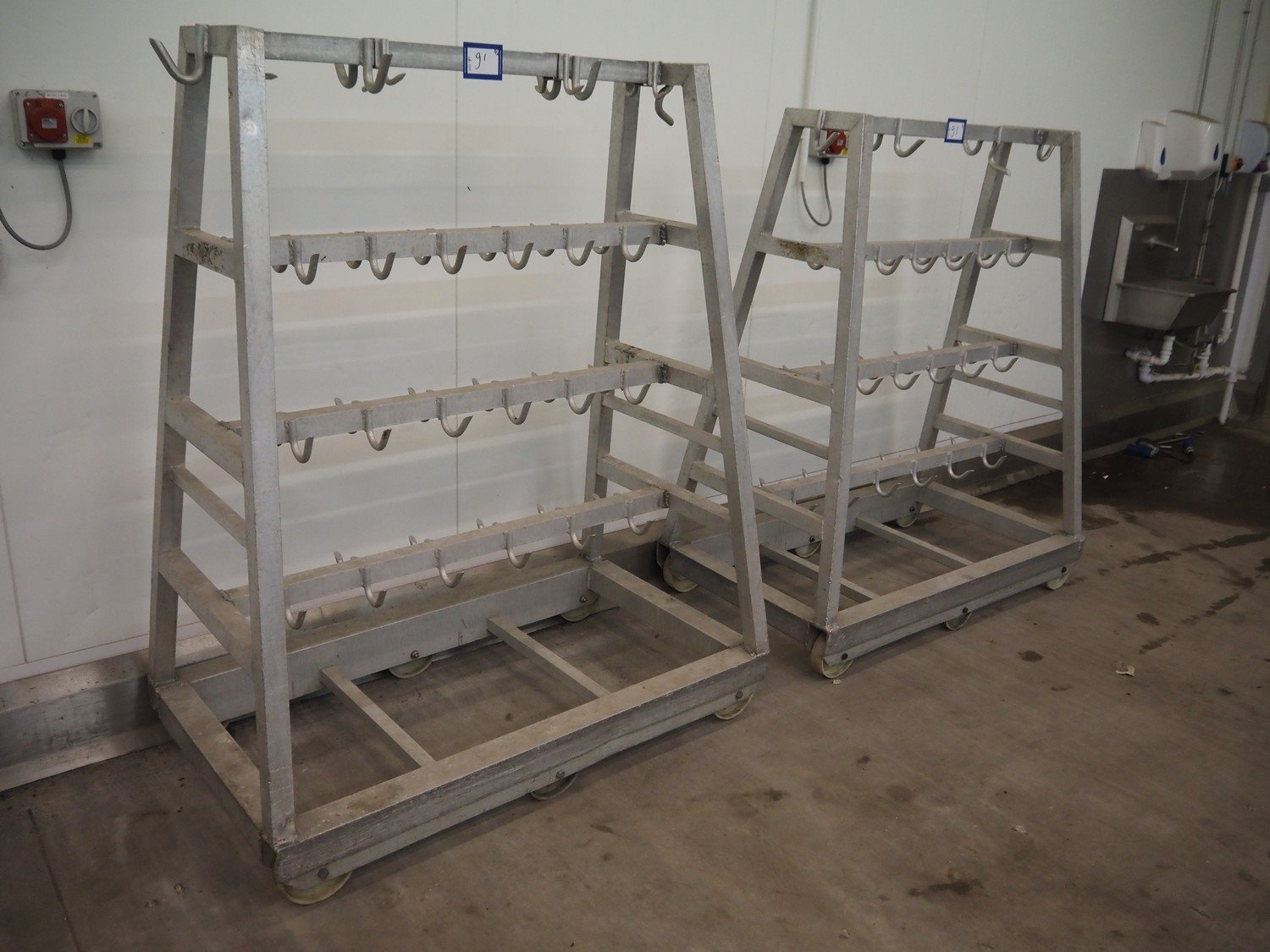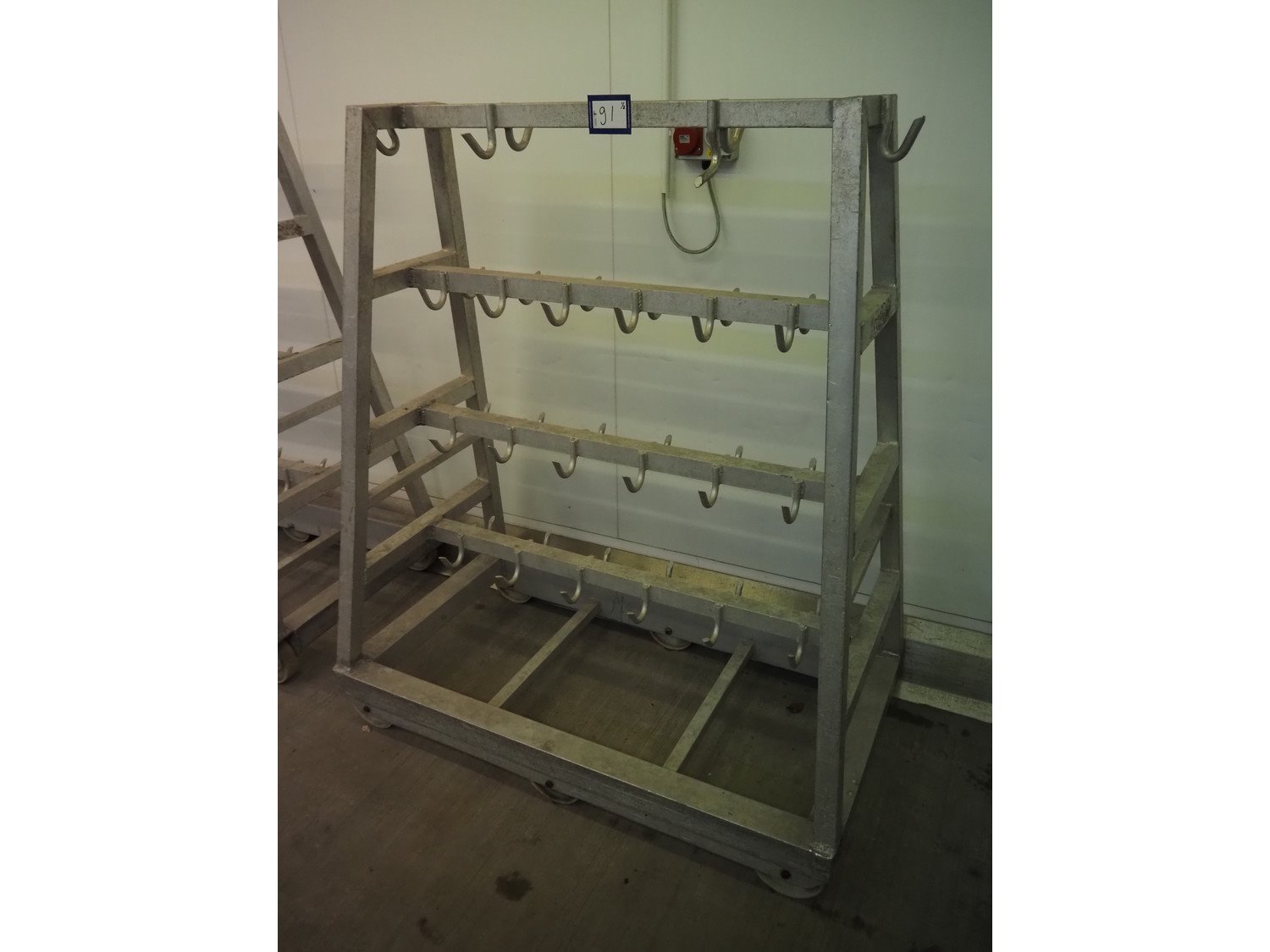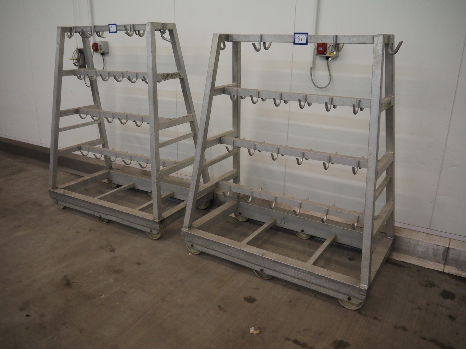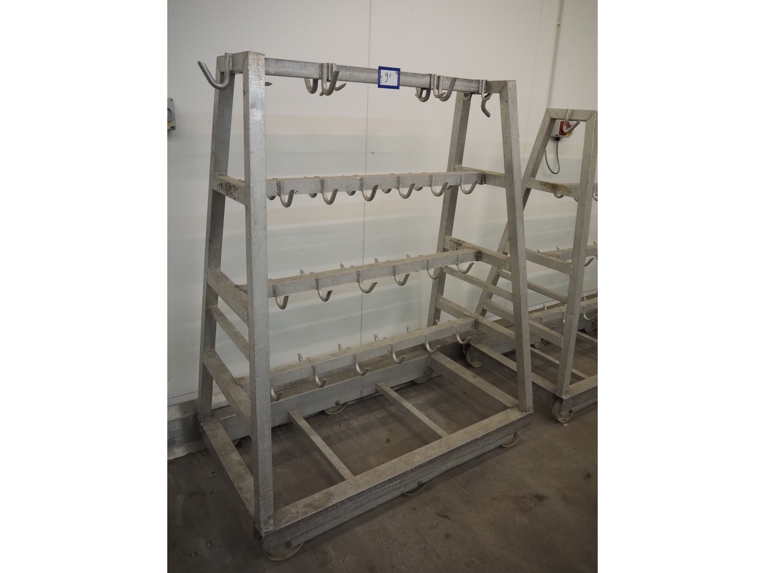 2 Aluminum trolleys with hooks, dimensions: 1570 mm x 670 mm x 1850 mm. Kavel locatie: Baulker Lane, NG21 9BG Clipstone, Mansfield, Verenigd Koninkrijk