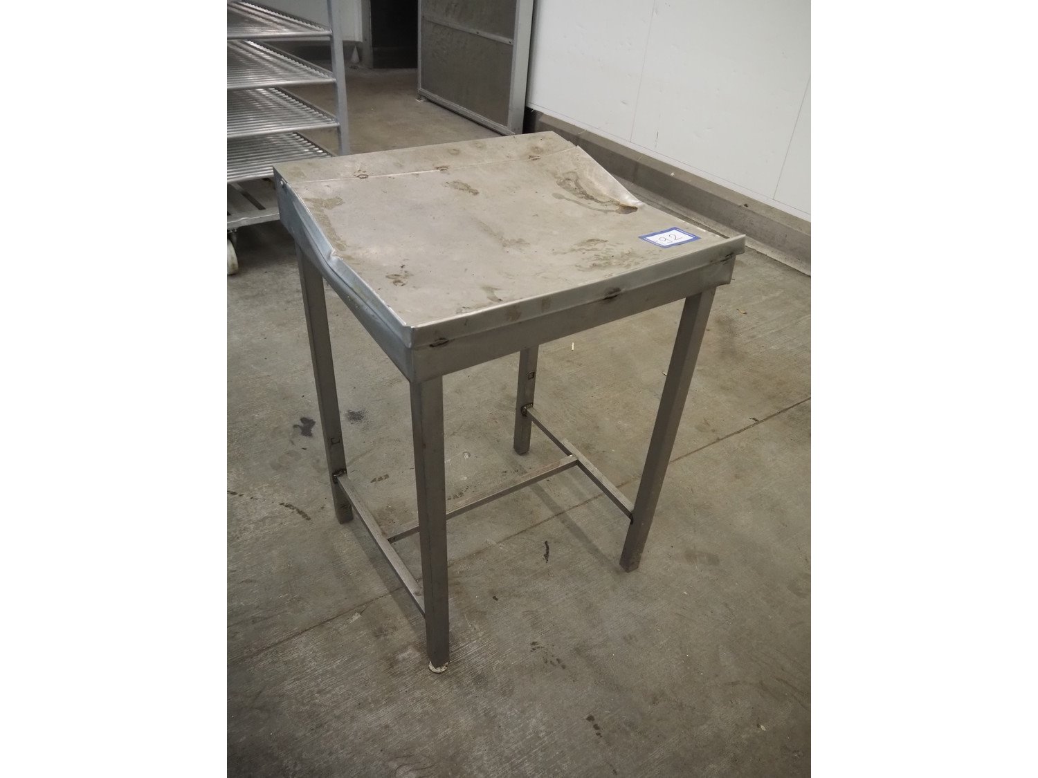 S/s table, dimensions: 500 mm x 600 mm x 1000 mm. Kavel locatie: Baulker Lane, NG21 9BG Clipstone, Mansfield, Verenigd Koninkrijk