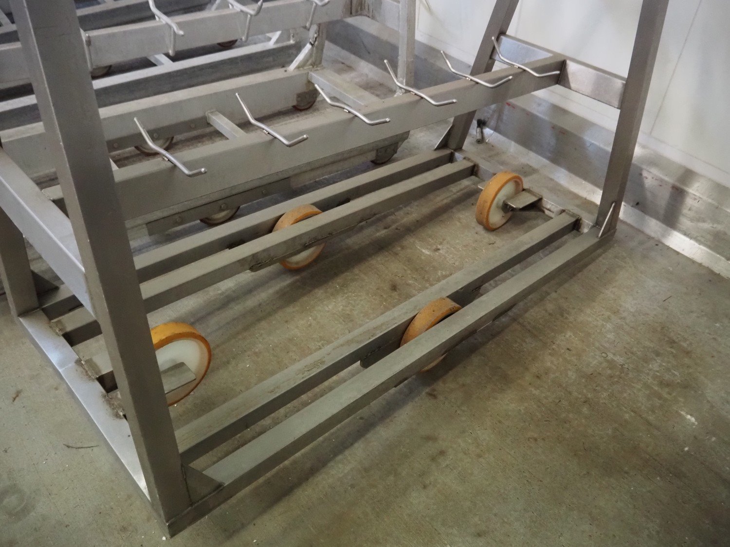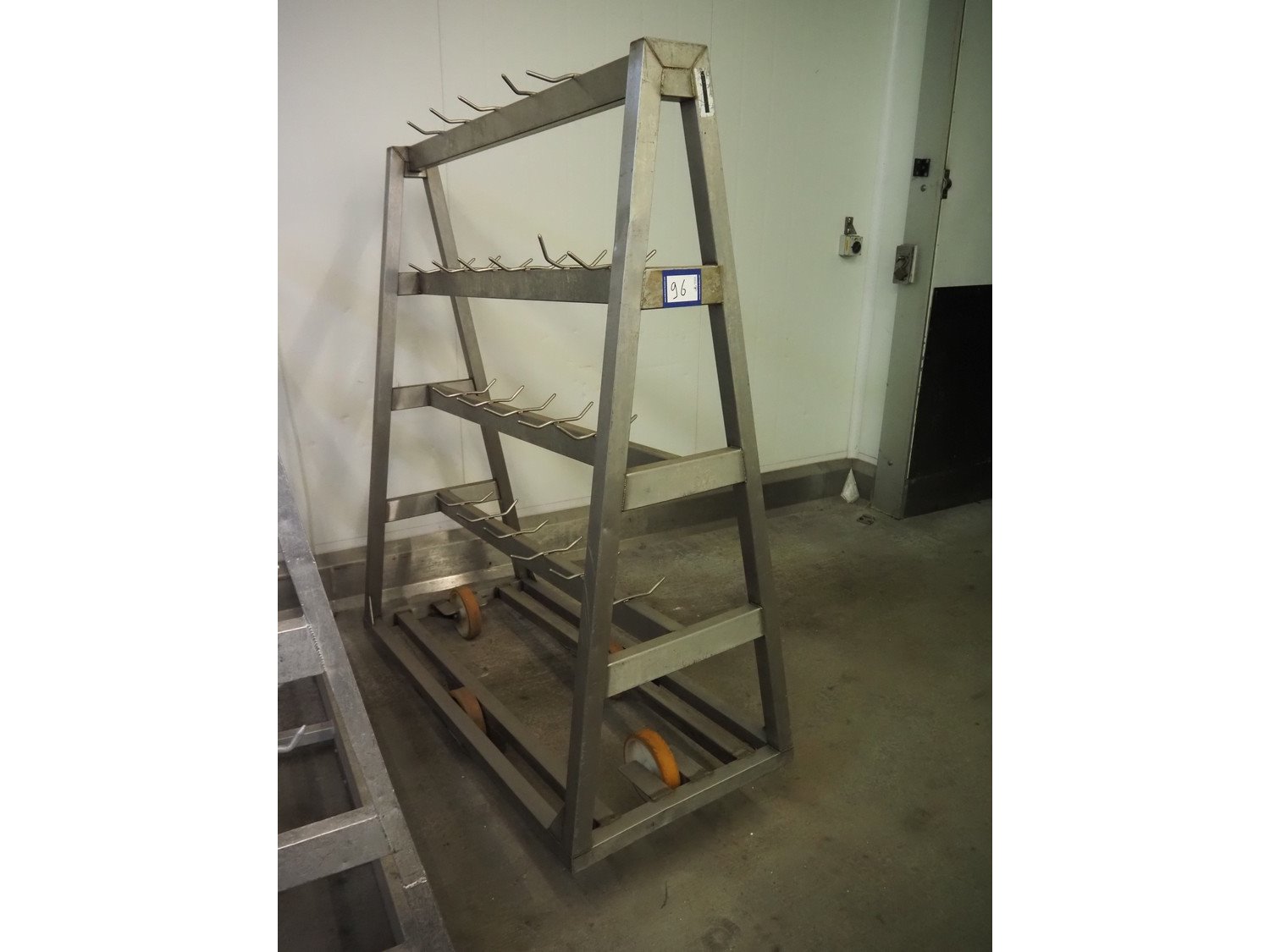 S/s trolley with hooks, dimensions: 1570 mm x 700 mm x 1950 mm. Kavel locatie: Baulker Lane, NG21 9BG Clipstone, Mansfield, Verenigd Koninkrijk