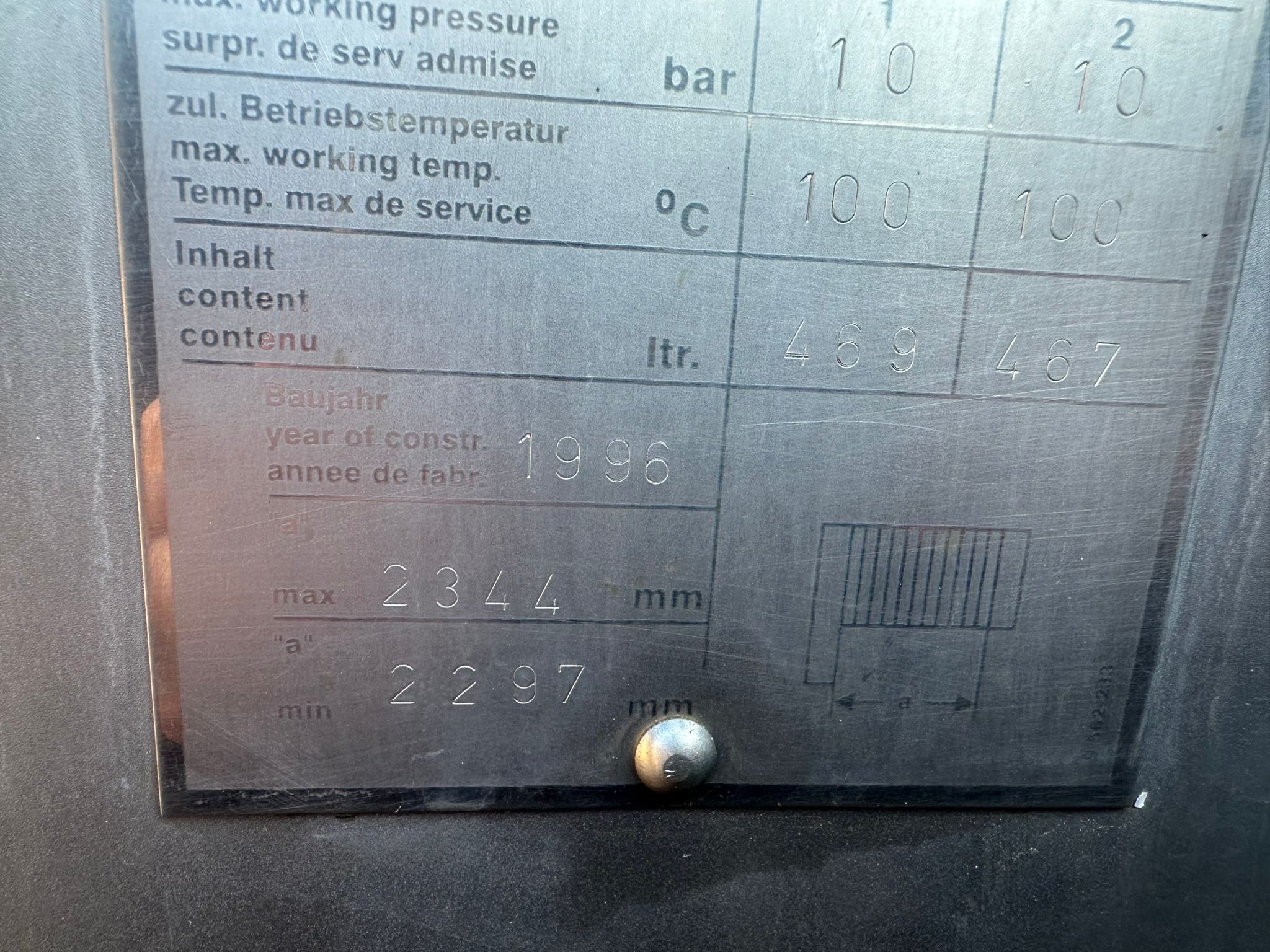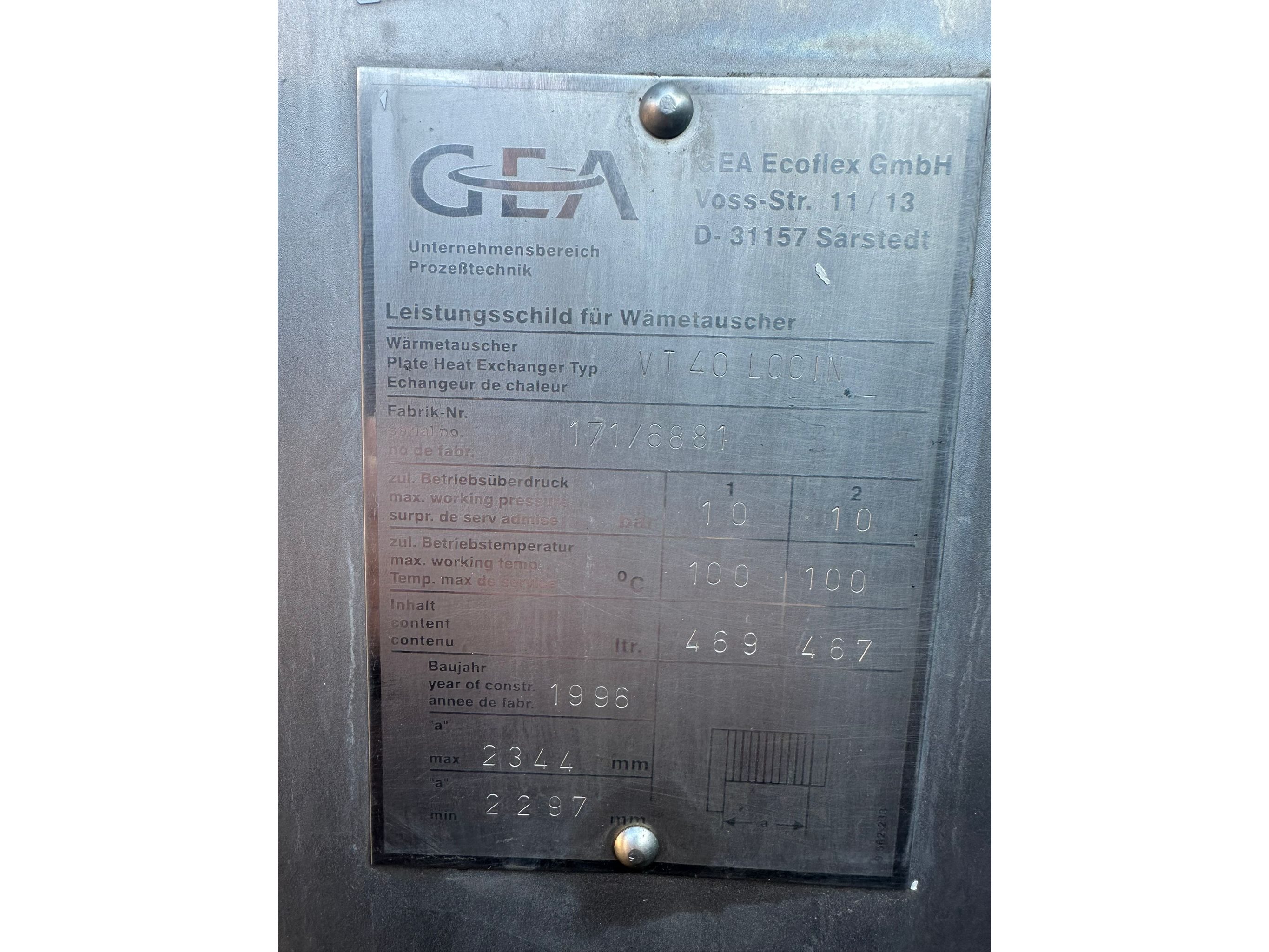 GEA heat exchanger, type: VT40 LOCIN, fabrication: 171/6881, year of construction: 1996, volume: 469/467 liter, estimated weight: 4000 kg, dimensions: 3500 mm x 600 mm x 1900 mm. Kavel locatie: Kaldenkerkerweg 5, 5932 CS Tegelen, Nederland