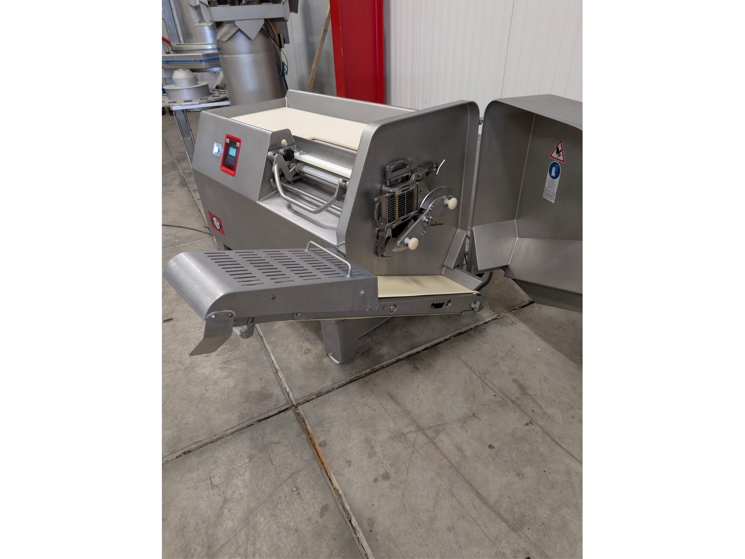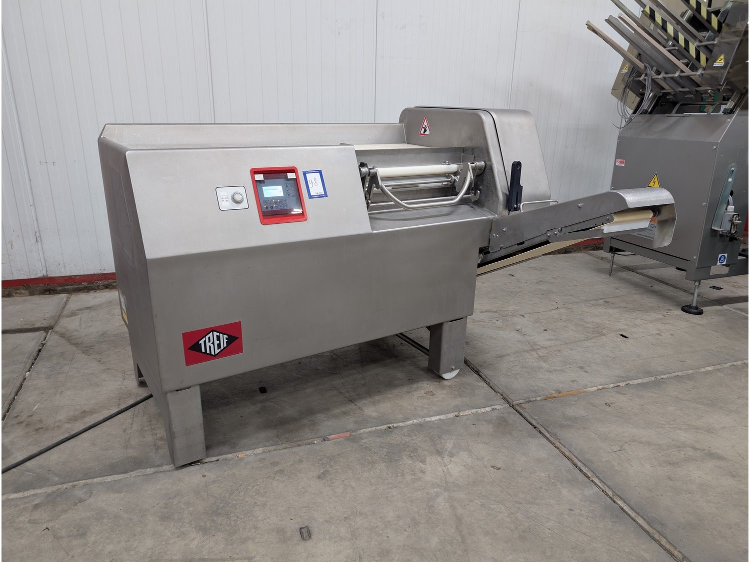 Treif Maschinenbau GmbH dicer, model: Argon, machine number: 410002.70041.103356, year of construction: 2007, 380-480 V, 3 Ph, 50/60 Hz, 16 A, 2 kW, weight: 415 kg, chamber dimensions: 90 mm x 90 mm x 550 mm, plastic outfeed belt, belt width: 240 mm, total dimensions: 1740 mm x 1440 mm x 1200 mm. Kavel locatie: Bedrijfsweg 7, 8304 AA Emmeloord, Nederland