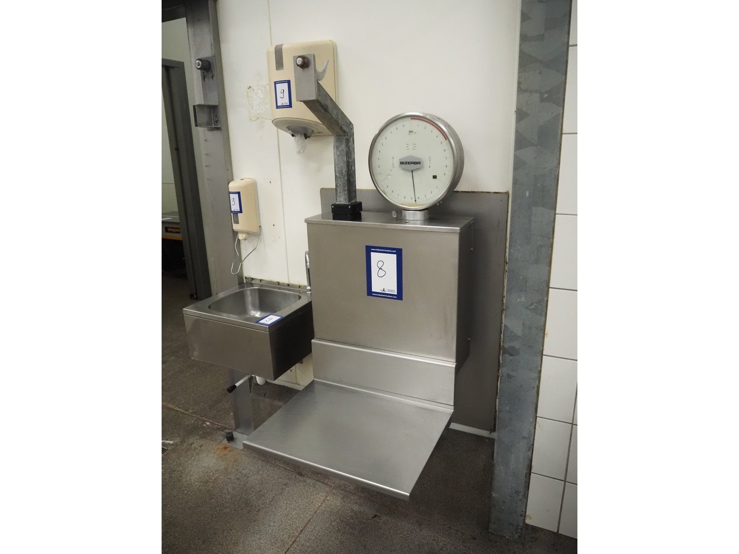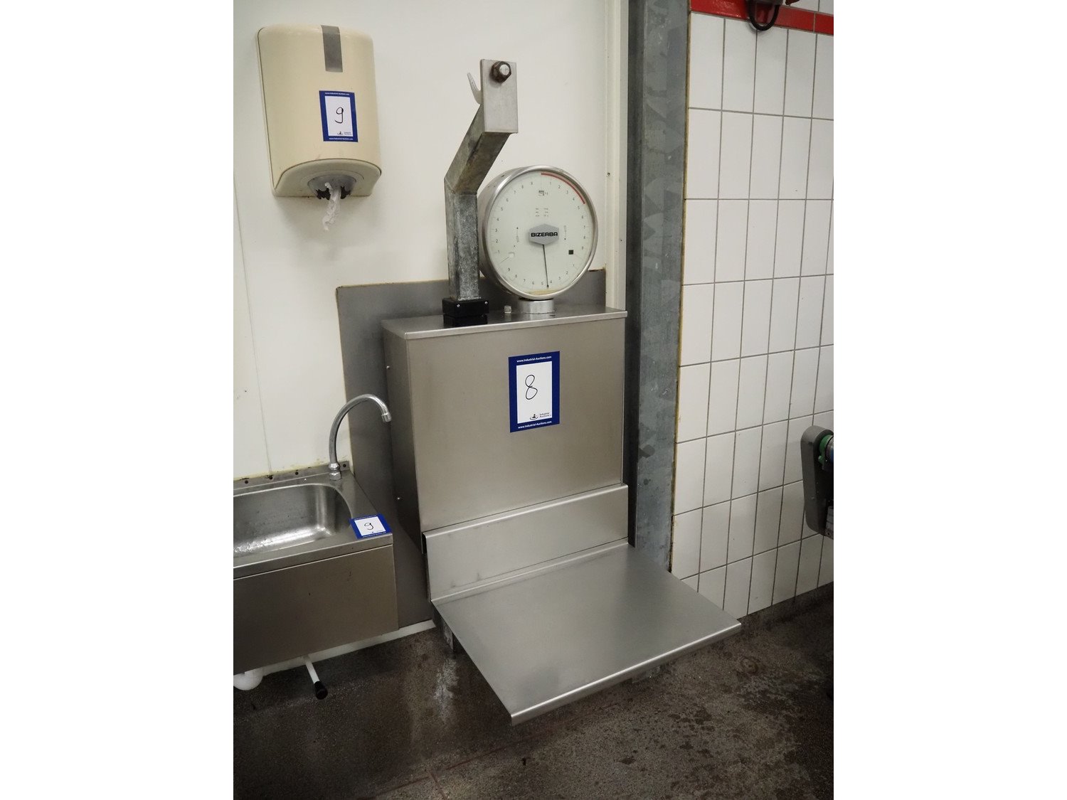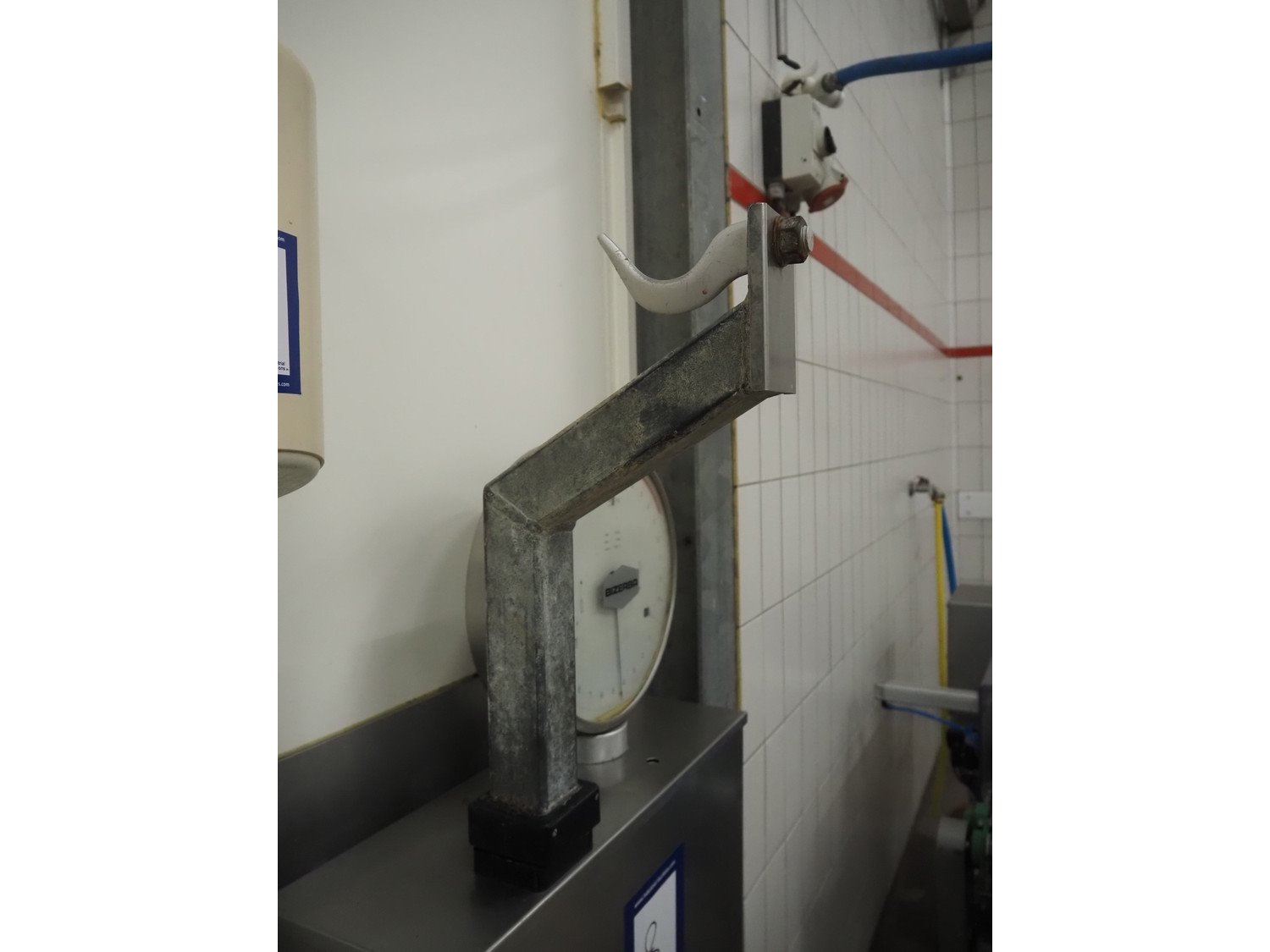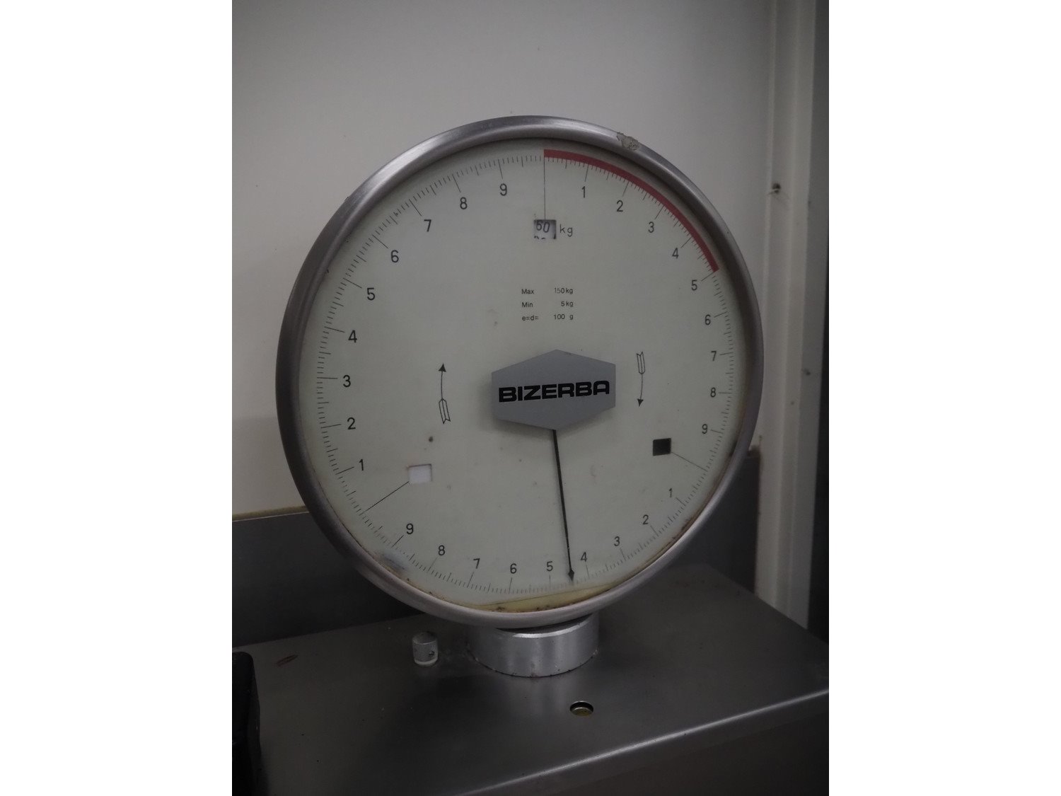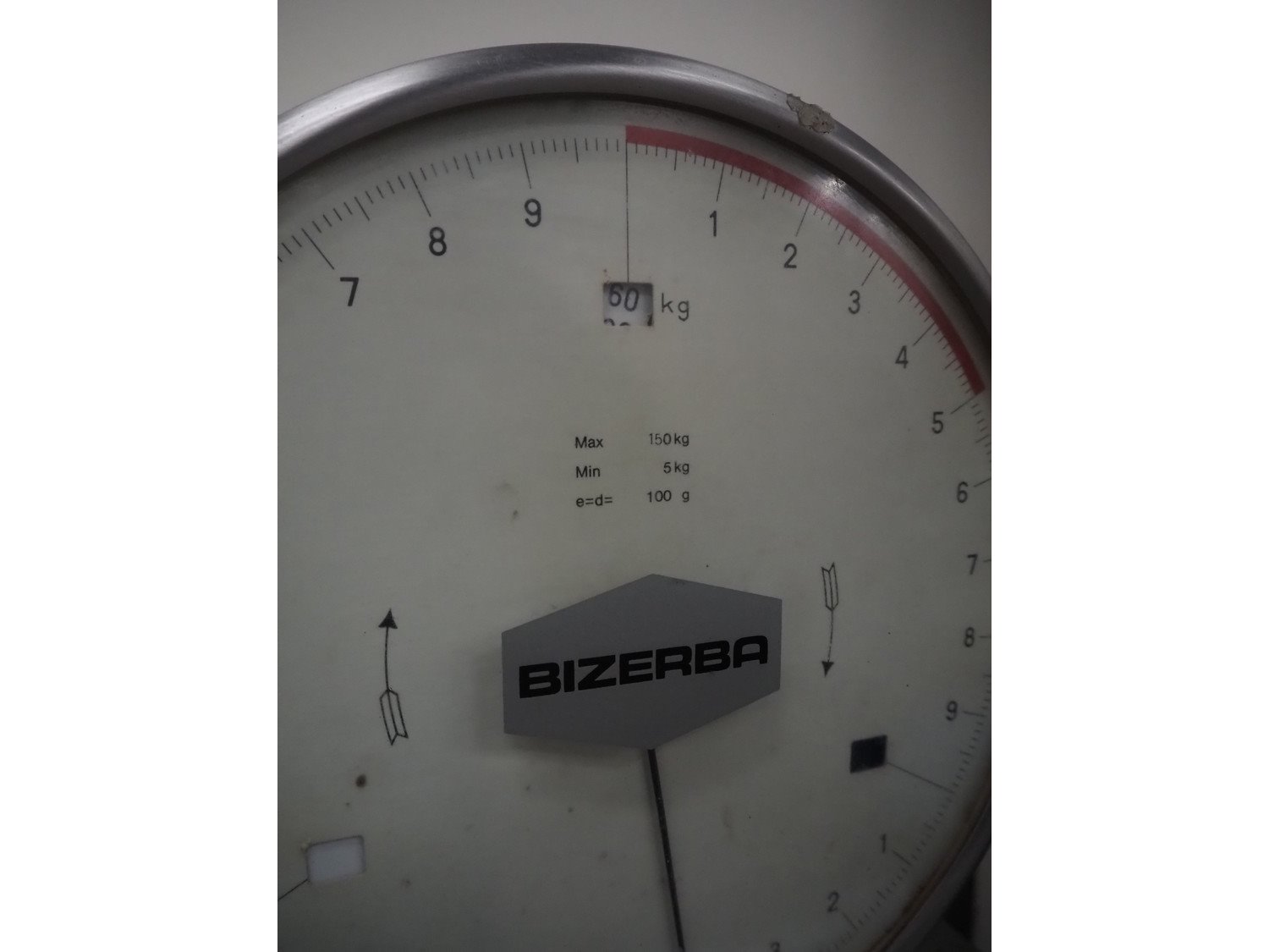 Bizerba weighing scale, maximum weight: 150 kg, minimum weight: 5 kg, e=d= 100 g, dimensions: 750 mm x 600 mm x 1400 mm. Kavel locatie: Bosscheweg 8, 5275 HB Den Dungen, Nederland