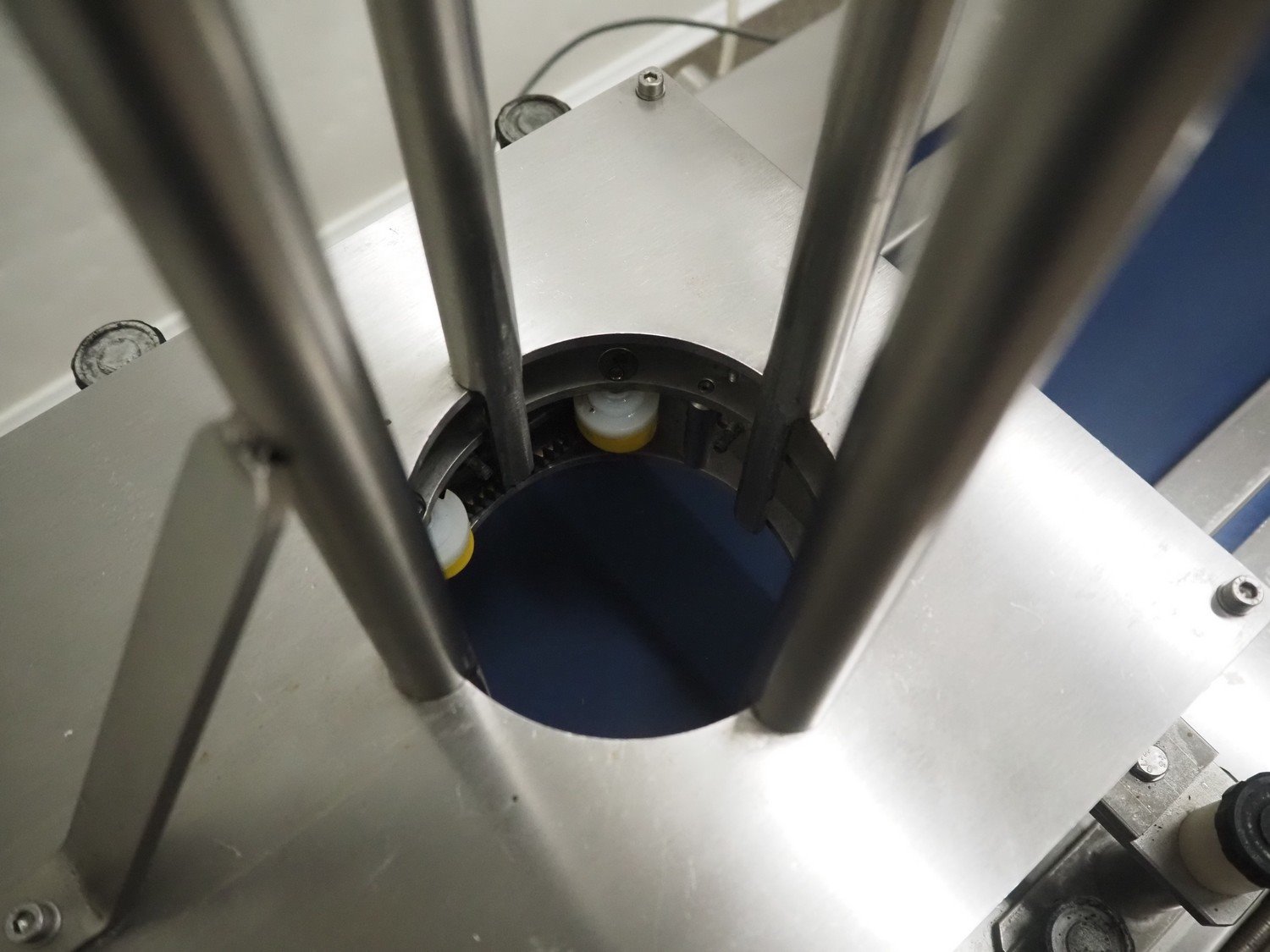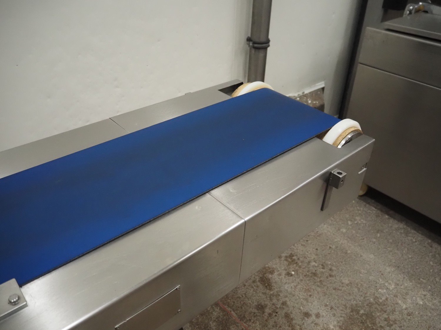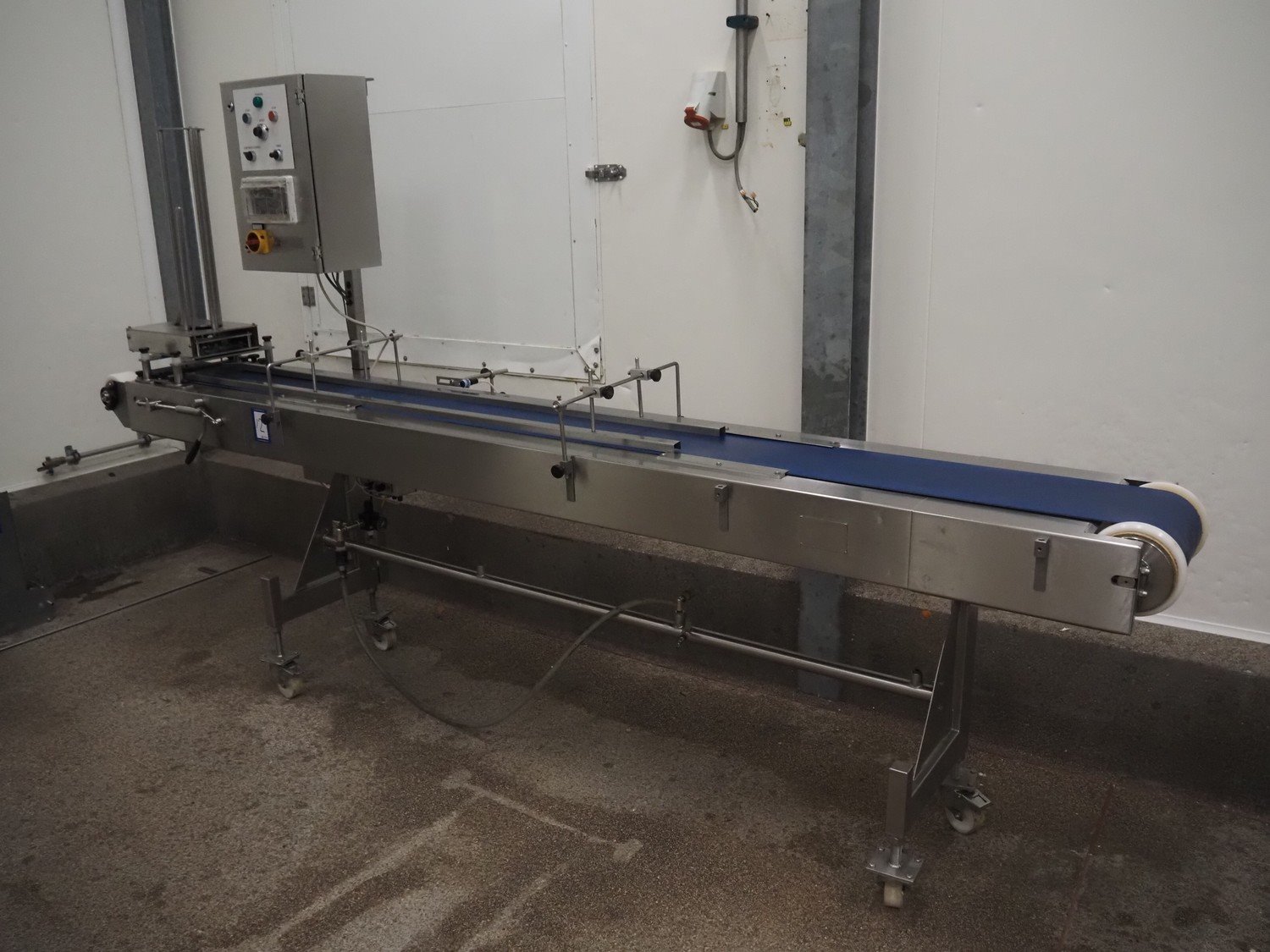 Turbo Systems Limited transport belt with denester, machine number: CONO32501, plastic belt, diameter cups: 115 mm, belt width: 240 mm, total dimensions: 3200 mm x 500 mm x 1800 mm. Kavel locatie: Bosscheweg 8, 5275 HB Den Dungen, Nederland