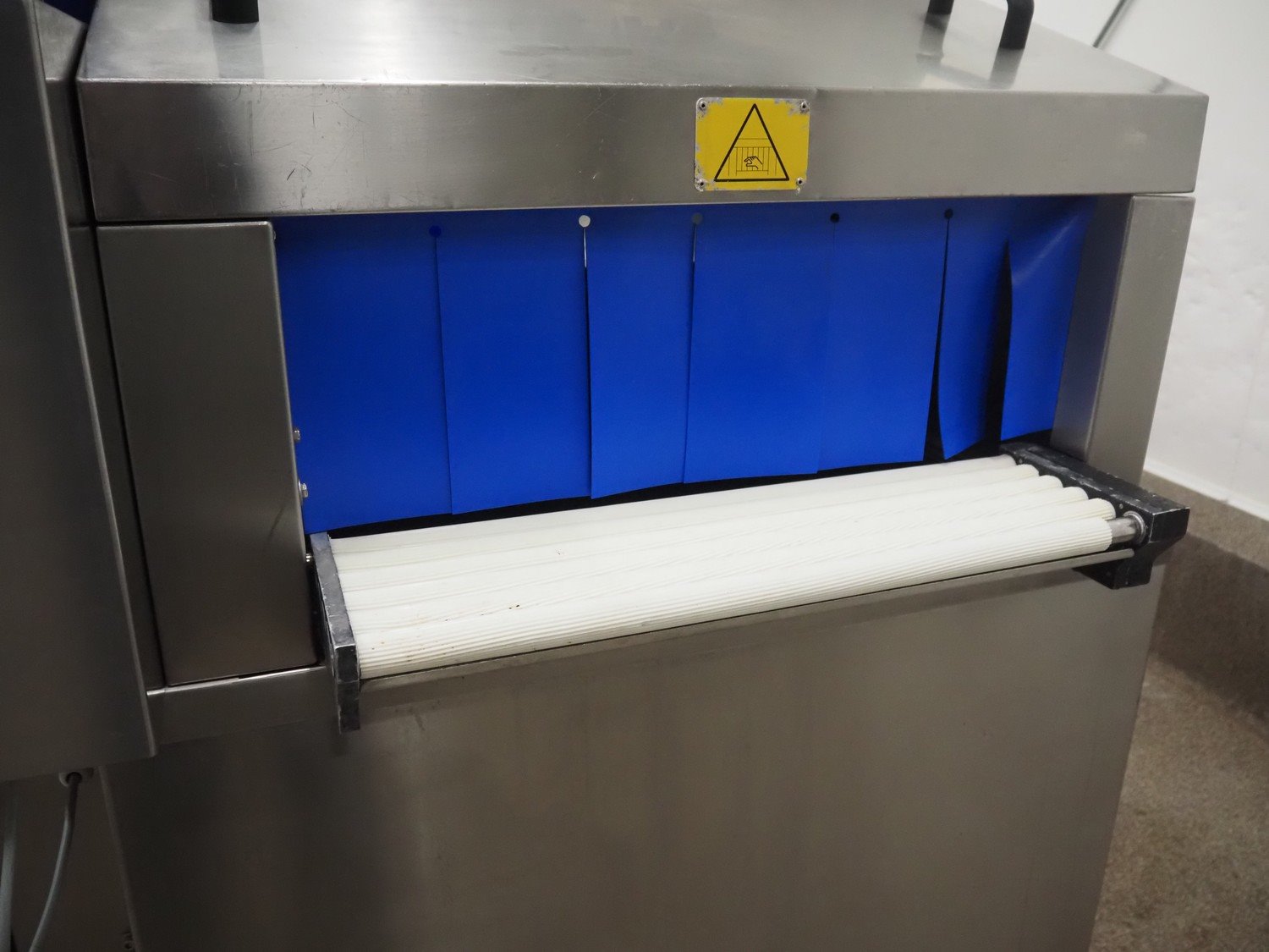 Cryovac dip tank, model: ST12 L/HS, serial number: SN01003, year of construction: 2011, 380/415 V, 3 Ph, 50 Hz, 16 A, clearance: 710 mm x 240 mm, s/s belt, belt width: 610 mm, plastic rollers, roller width: 590 mm, total dimensions: 1500 mm x 1400 mm x 2000 mm. Kavel locatie: Bosscheweg 8, 5275 HB Den Dungen, Nederland