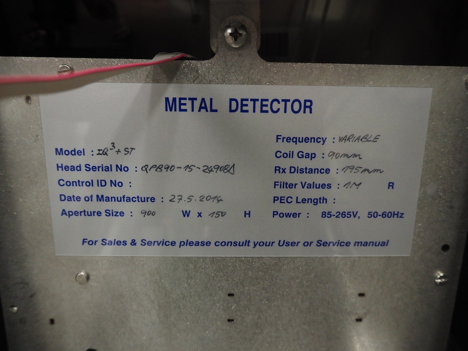 Loma Systems mobile metal detector with rejector, model: IQ³+ST, serial number: QPB90-15-24908, year of construction: 27.5.2014, 110-240 V, 1 Ph, 50/60 Hz, 0.5-1.0 A, plastic belt, belt width: 860 mm, clearance: 860 mm x 105 mm, total dimensions: 2350 mm x 1500 mm x 1650 mm. Kavel locatie: Bosscheweg 8, 5275 HB Den Dungen, Nederland