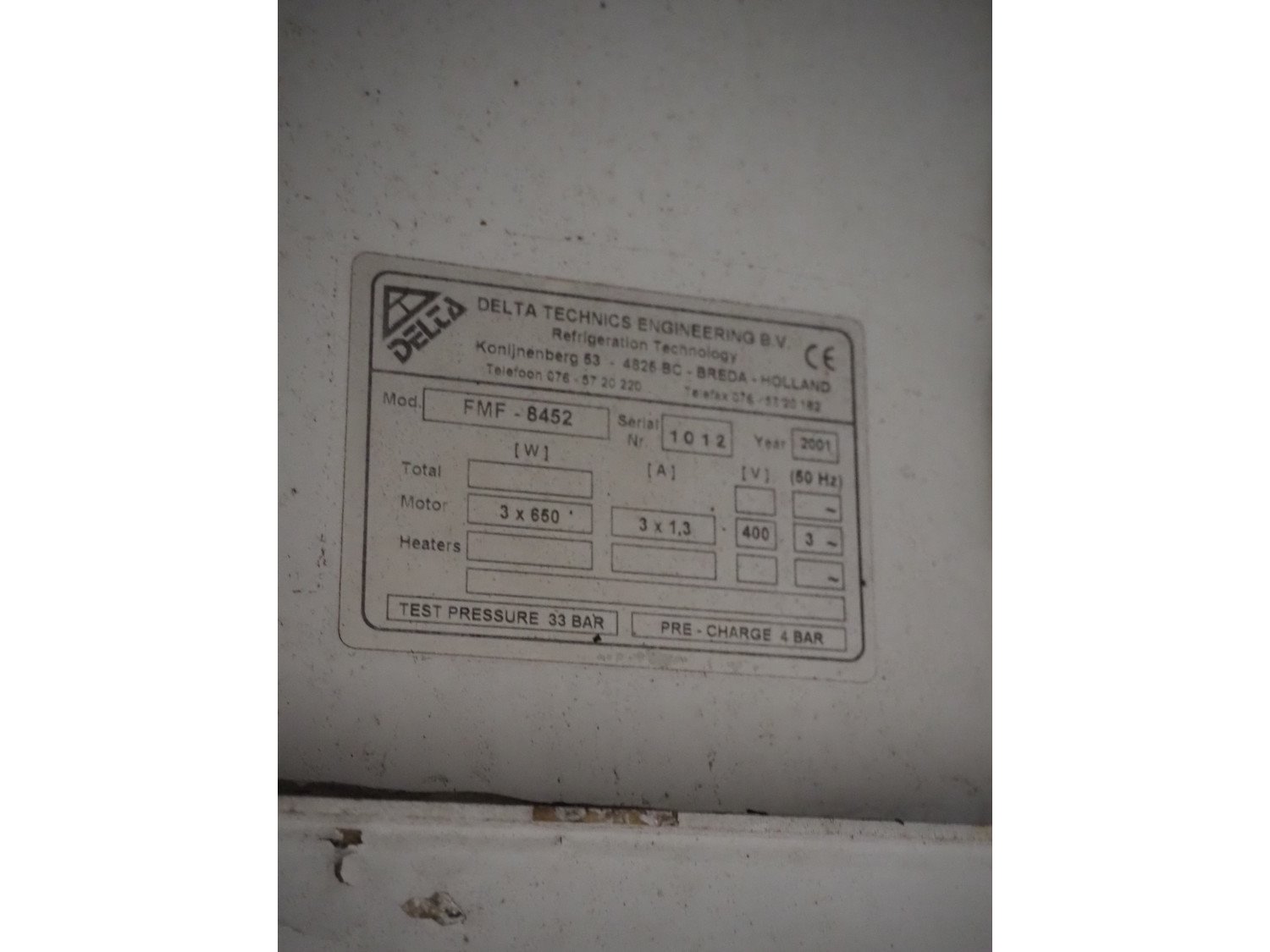 Delta Technics Engineering B.V. evaporator, model: FMF-8452, serial number: 1012, year of construction: 2001, 400 V, 3 Ph, 50 Hz, 3 A, 650 W, 2 fans, dimensions: 2000 mm x 600 mm x 600 mm. Kavel locatie: Bosscheweg 8, 5275 HB Den Dungen, Nederland