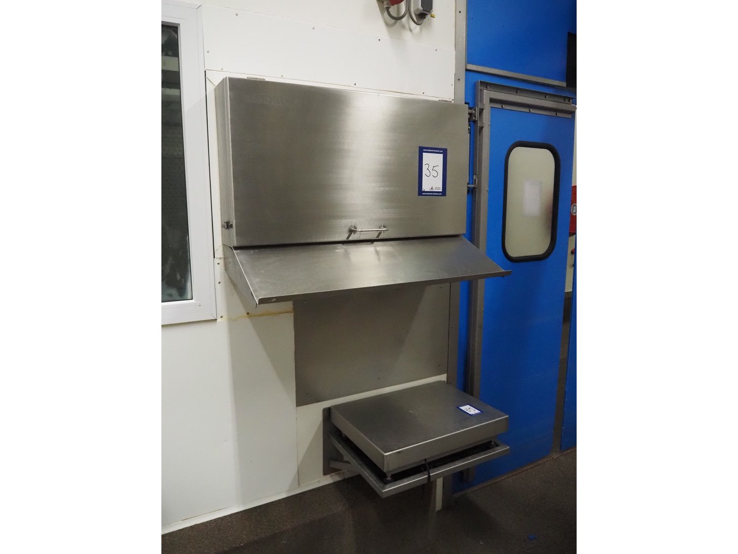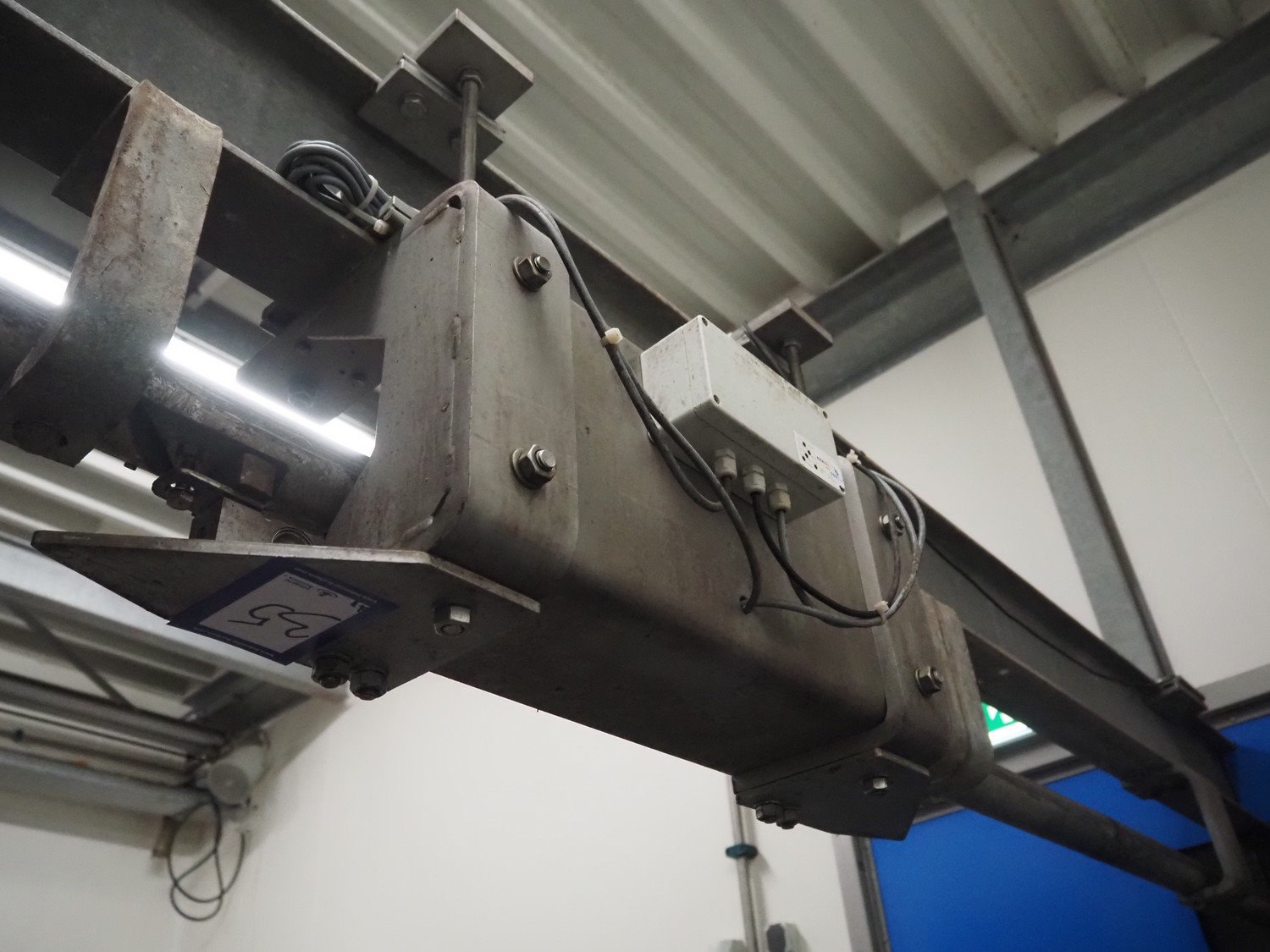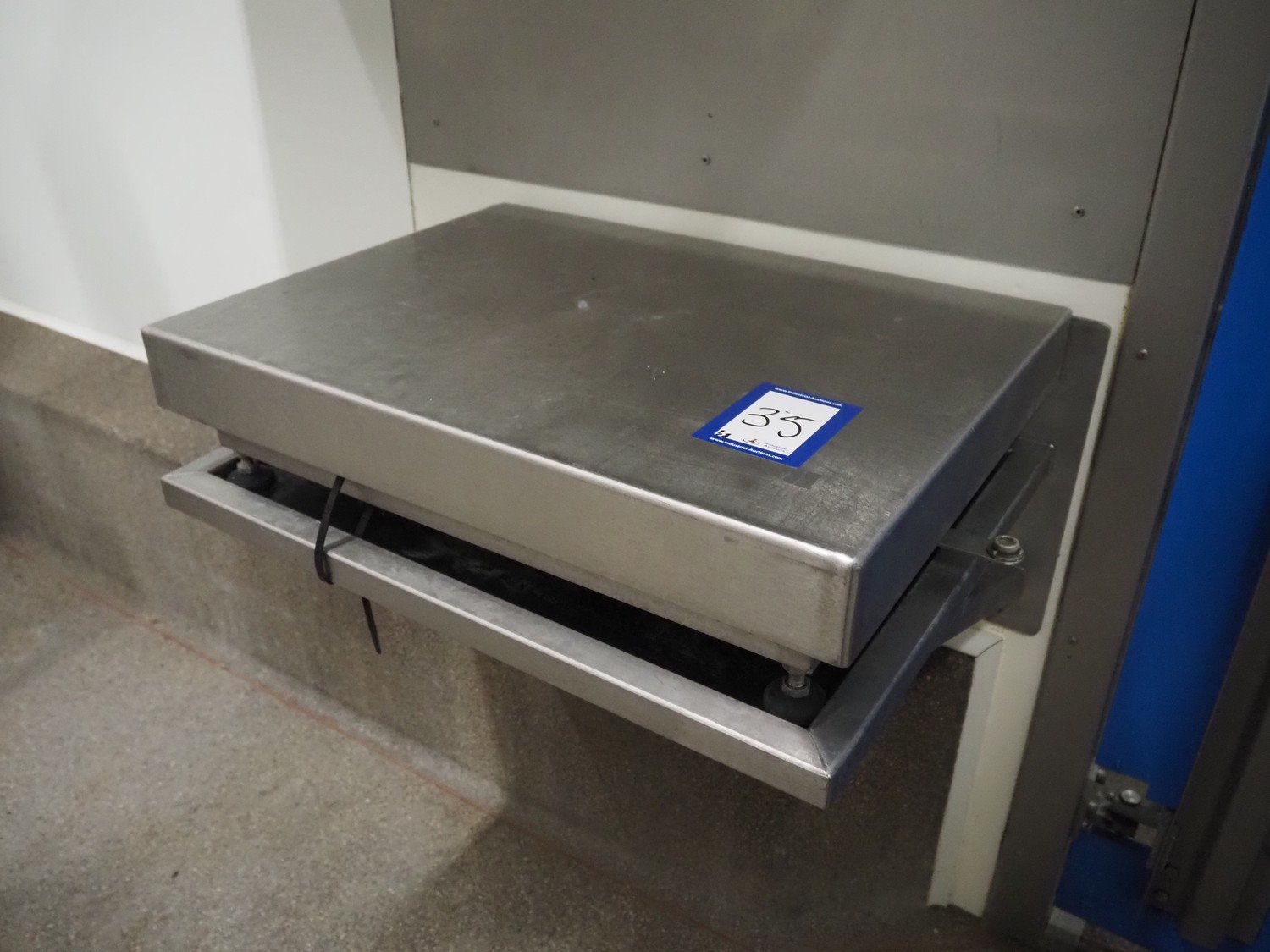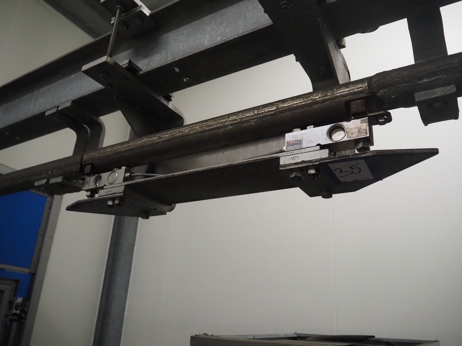 Tedea-Huntleigh tube rail weighing system, model: 3510, serial number': 85974, maximum weight: 500 kg, dimensions: 750 mm x 200 mm x 500 mm, s/s cabinet with indicator and label printer, dimensions: 1000 mm x 500 mm x 600 mm, weighing scale for crates, dimensions: 600 mm x 450 mm x 130 mm. Kavel locatie: Bosscheweg 8, 5275 HB Den Dungen, Nederland