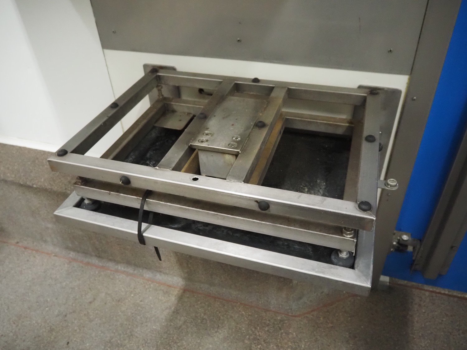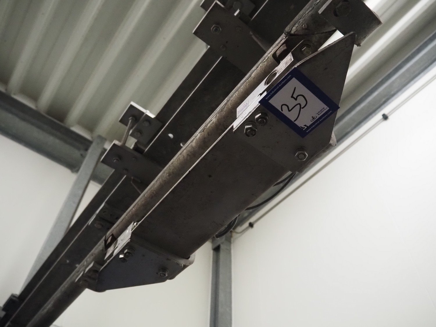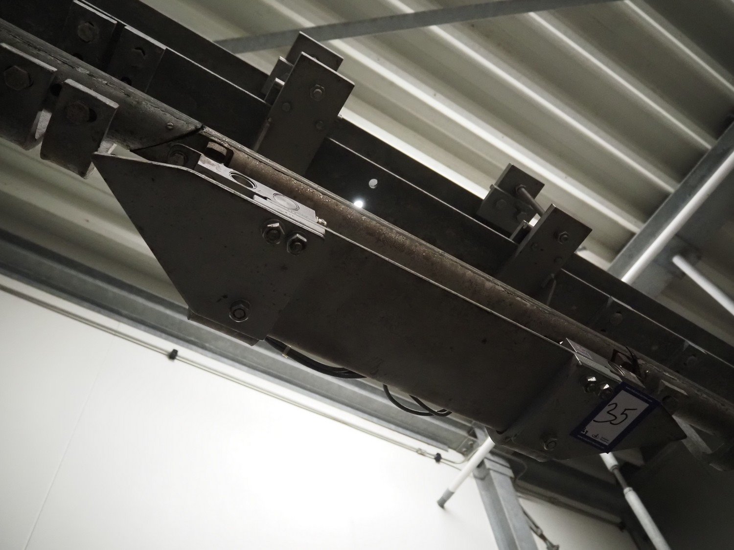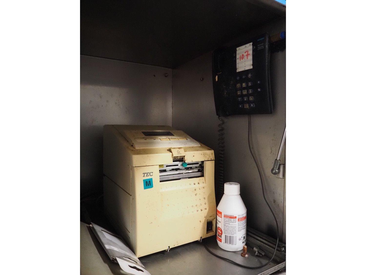 Tedea-Huntleigh tube rail weighing system, model: 3510, serial number': 85974, maximum weight: 500 kg, dimensions: 750 mm x 200 mm x 500 mm, s/s cabinet with indicator and label printer, dimensions: 1000 mm x 500 mm x 600 mm, weighing scale for crates, dimensions: 600 mm x 450 mm x 130 mm. Kavel locatie: Bosscheweg 8, 5275 HB Den Dungen, Nederland