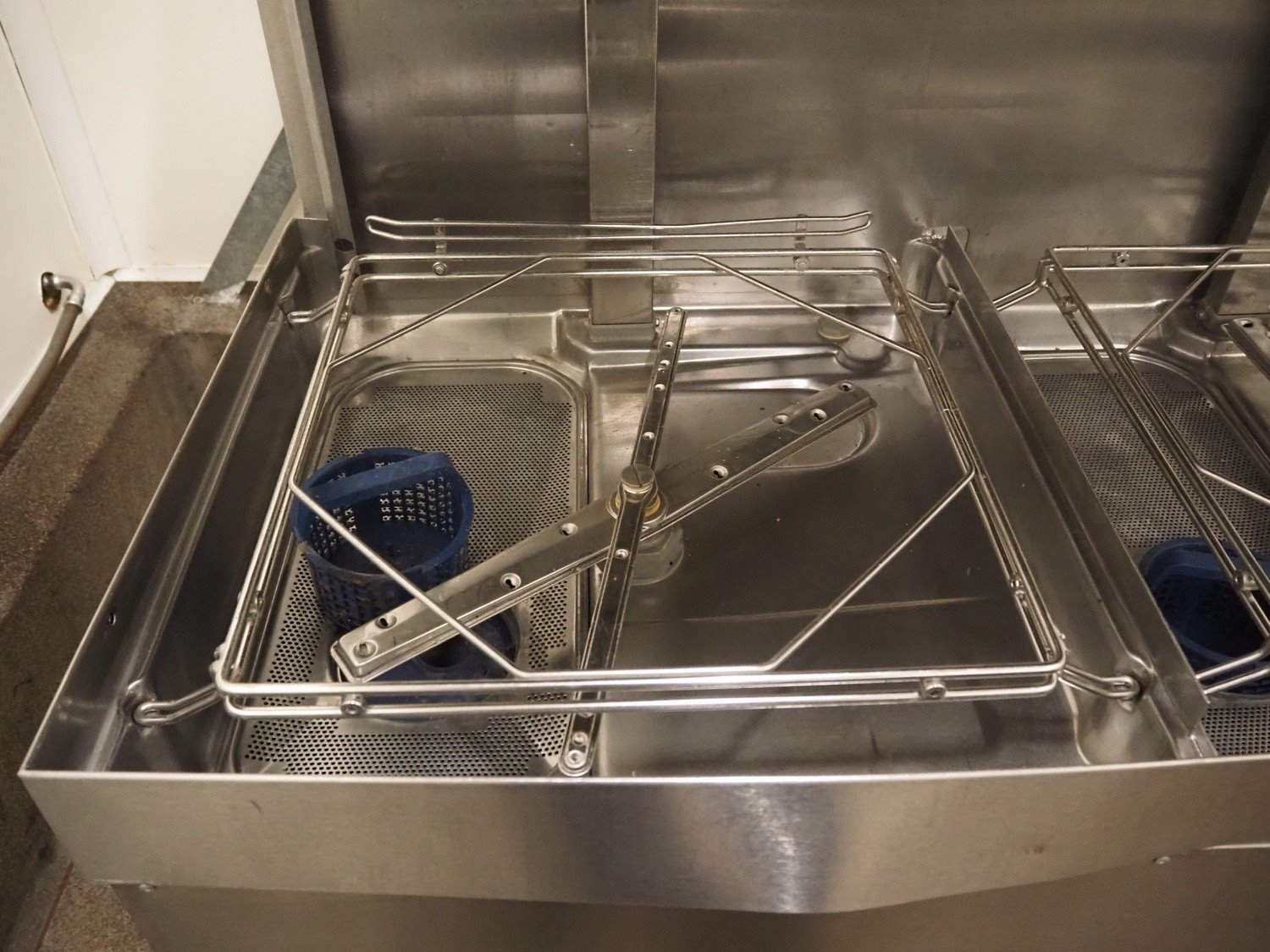 Hobart double dishwasher, inside dimensions: (2x) 300 mm x 500 mm x 400 mm, total dimensions: 1350 mm x 850 mm x 1500 mm. Technical condition unknown. Kavel locatie: Bosscheweg 8, 5275 HB Den Dungen, Nederland