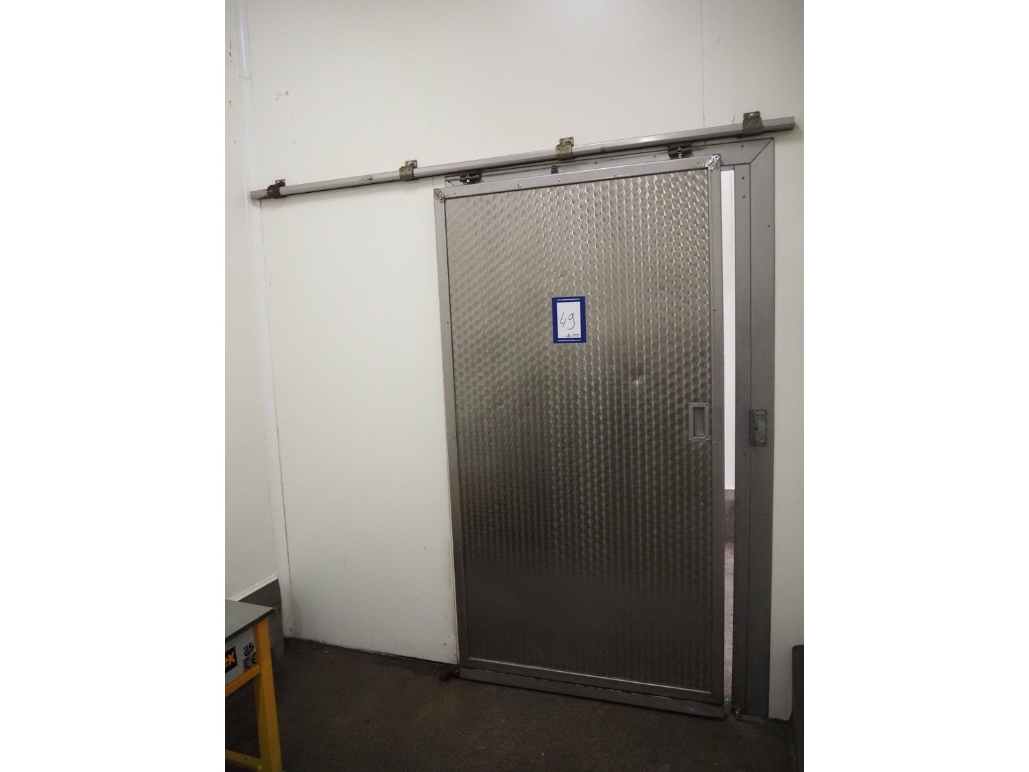 S/s sliding door, dimensions door: 1220 mm x 2300 mm, thickness: 75 mm, rail length: 2000 mm. Kavel locatie: Bosscheweg 8, 5275 HB Den Dungen, Nederland