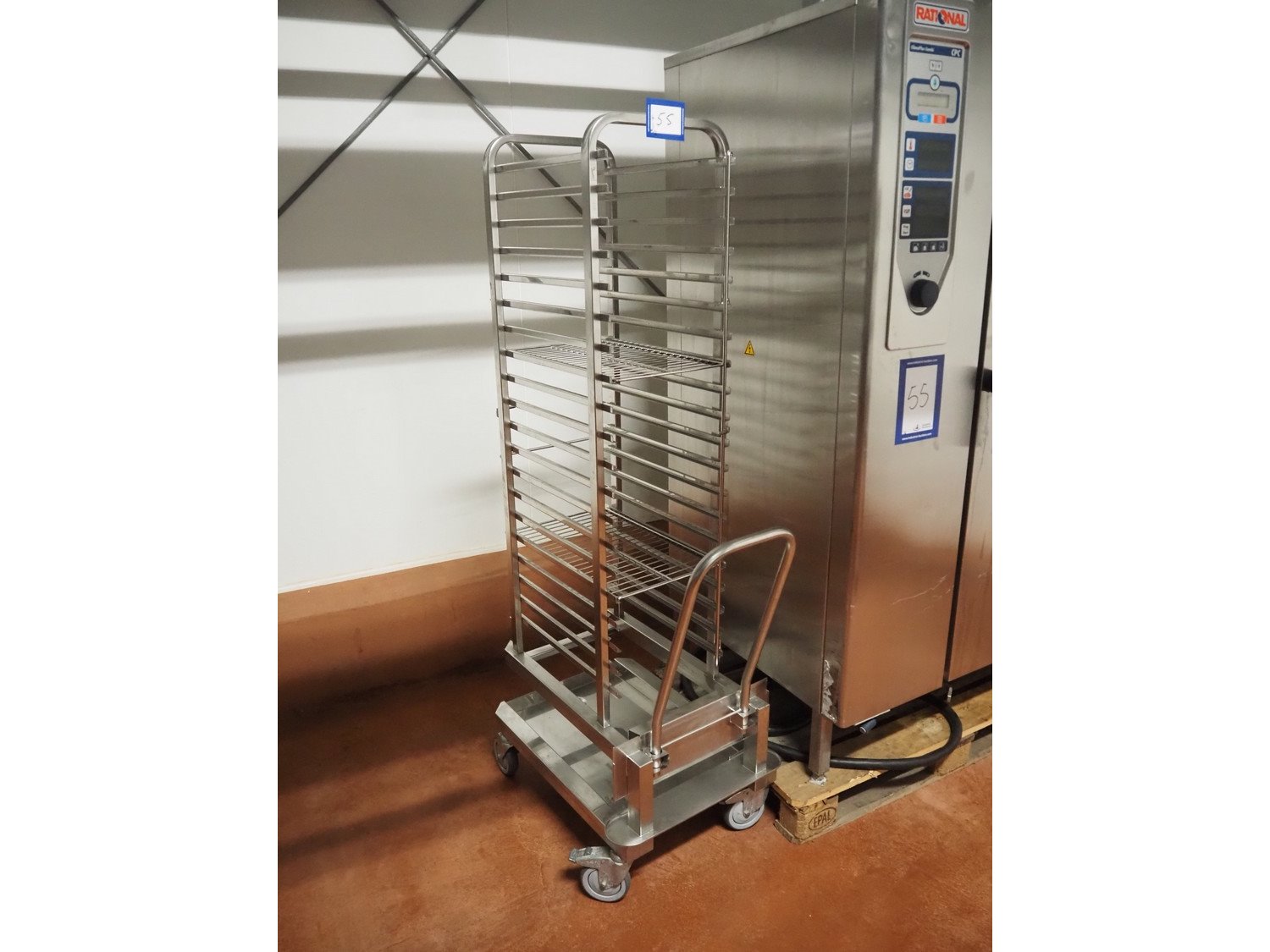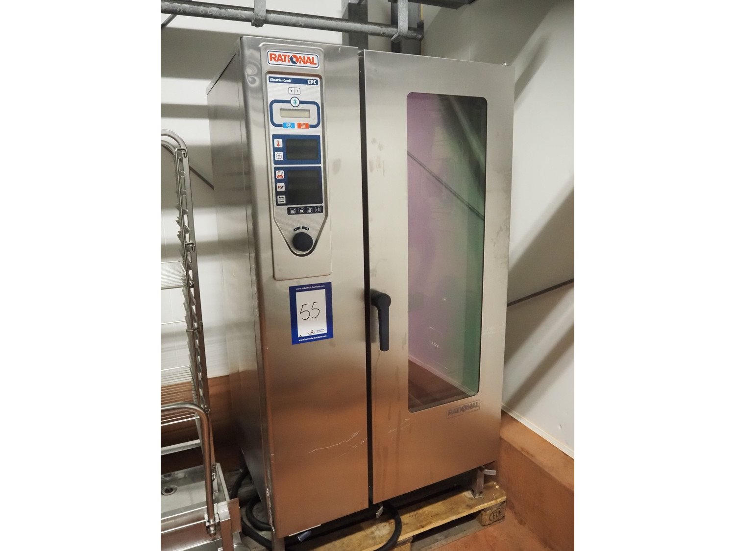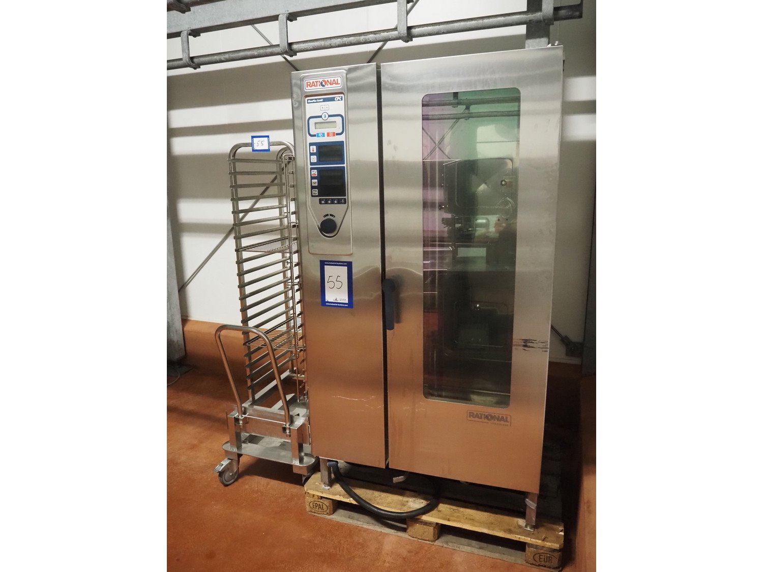 Rational combi steamer, model: ClimaPLus Combi CPC 201, serial number: E21CD02111079329, 400 V, 50 Hz, electric heated, s/s trolley, 20 floors, dimensions each floor: 530 mm x 330 mm, dimensions trolley: 850 mm x 540 mm x 1800, total dimensions: 1000 mm x 900 mm x 1900 mm. Kavel locatie: Bosscheweg 8, 5275 HB Den Dungen, Nederland