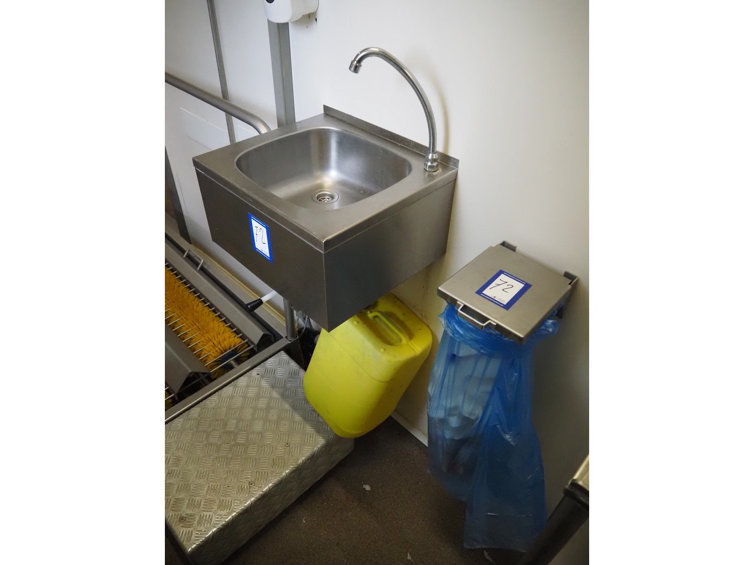 S/s sink, dimensions: 500 mm x 500 mm x 600 mm, s/s waste bag holder, dimensions: 200 mm x 250 mm x 120 mm, paper dispenser, dimensions: 250 mm x 250 mm x 350 mm. Kavel locatie: Bosscheweg 8, 5275 HB Den Dungen, Nederland