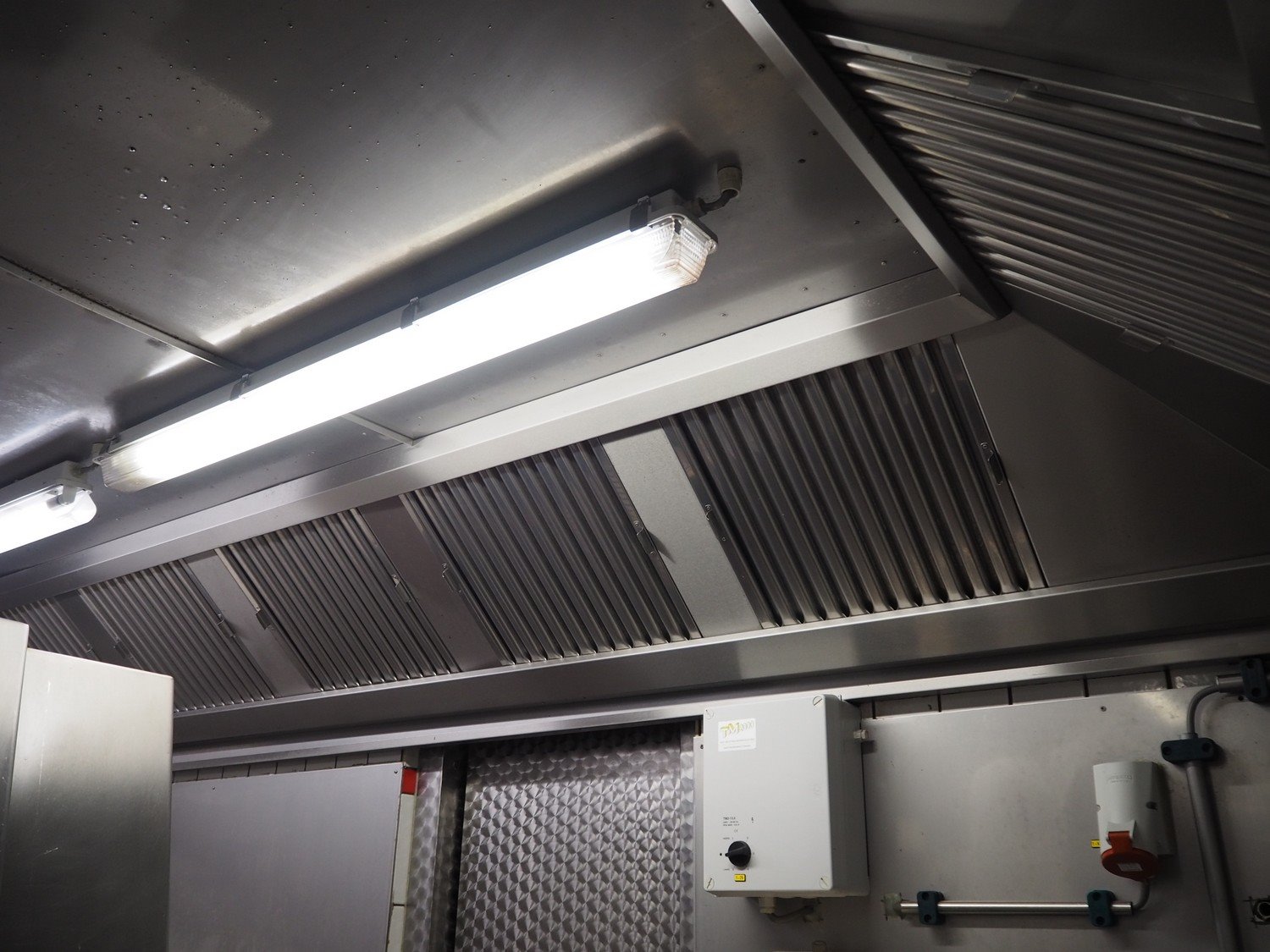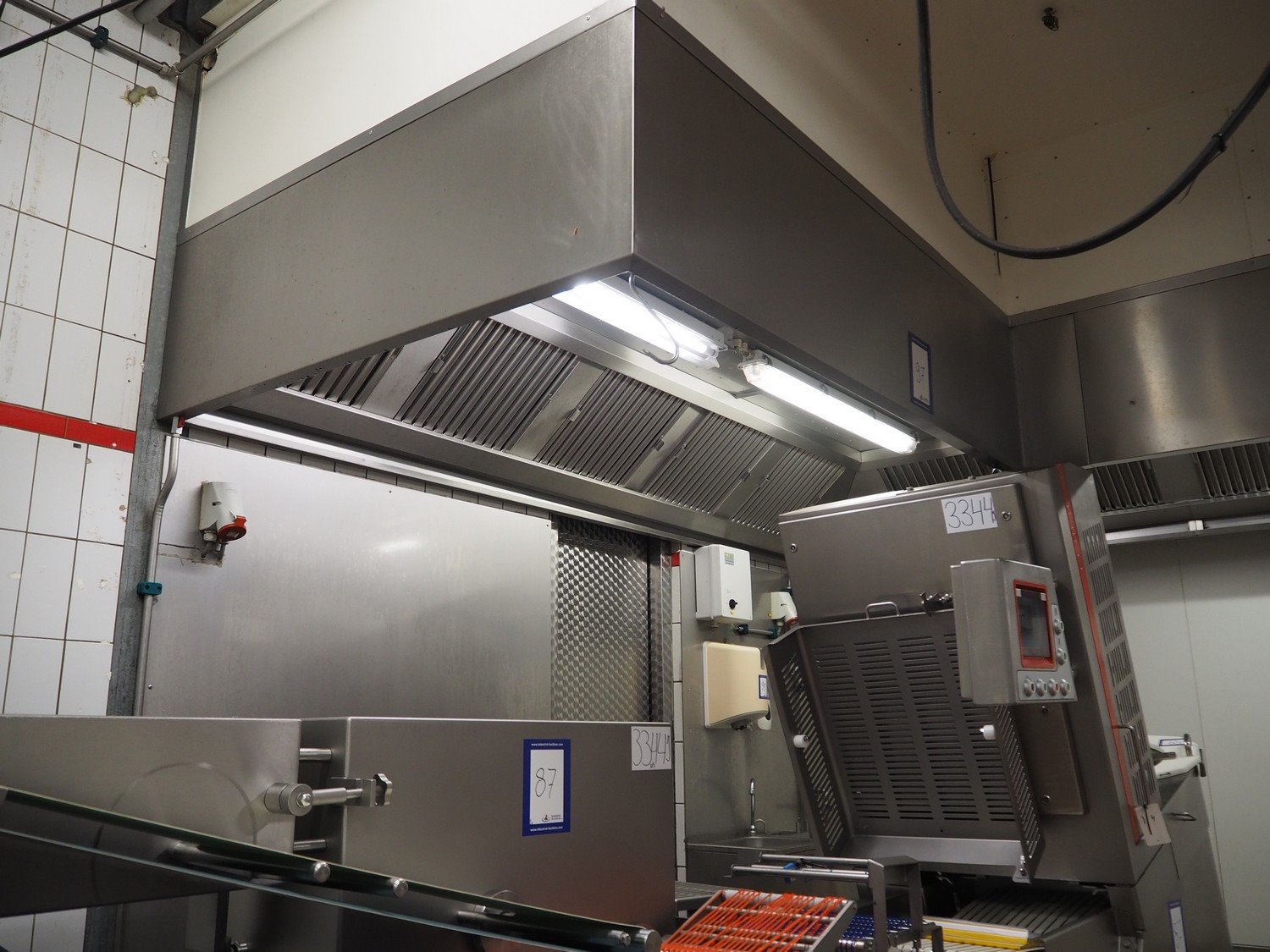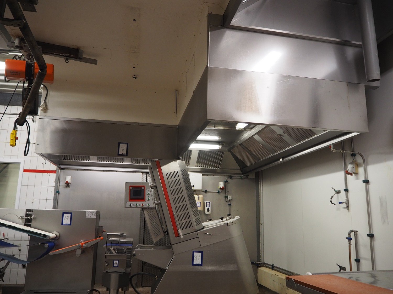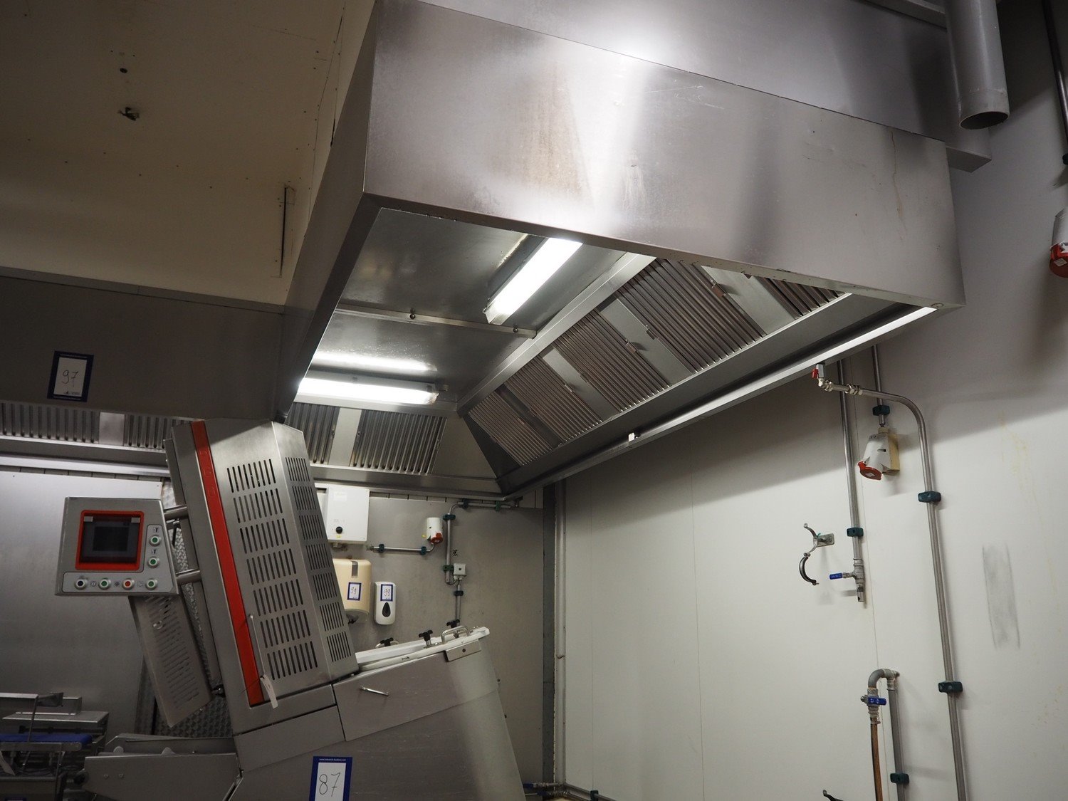 S/s extraction hood, dimensions: 3900 mm x 3700 mm x 550 mm. Kavel locatie: Bosscheweg 8, 5275 HB Den Dungen, Nederland