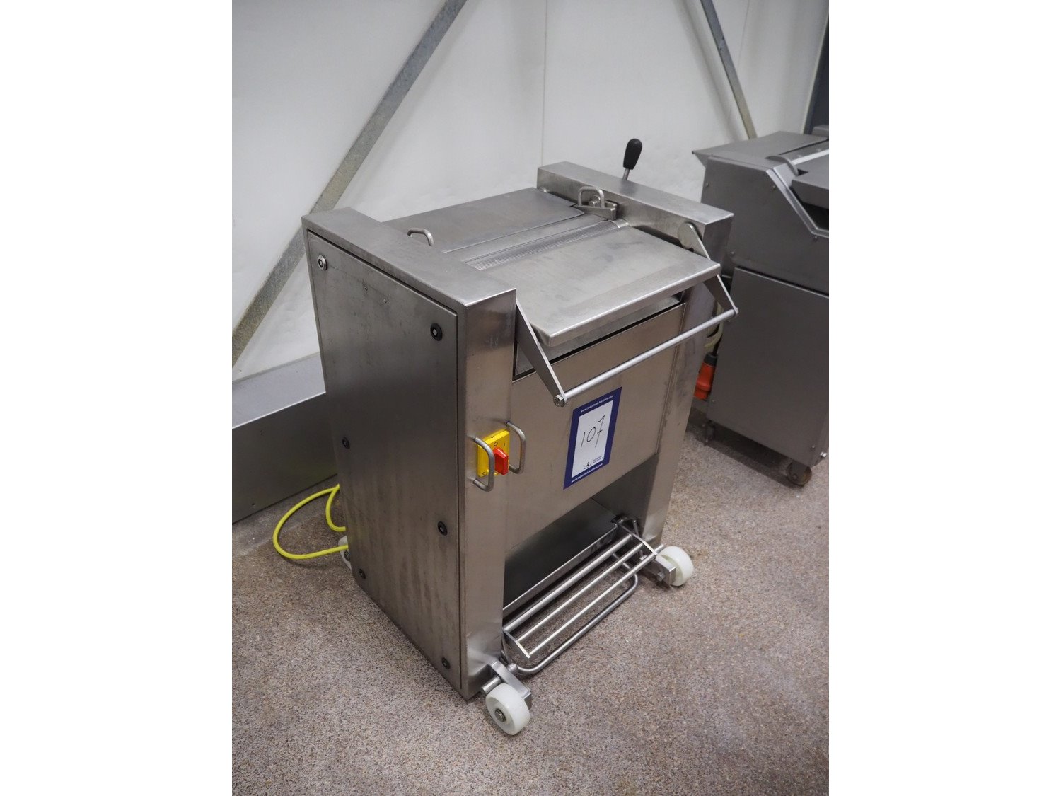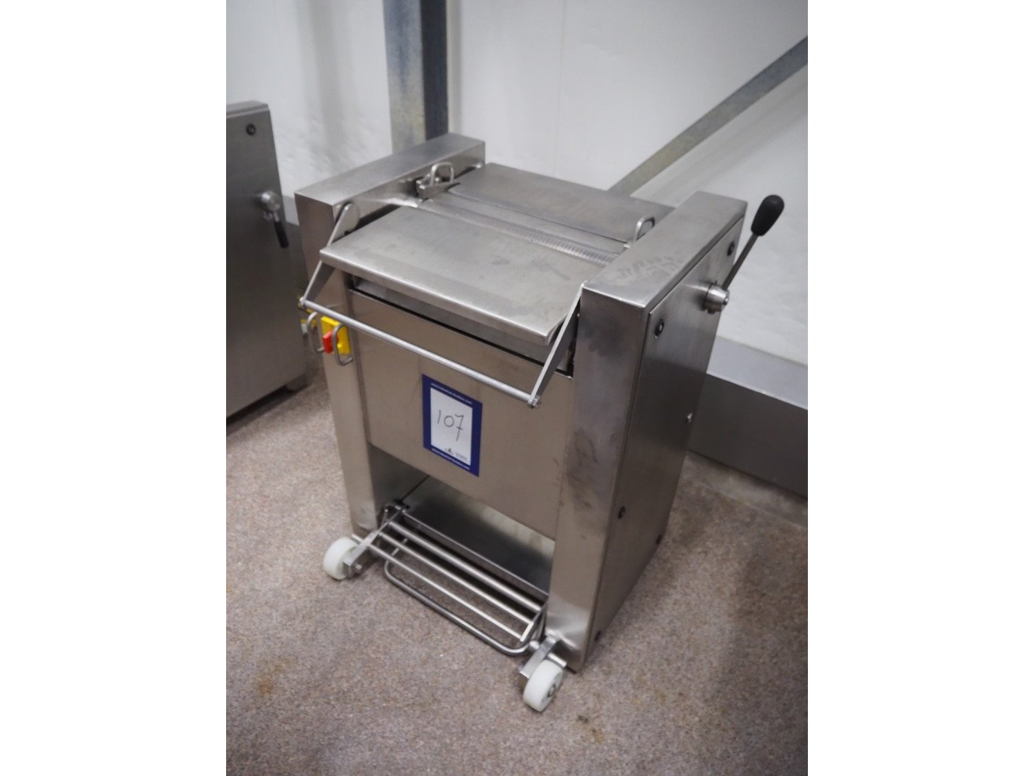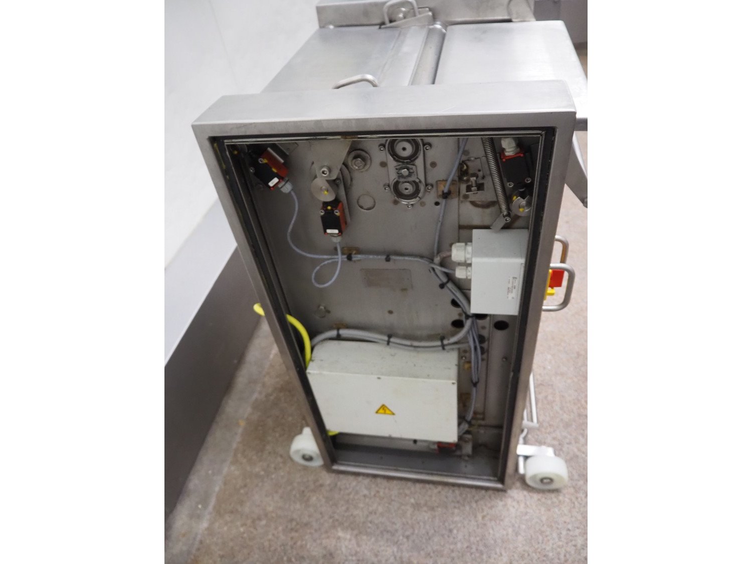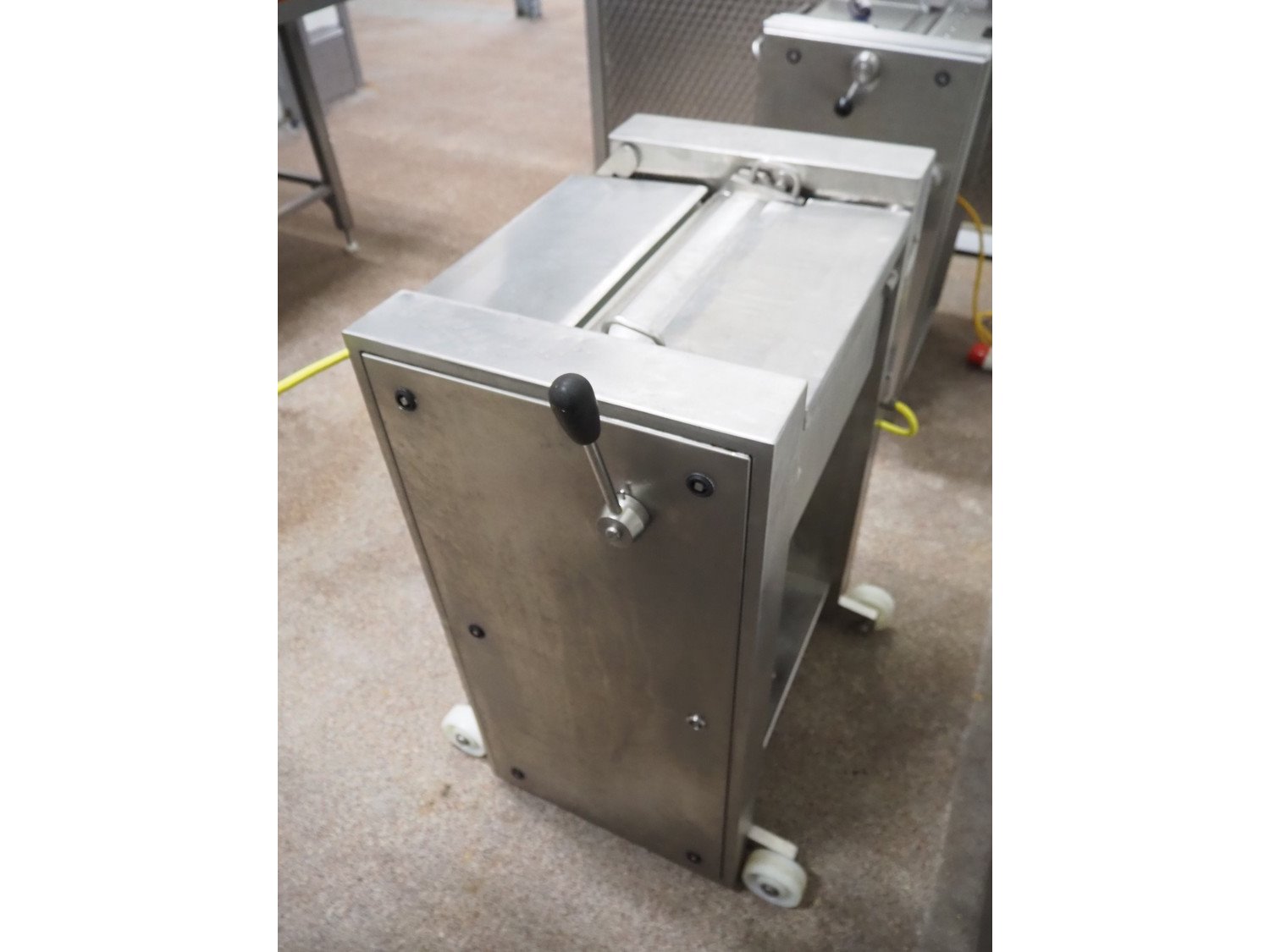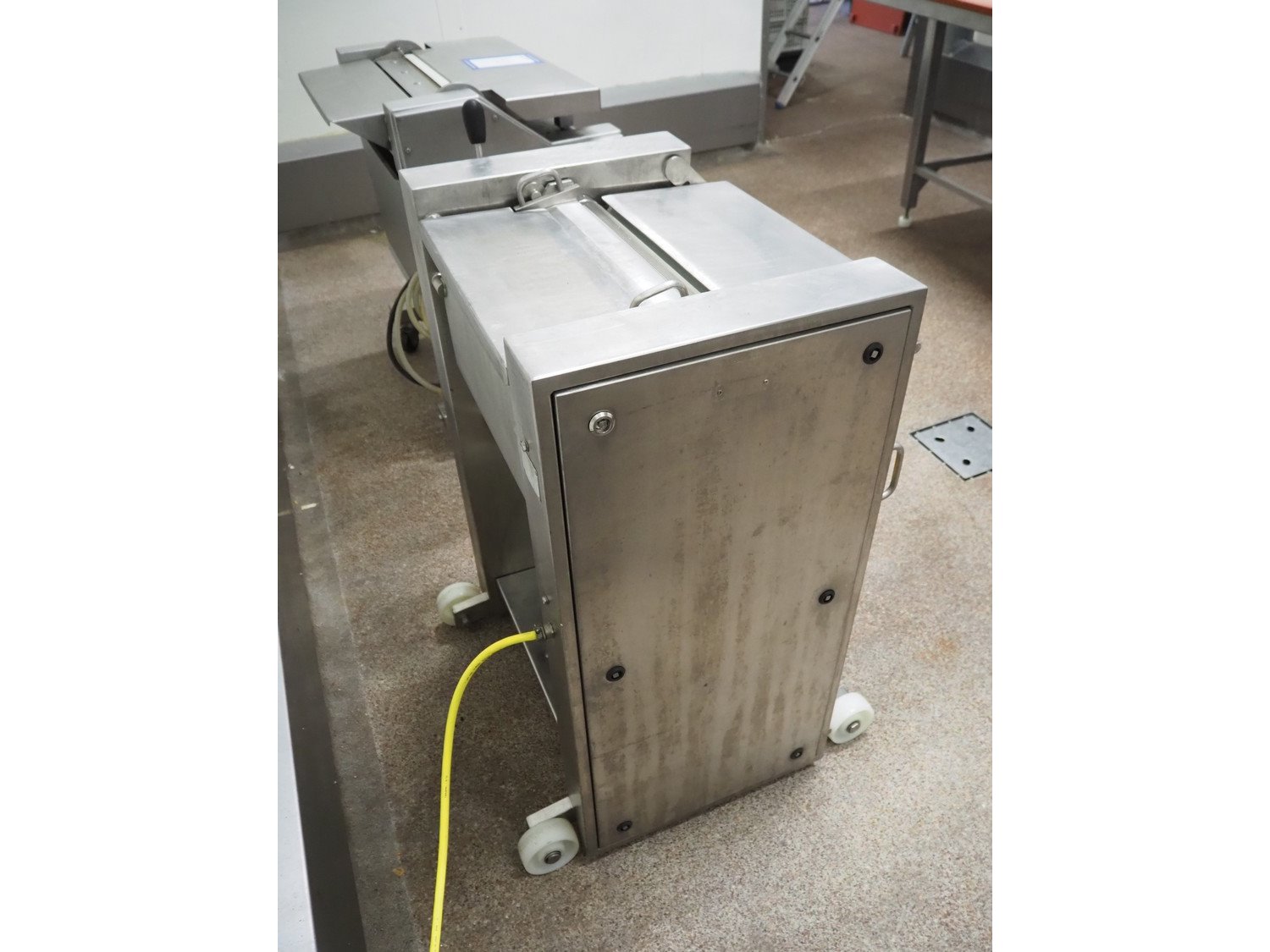 Maja-Maschinenfabrik mobile skinning machine, type: EVM 3000, number: 42677, year of construction: 2000, 400 V, 50 Hz, 2.2 A, 7.5 kW, working width: 420 mm, total dimensions: 700 mm x 550 mm x 1000 mm. Kavel locatie: Bosscheweg 8, 5275 HB Den Dungen, Nederland