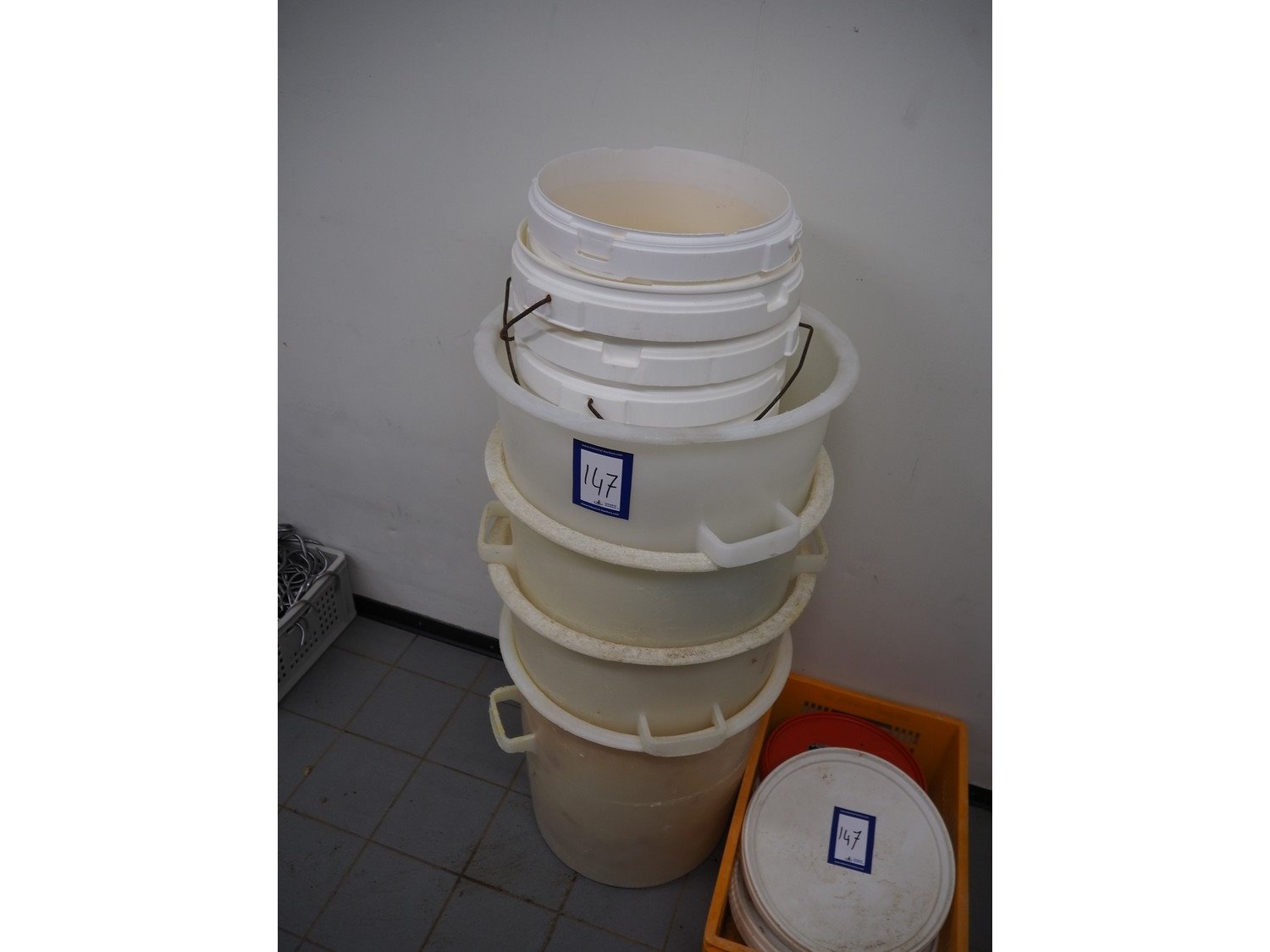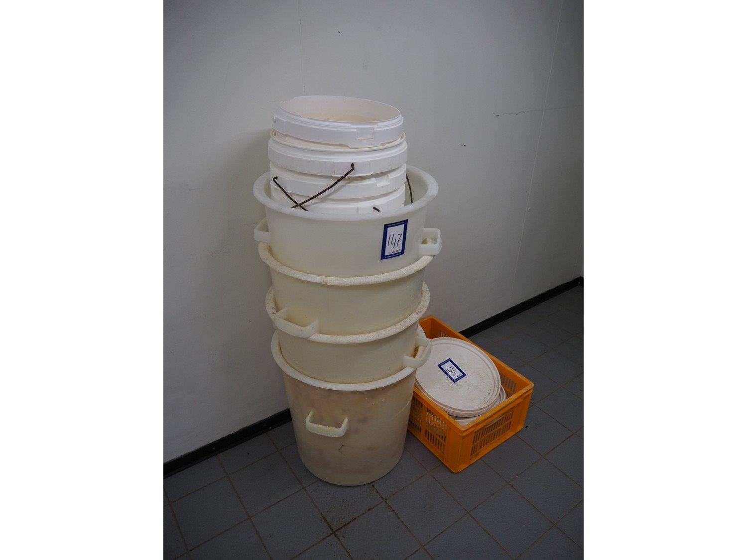 Various plastic buckets with lids. Kavel locatie: Bosscheweg 8, 5275 HB Den Dungen, Nederland