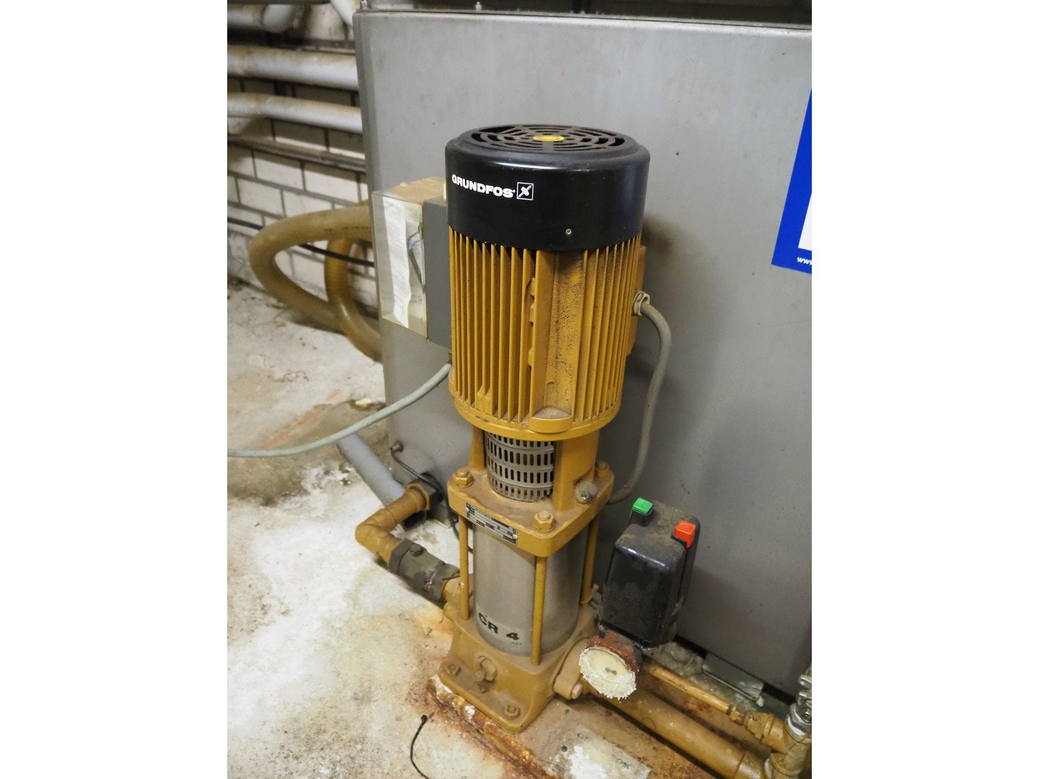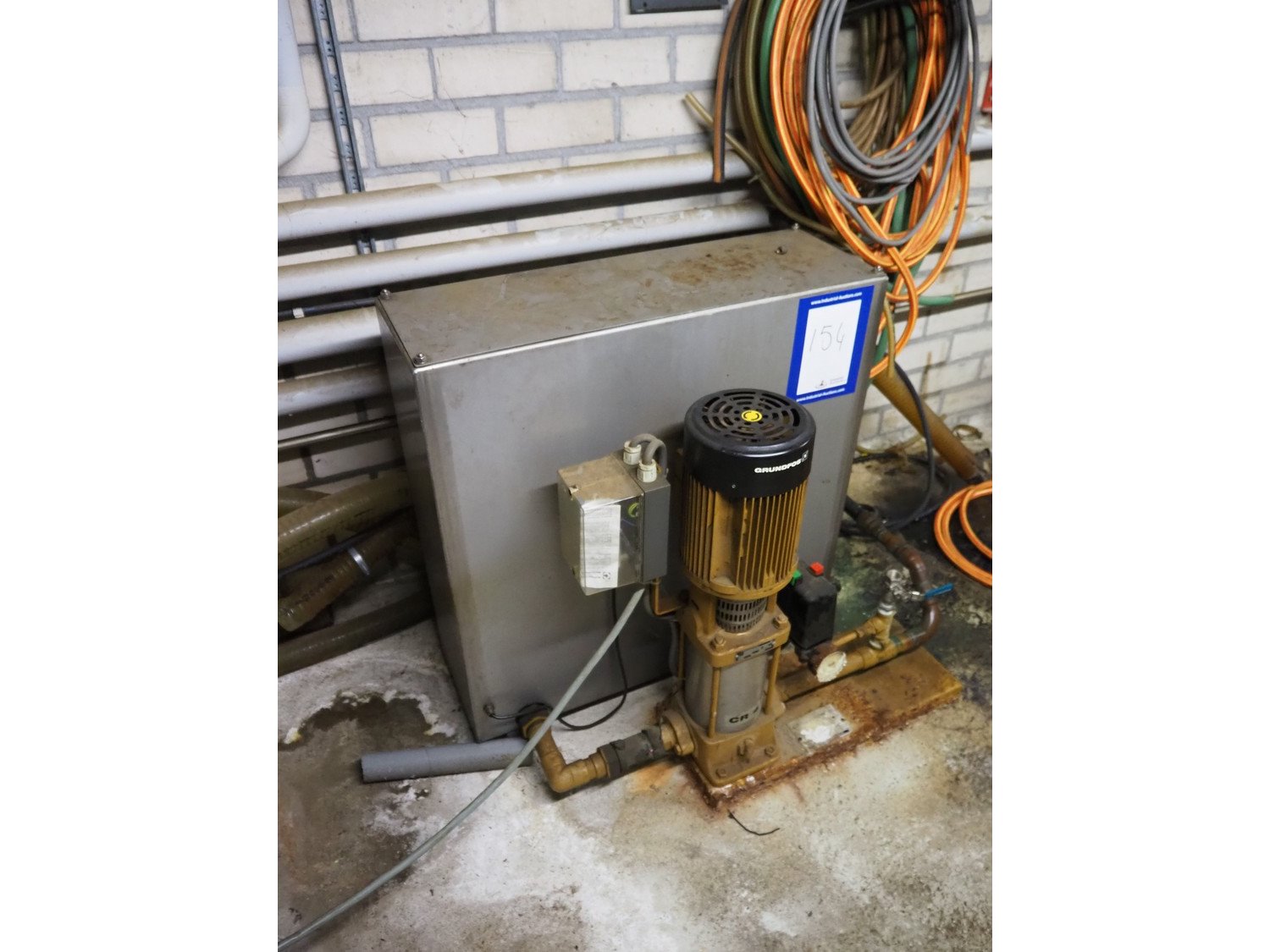 Grundfos high pressure unit with vertical, multistage centrifugal pump, type: CR4-80/7 A-A-BUBE, model: C500007P1, capacity: 6 m³ per hour, dimensions: 750 mm x 500 mm x 900 mm. Kavel locatie: Bosscheweg 8, 5275 HB Den Dungen, Nederland
