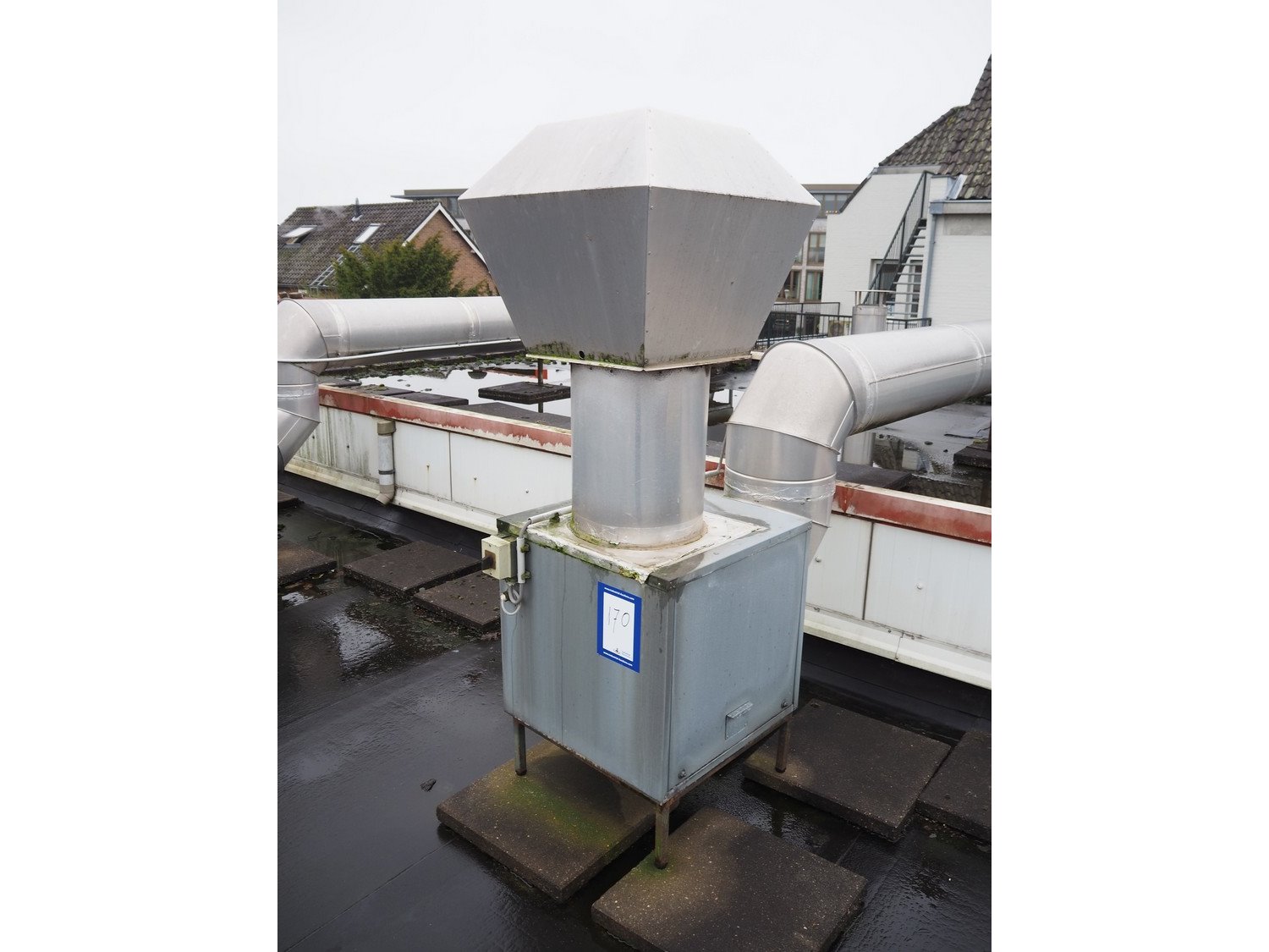 Roof fan, dimensions: 650 mm x 650 mm x 1800 mm. Kavel locatie: Bosscheweg 8, 5275 HB Den Dungen, Nederland