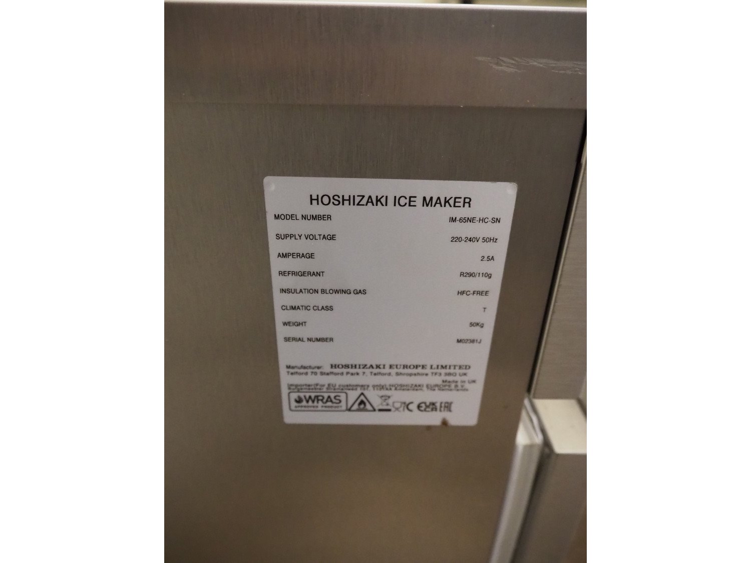 Hoshizaki ice cube machine, model number: IM-65NE-HC-SN, serial number: M0238IJ, 220-240 V, 50 Hz, 2.5 A, refrigerant: R290/110 gram, weight: 50 kg, dimensions: 630 mm x 500 mm x 970 mm. Kavel locatie: Bosscheweg 8, 5275 HB Den Dungen, Nederland