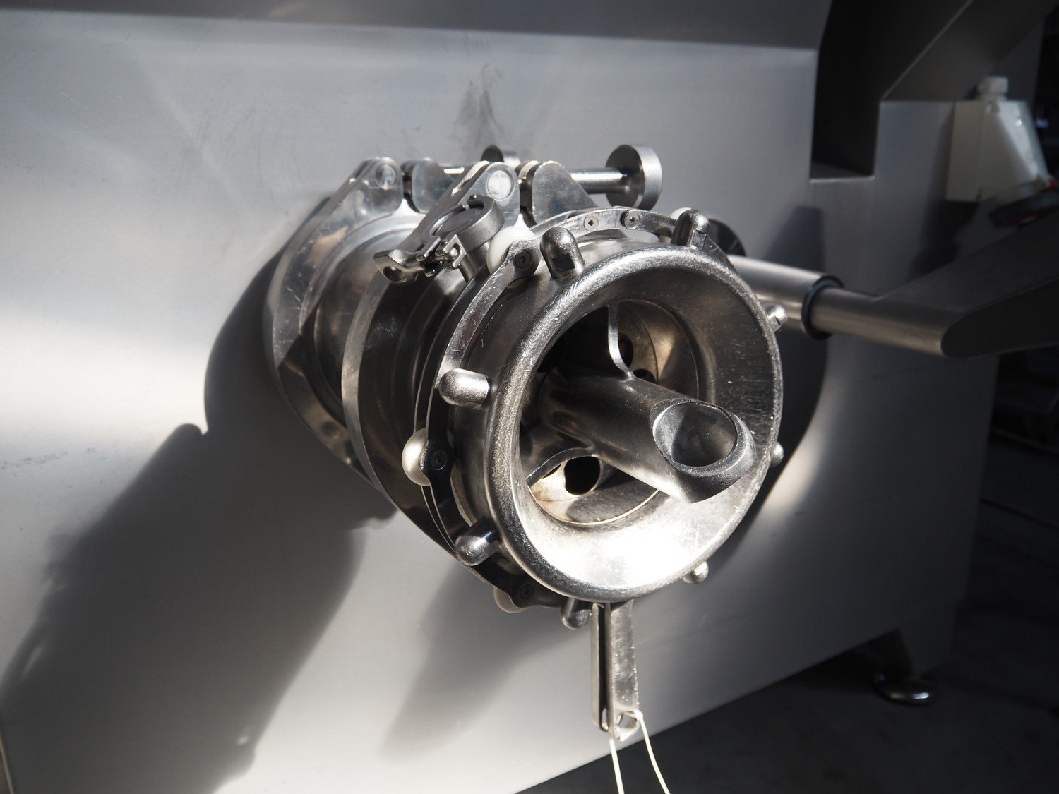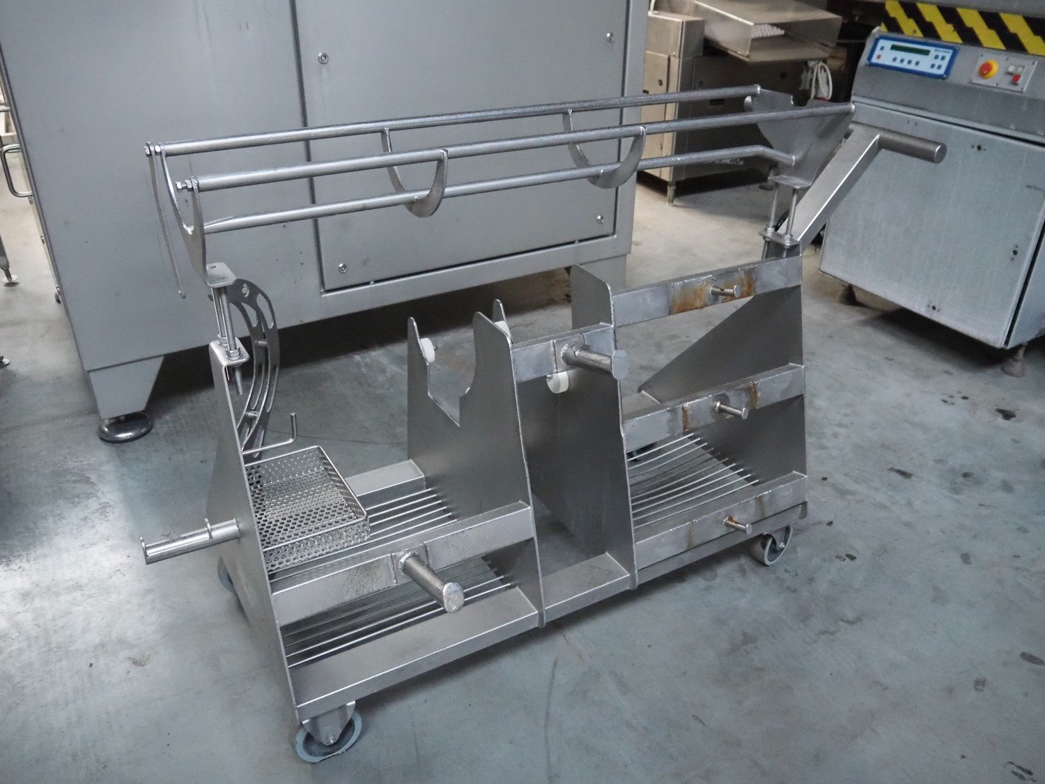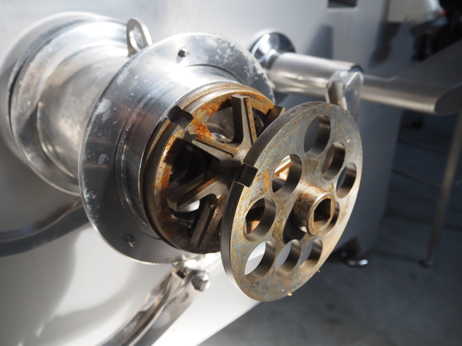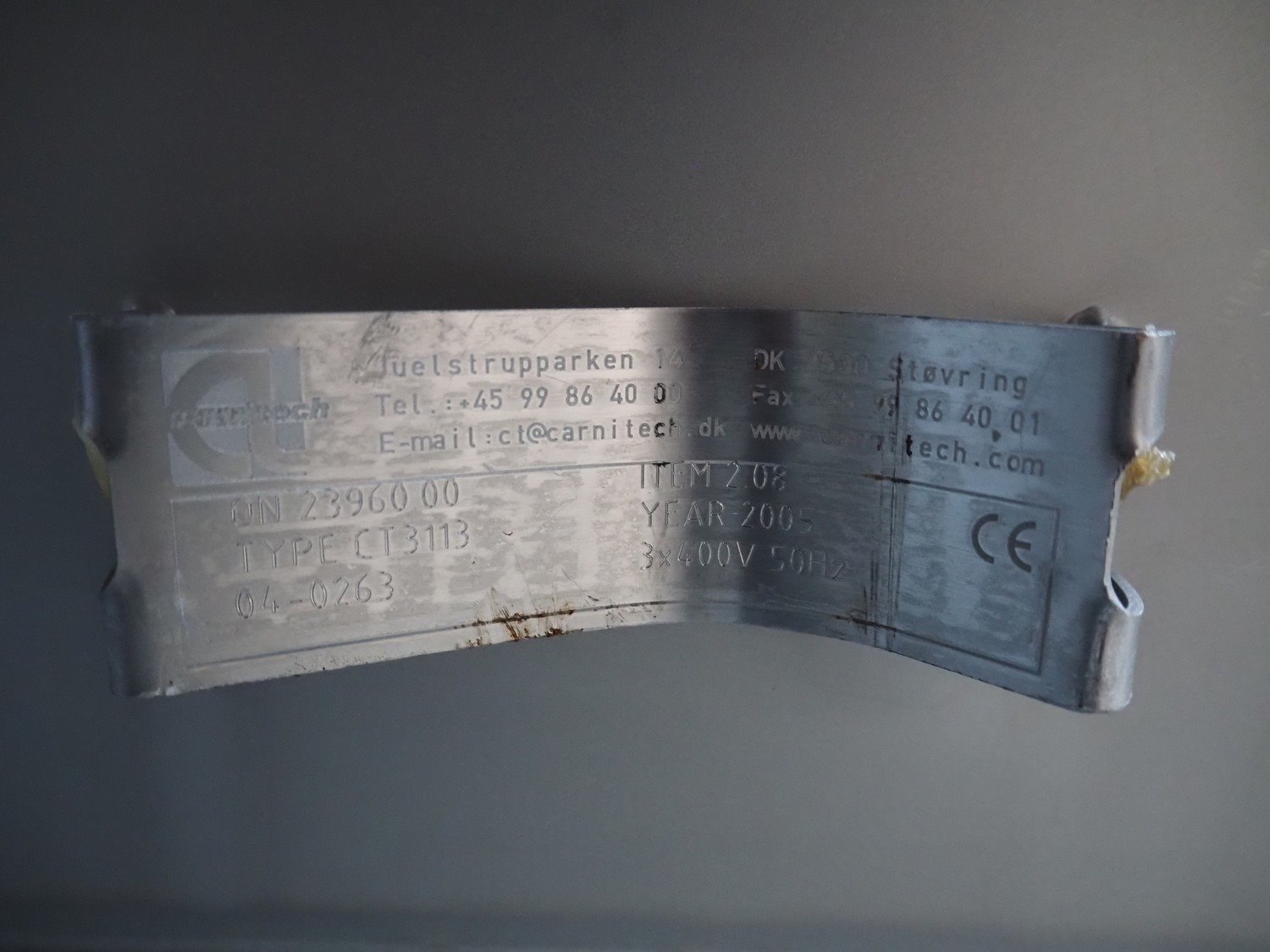 Carnitech grinder, model: CT3113, type: ON 23960 00, serial number: 04-2063, year of construction: 2005, 400 V, 3 Ph, 50 Hz, plate diameter: 225 mm, total dimensions: 2200 mm x 2150 mm x 2450 mm. Including s/s tool trolley. Kavel locatie: Lipsko 241, 22-400 Zamość, Polen