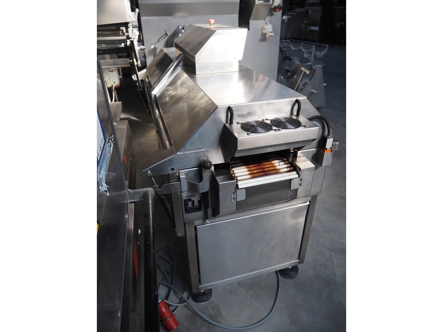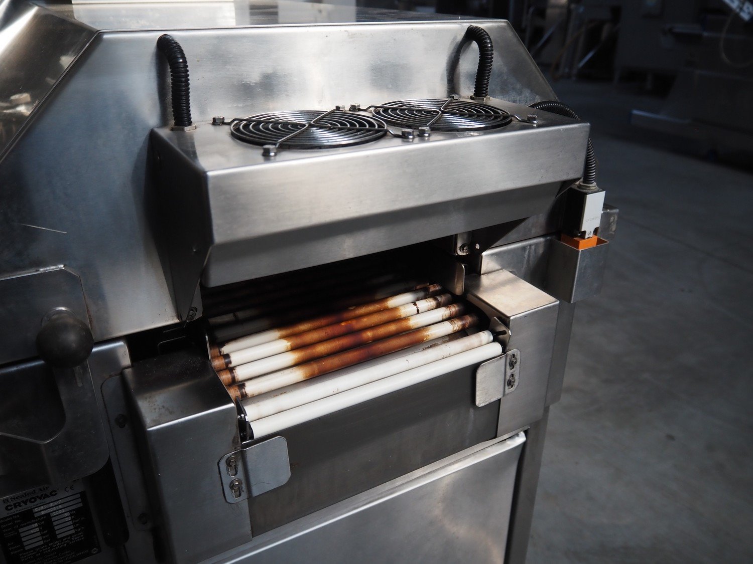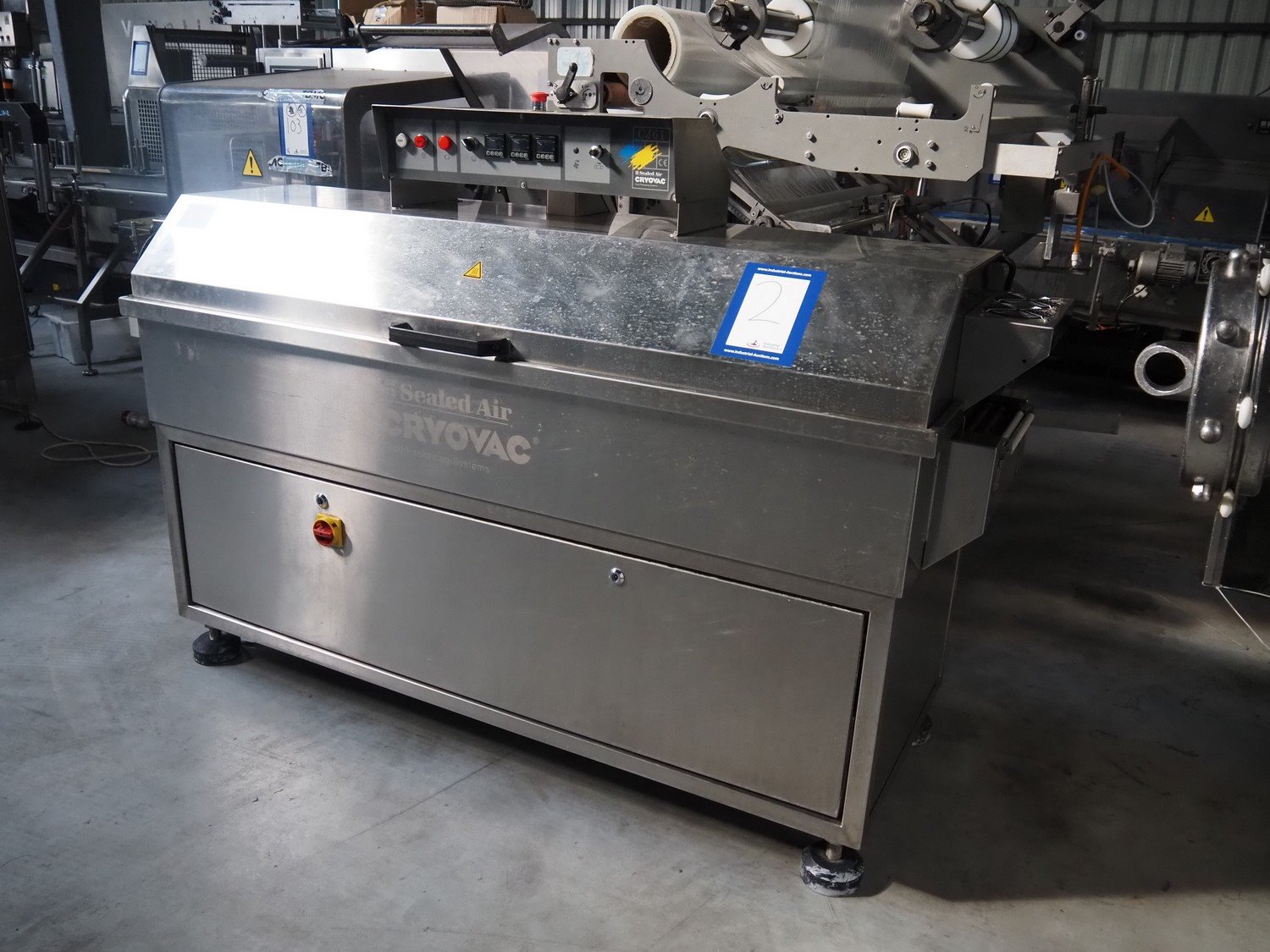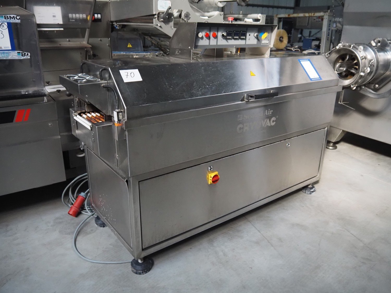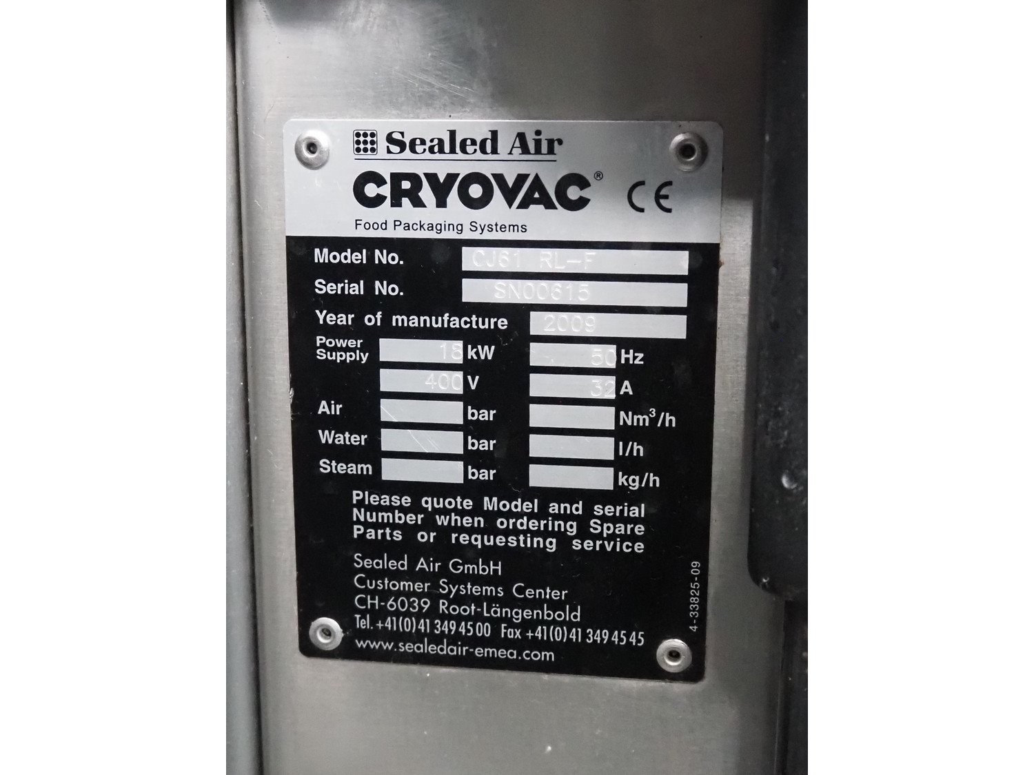 Cryovac shrink tunnel, model: CJ61 RL-F, serial number: SN00615, year of construction: 2009, 400 V, 50 Hz, 32 A, 18 kW, clearance: 280 mm x 150 mm, total dimensions: 2100 mm x 930 mm x 1450 mm. Kavel locatie: Lipsko 241, 22-400 Zamość, Polen