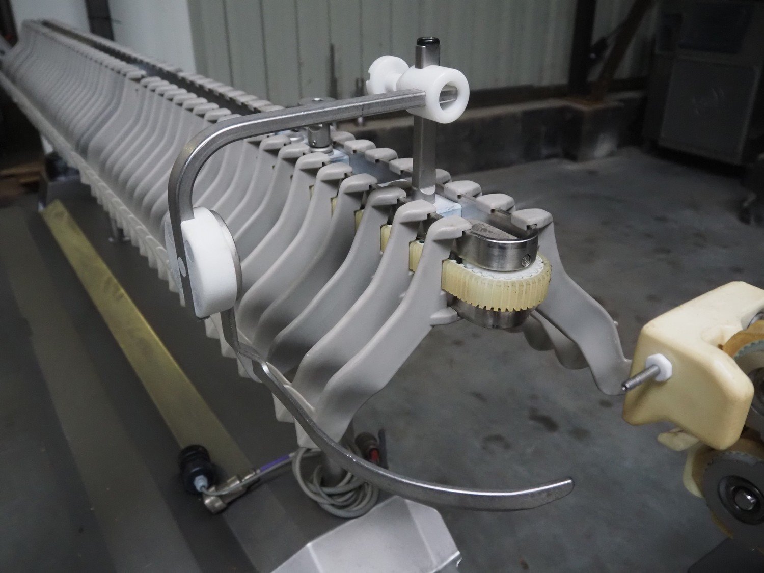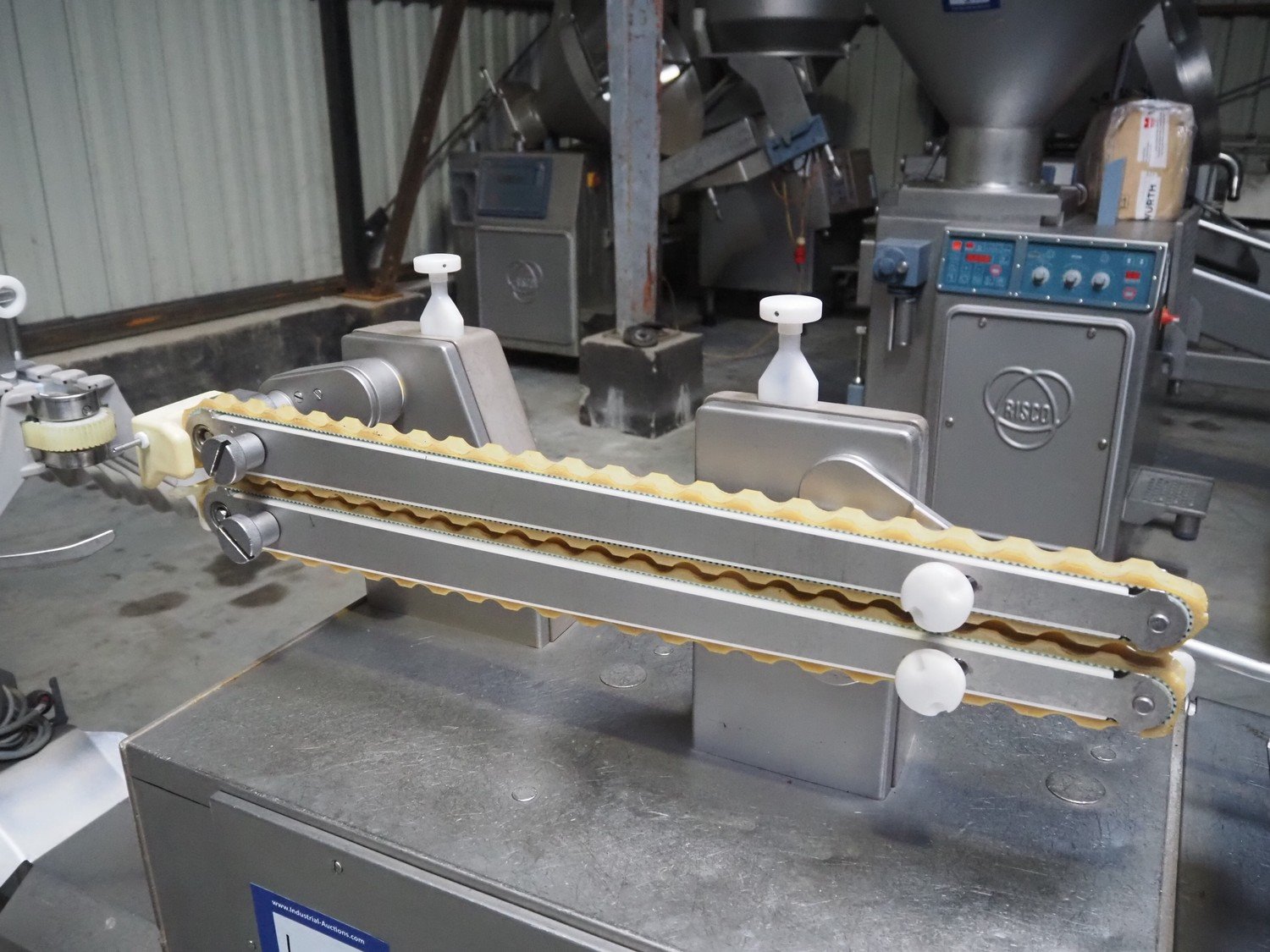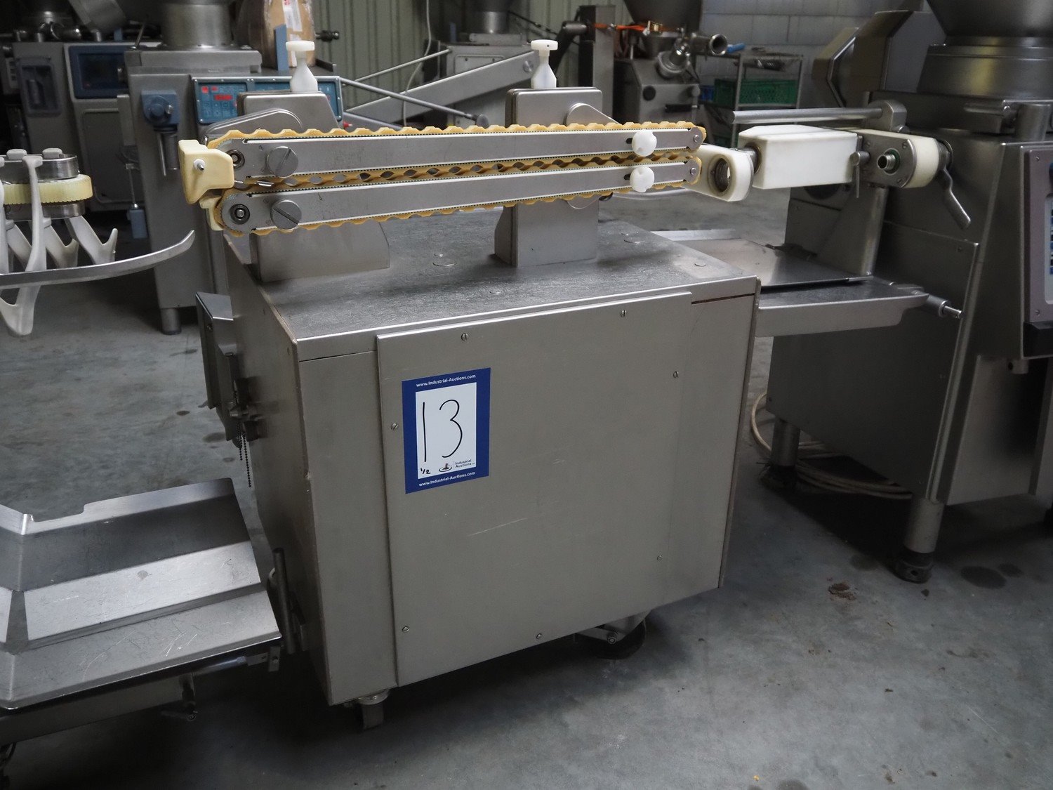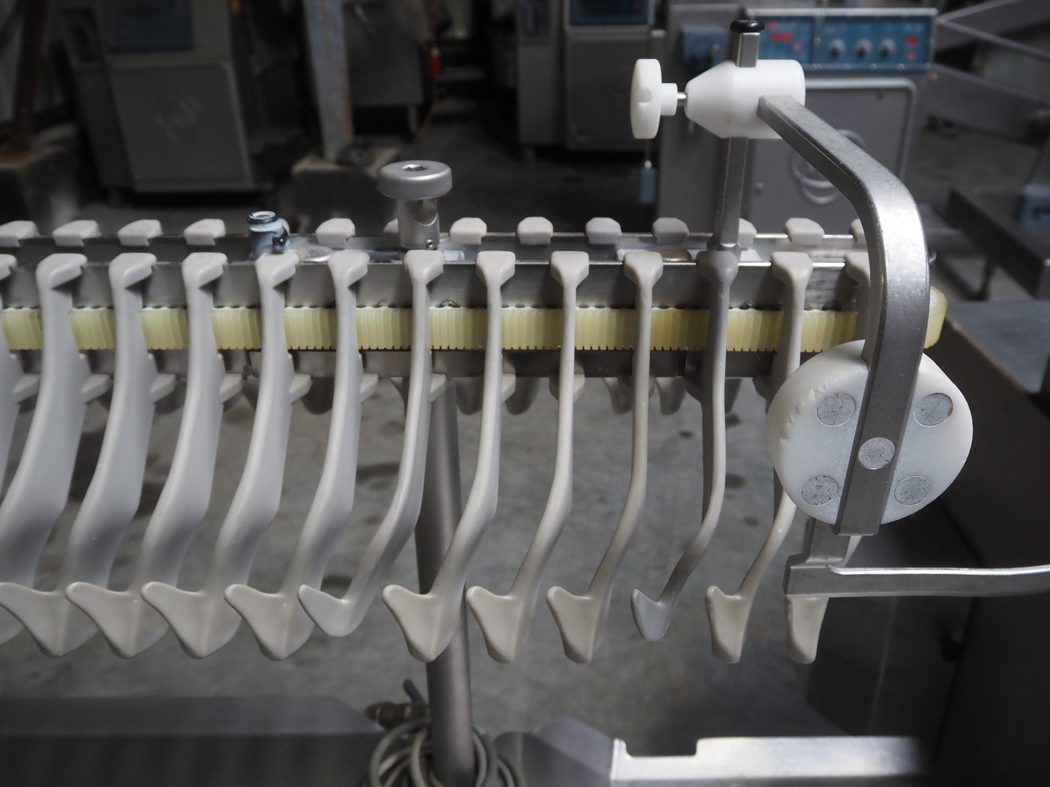 Handtmann linking machine, year of construction: 2000, 400 V, 50 Hz, 3.5 A, 2.5 kW, belt width: 25 mm, total dimensions: 830 mm x 700 mm x 1270 mm. Including Handtmann hanging line, type: 220-16, serial number: 1310, year of construction: 2003, dimensions: 2550 mm x 650 mm x 1290 mm. Kavel locatie: Lipsko 241, 22-400 Zamość, Polen